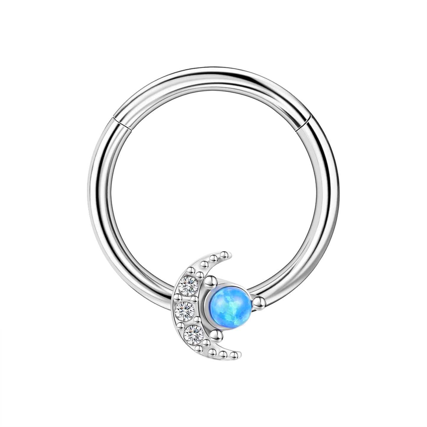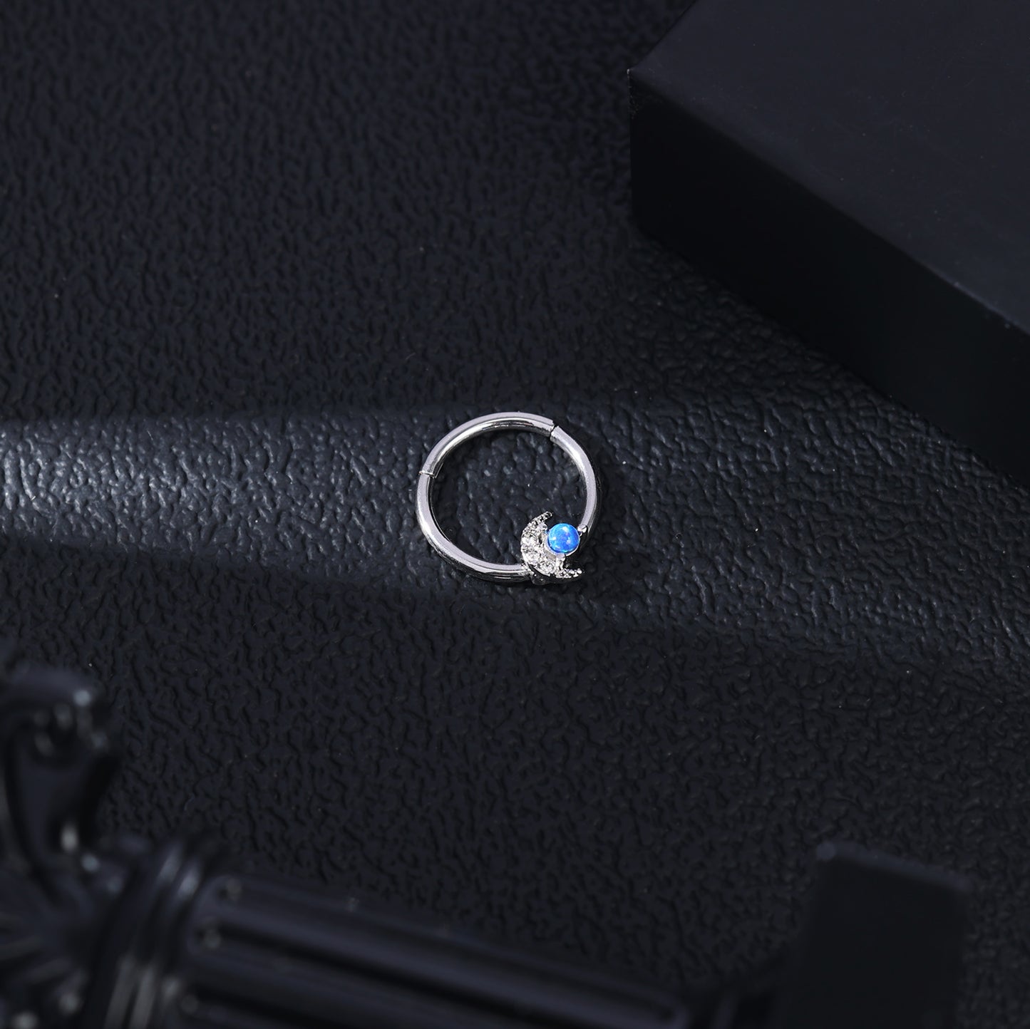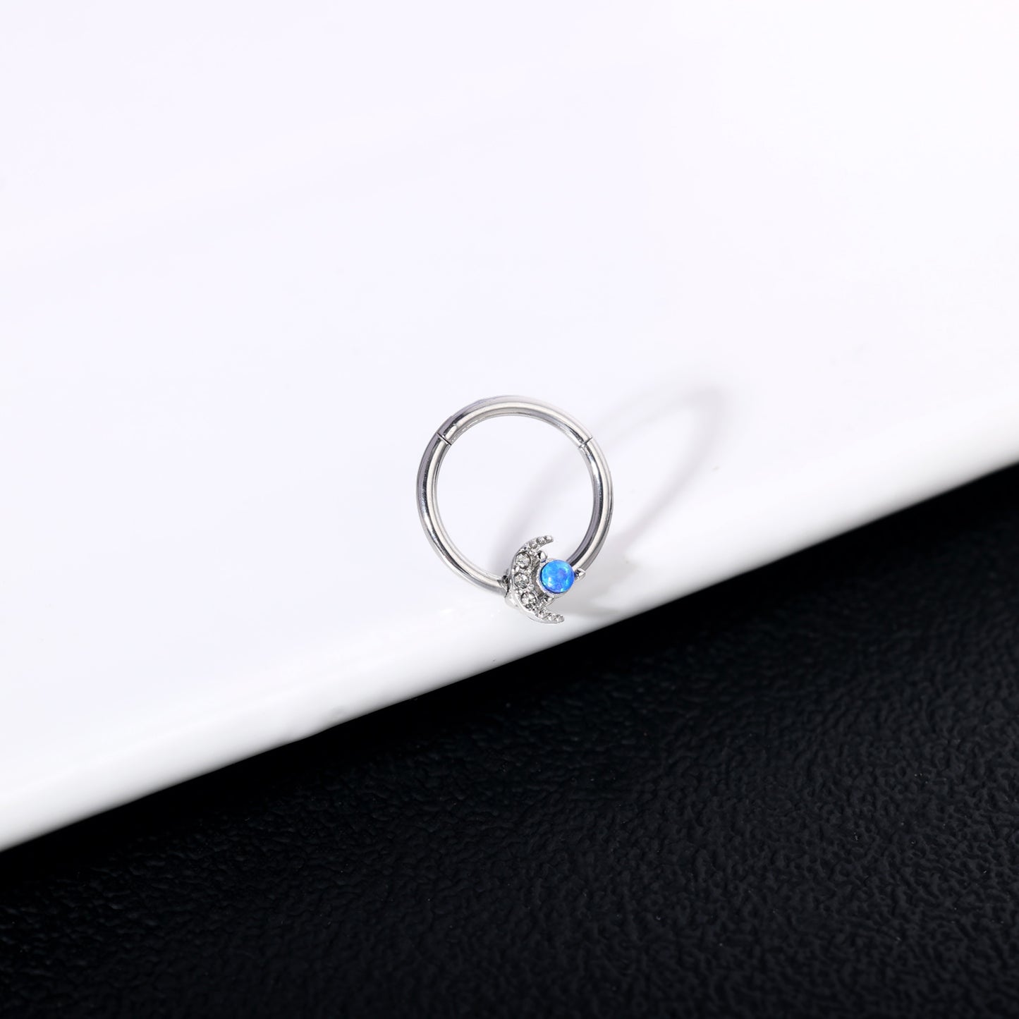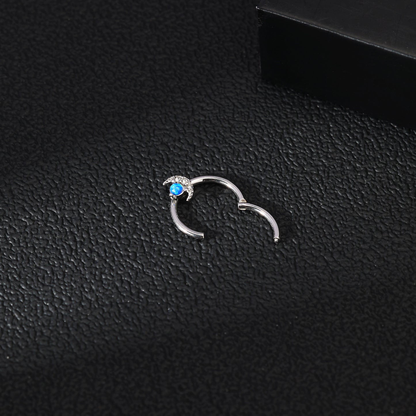 16g Moon Nose Ring Blue Opal Septum Ring Piercing Jewelry