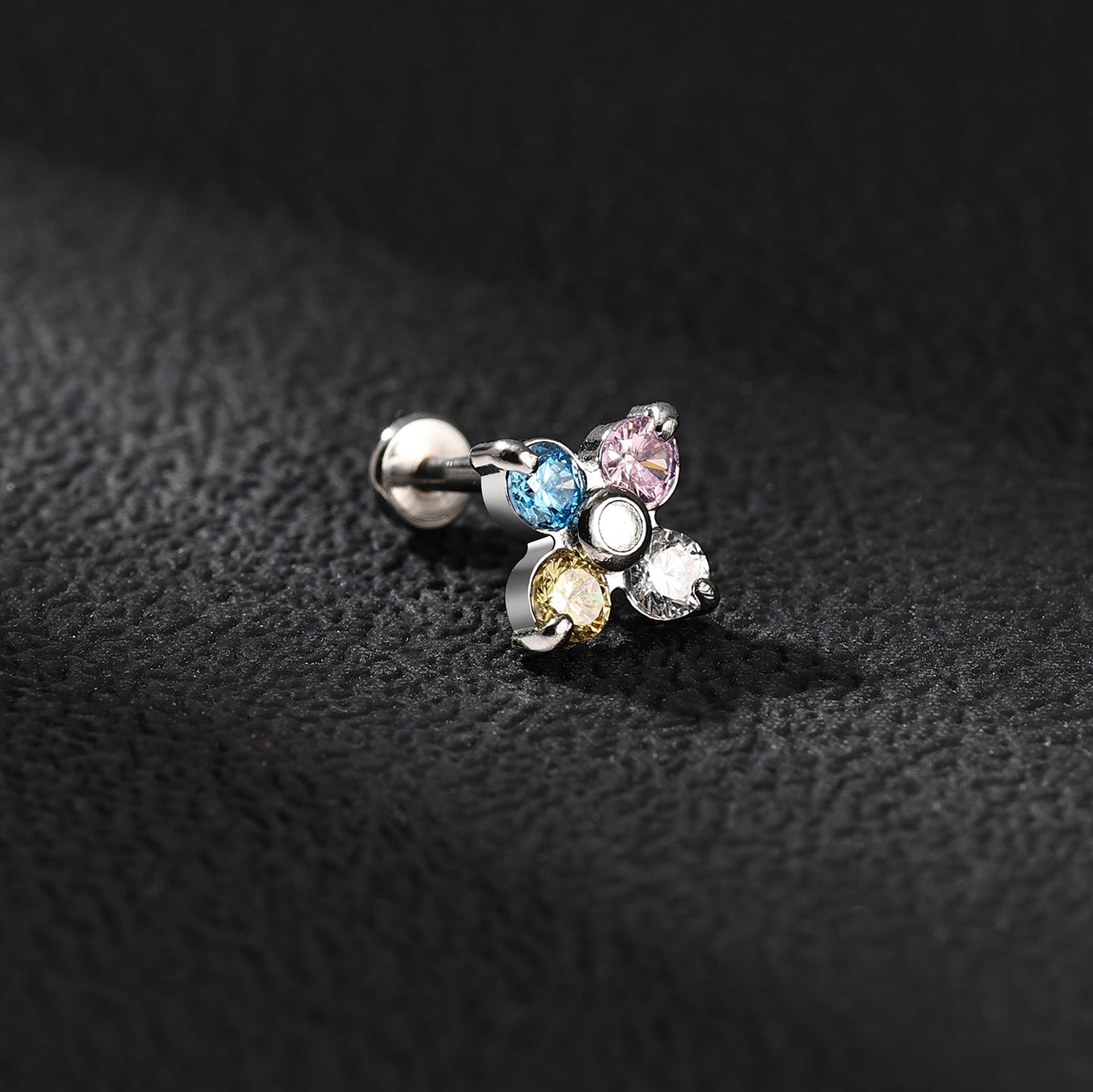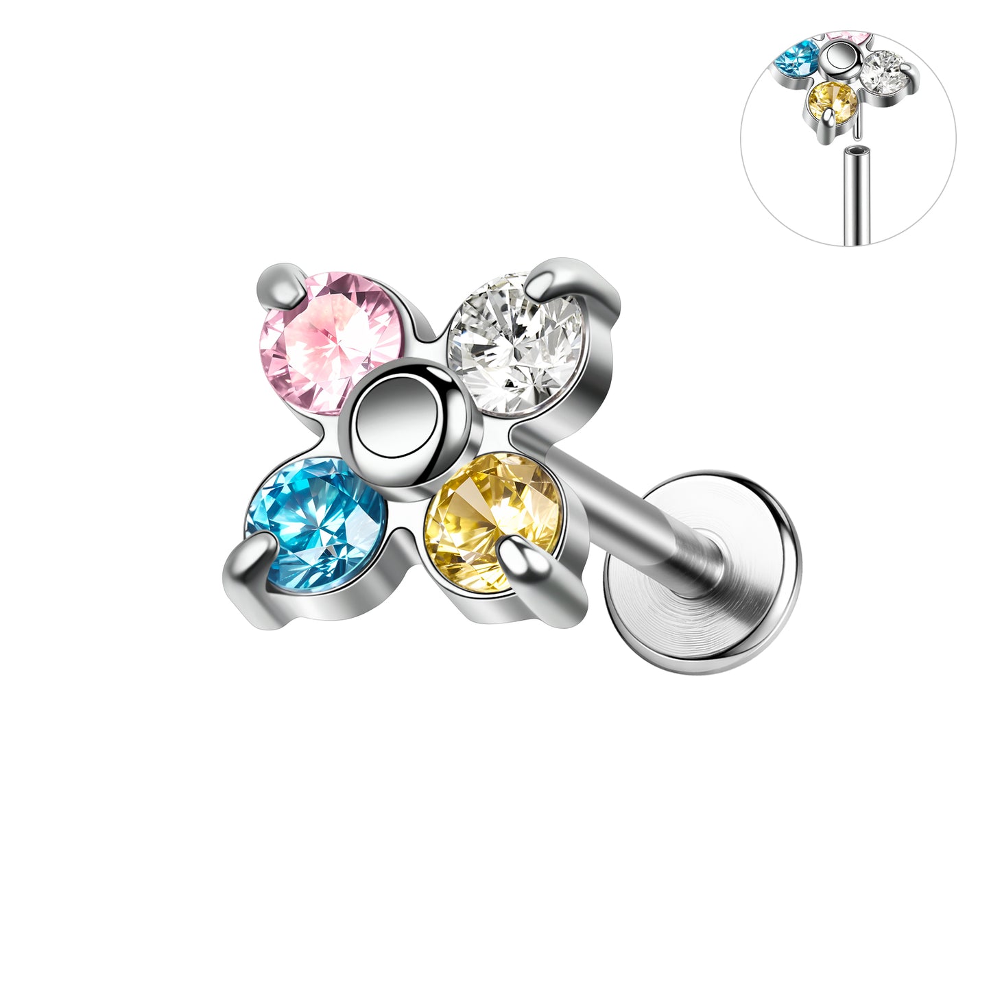 16g Multicolor Zircon Labret Ring Push in Stud Earring Threadless Conch Helix Lip Piercing