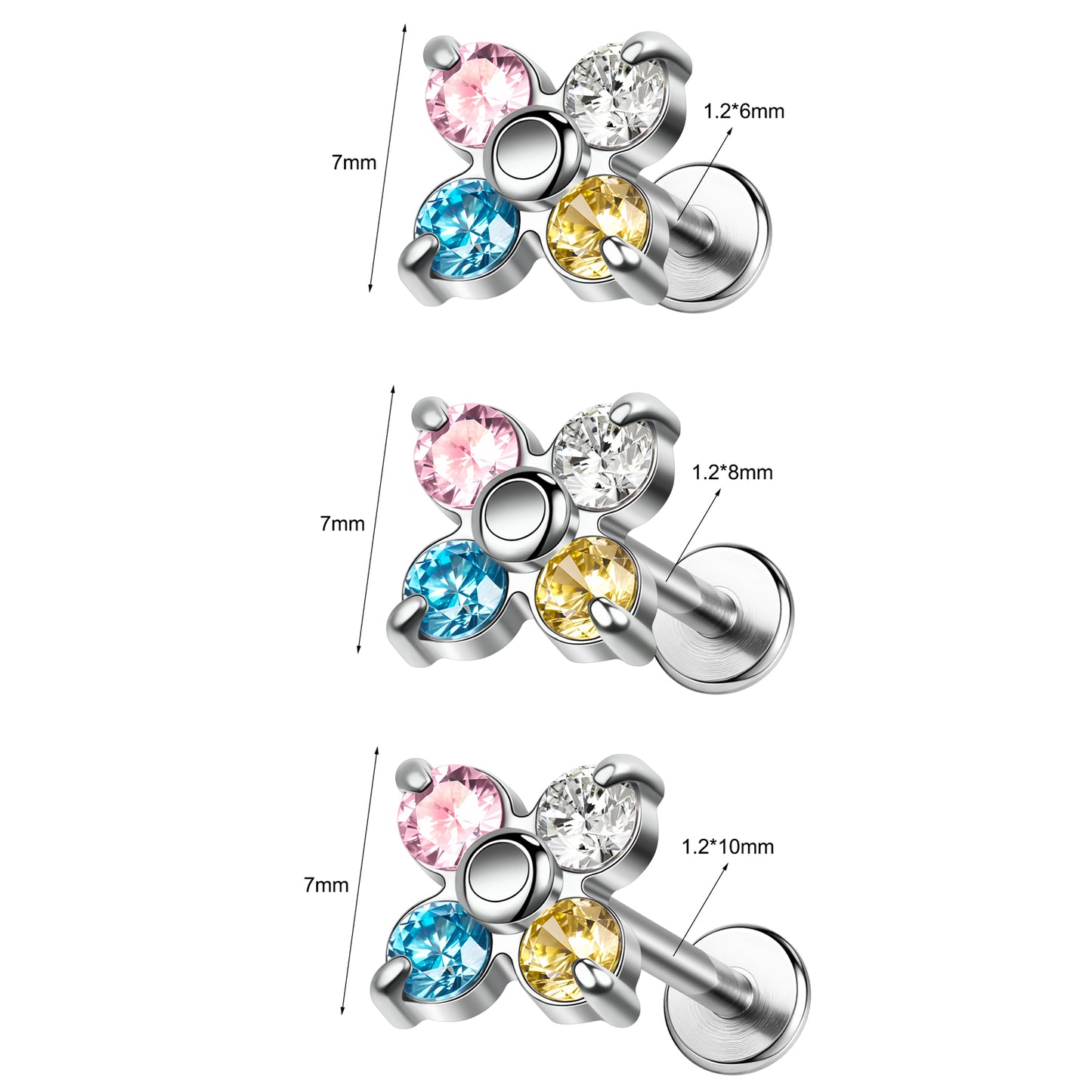 - Material: Labret Lip Studs made of 316L Stainless Steel and Cubic Zirconia.