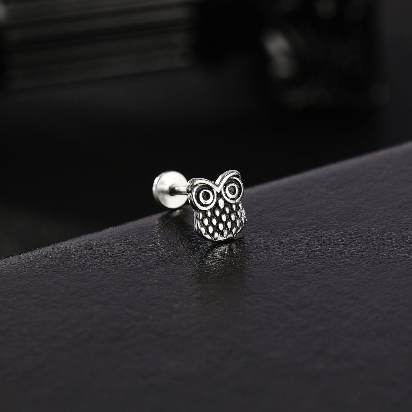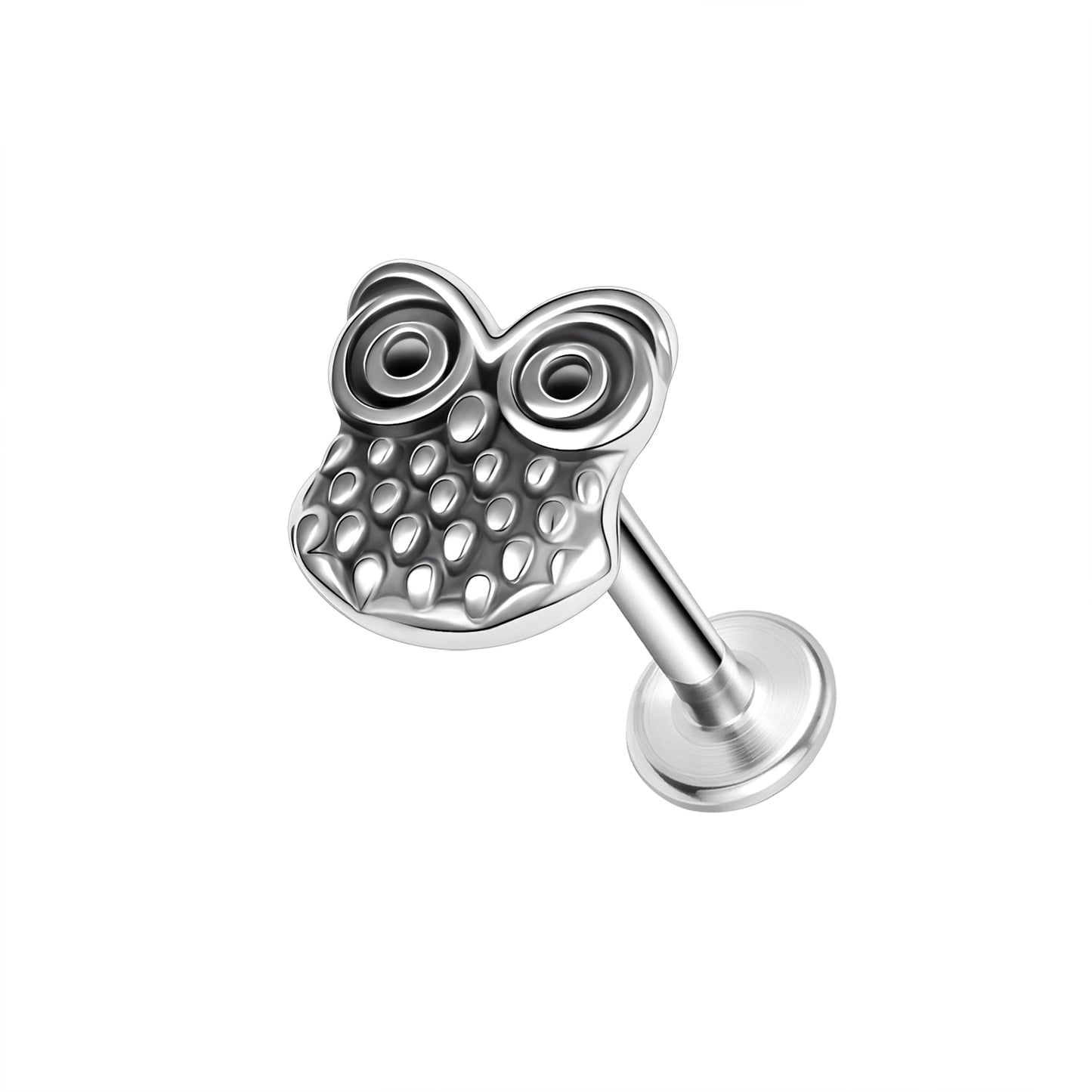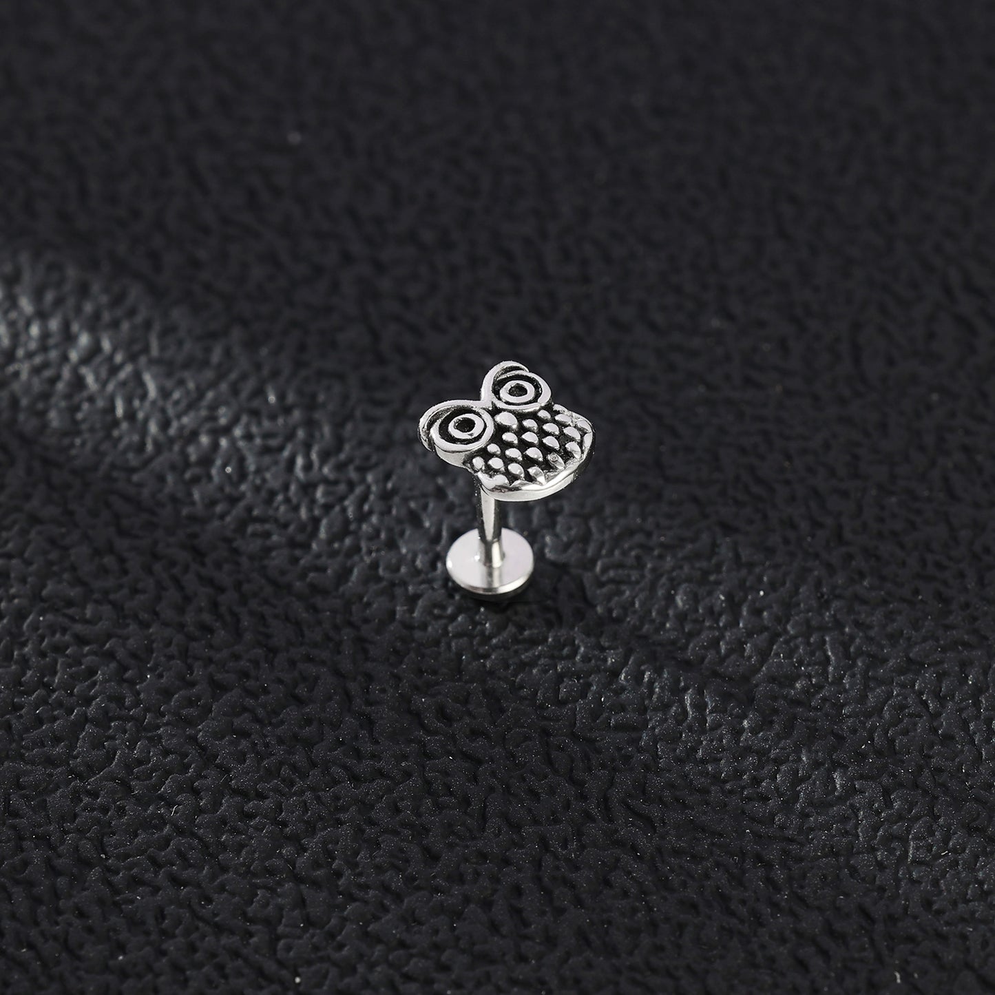 16g Owl Labret Ring Flat Back Stud Earring Conch Helix Lip Piercing