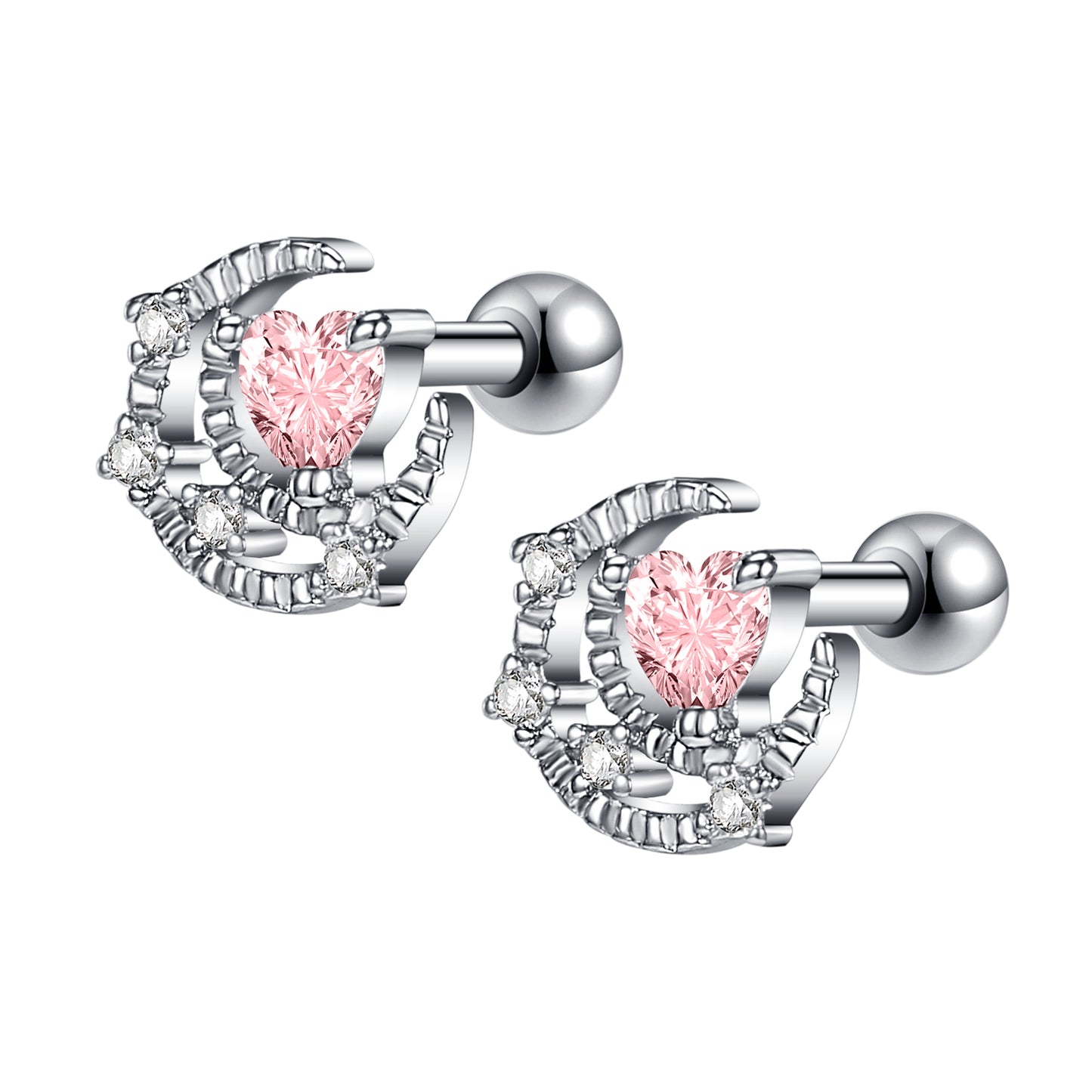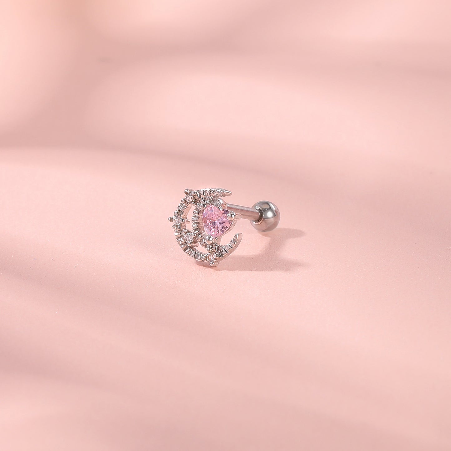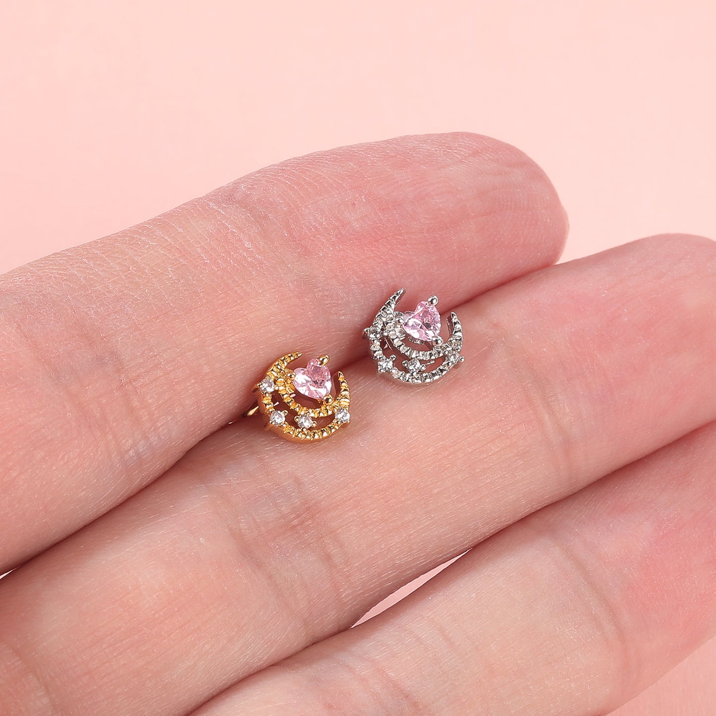 16G Pink Heart Stud Earring Moon Ear Stud Jewelry