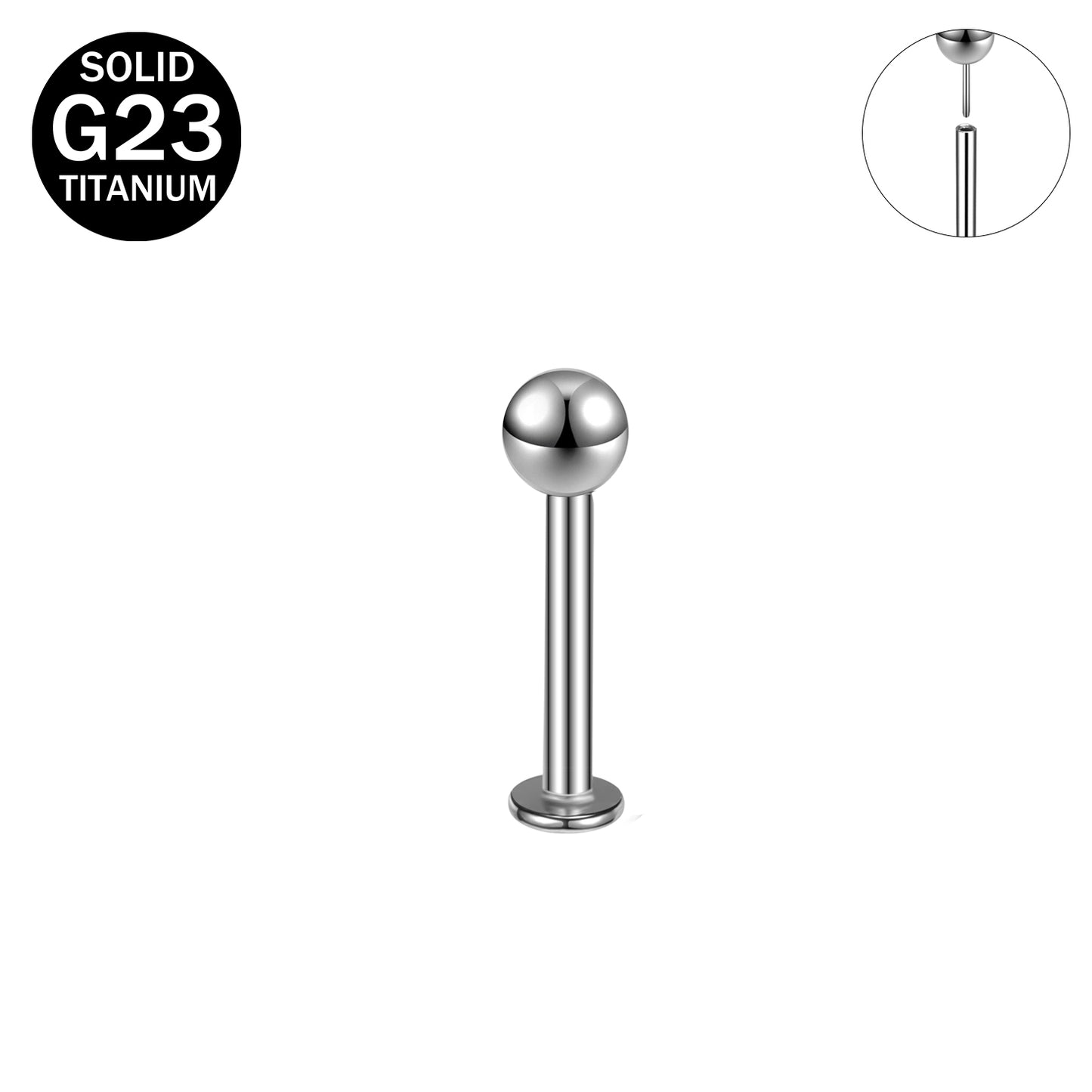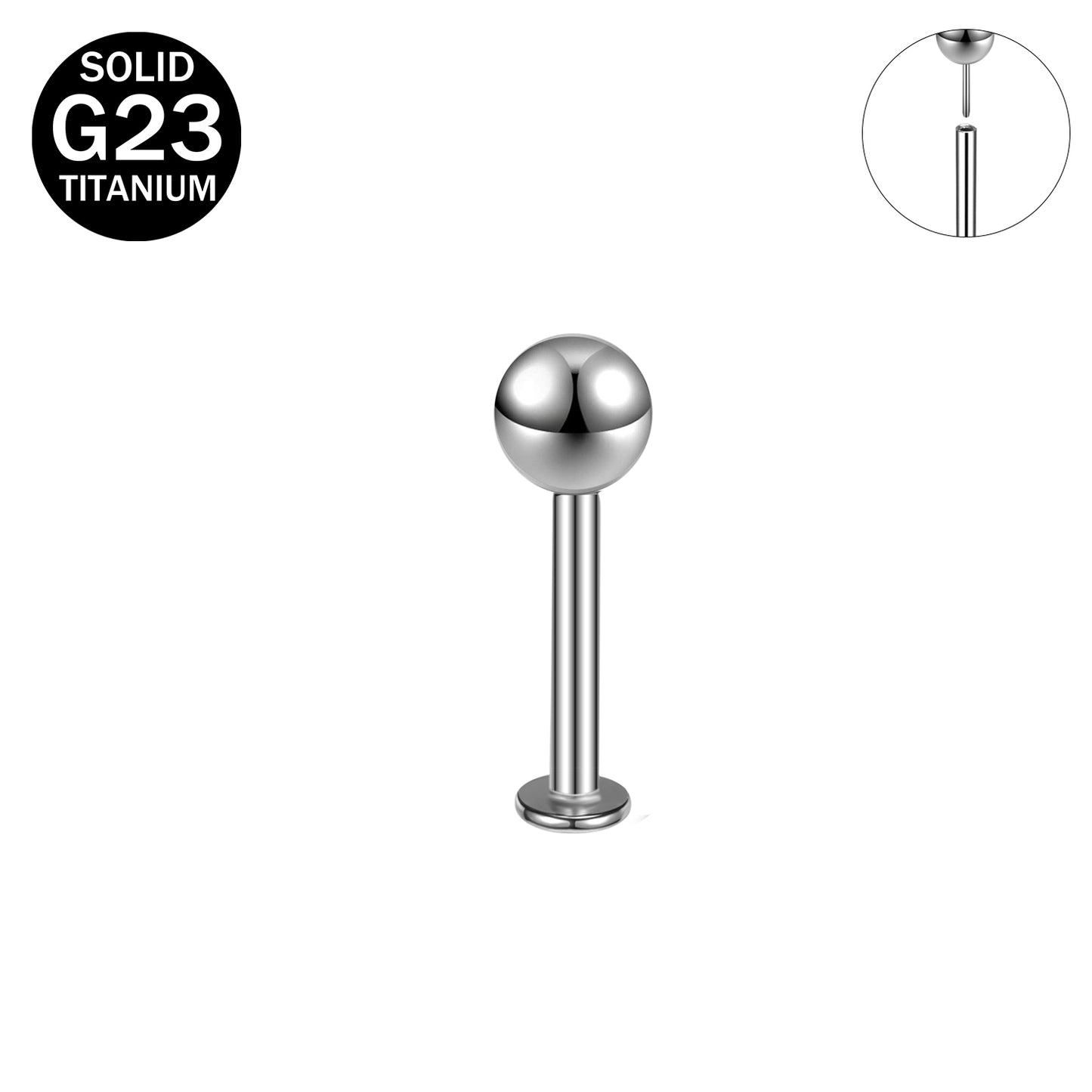 16G Push in G23 Titanium Labret Rings Simple Ball Tragus Helix Conch Piercing