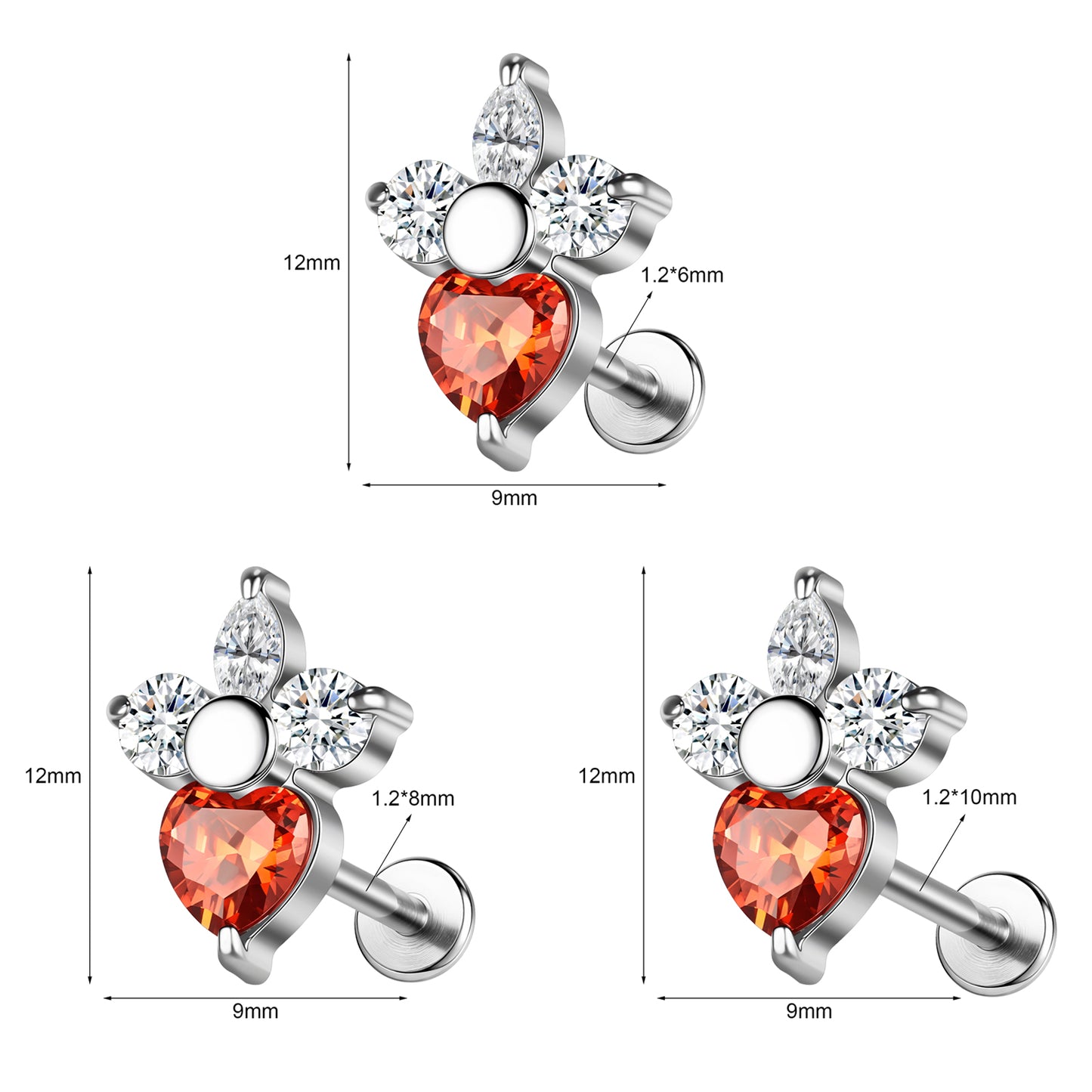 - Material: Labret Lip Studs made of 316L Stainless Steel and Crystal.