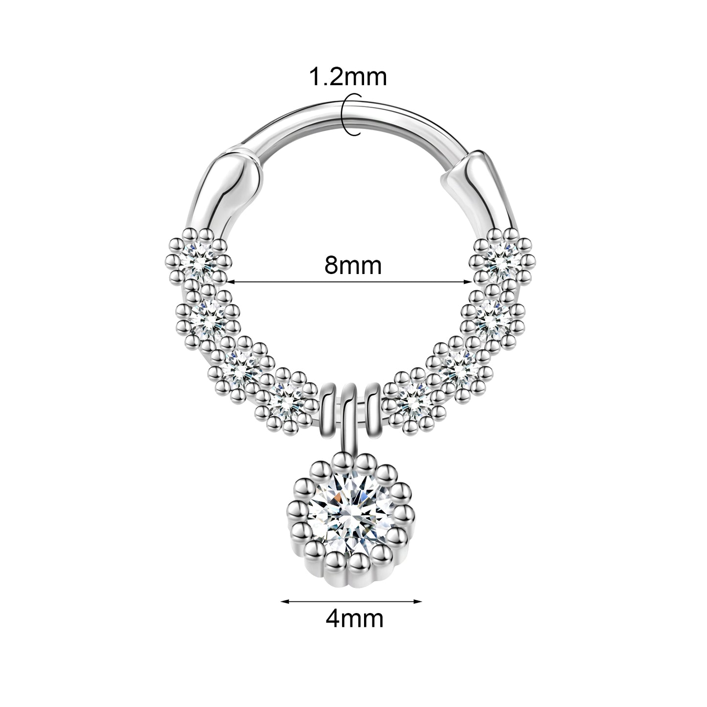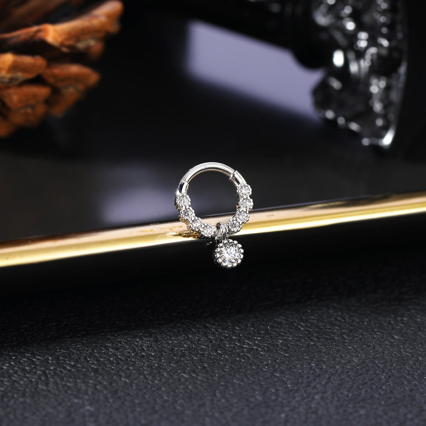 16g Round Dangle Nose Ring Clear Zircon Septum Ring Piercing Jewelry