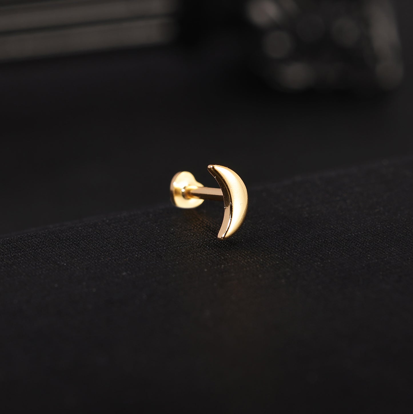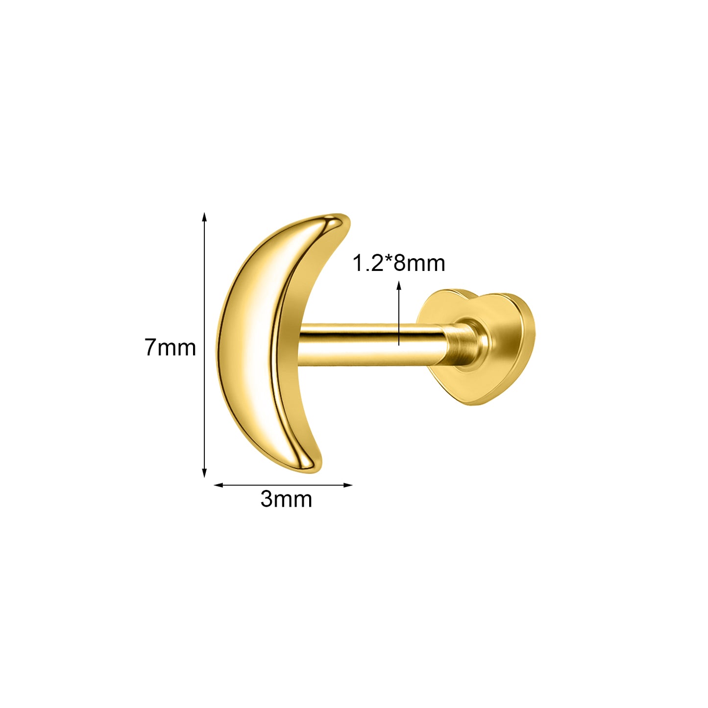 16g S925 Sterling Silver Labret Ring Moon Stud Earring Conch Helix Lip Piercing