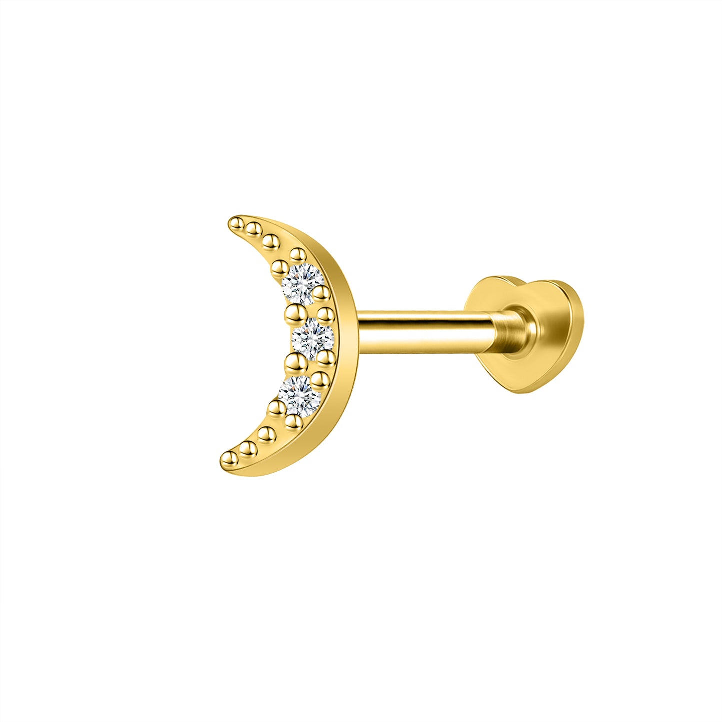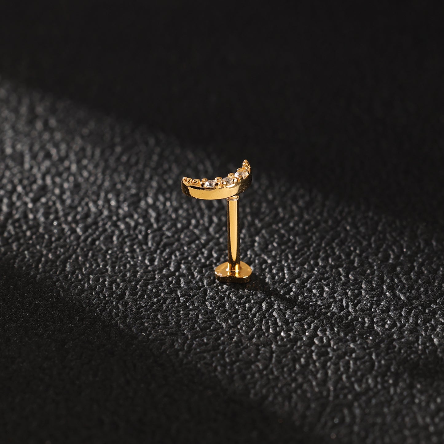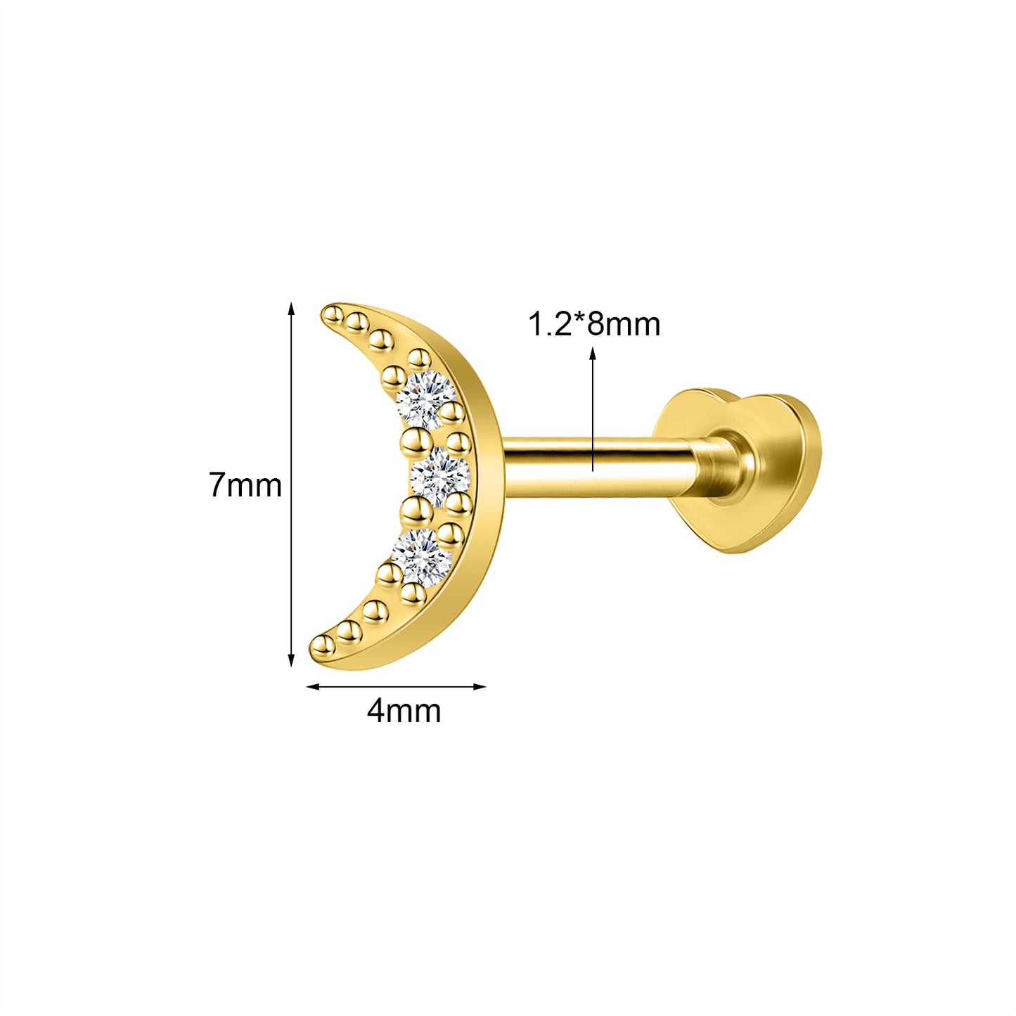 16g S925 Sterling Silver Labret Ring Moon Stud Earring Conch Helix Lip Piercing