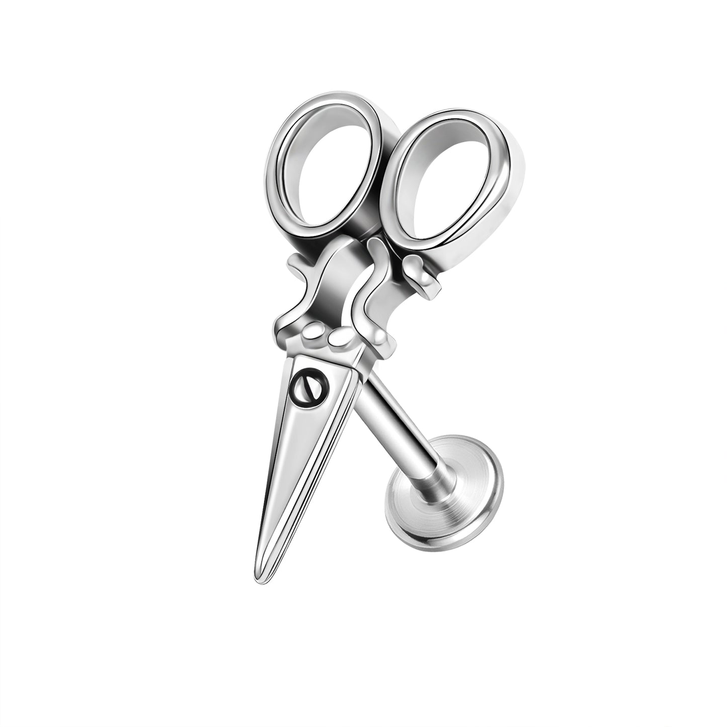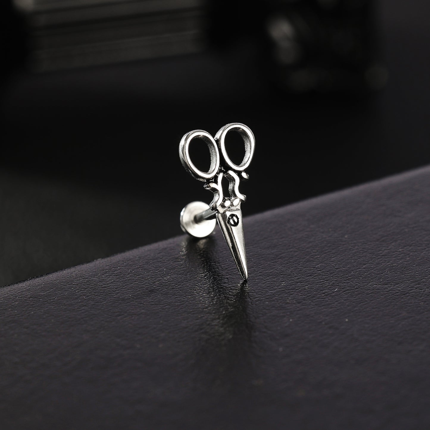 16g Scissors Labret Ring Flat Back Stud Earring Conch Helix Lip Piercing