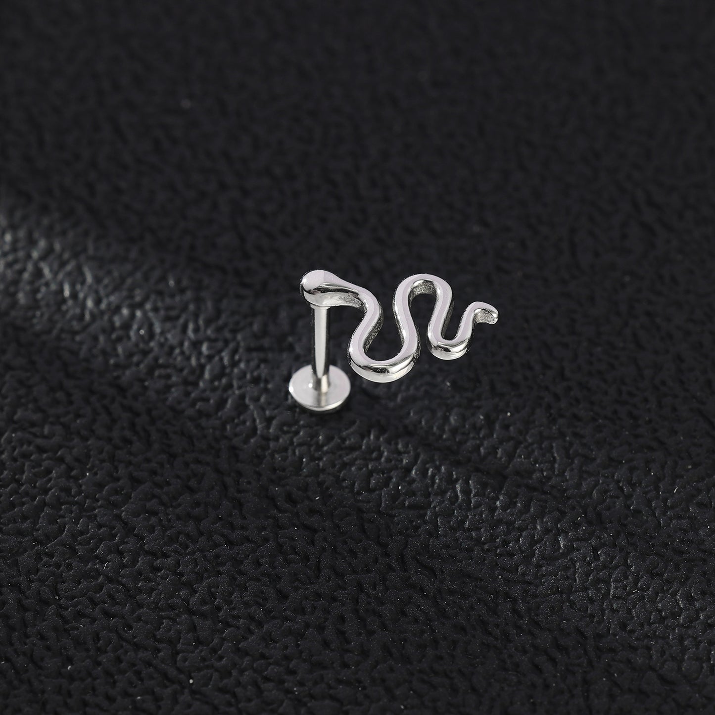 16g Snake Labret Ring Flat Back Stud Earring Conch Helix Lip Piercing