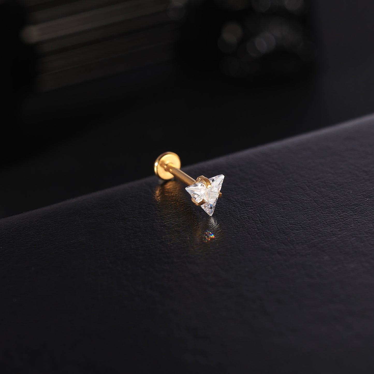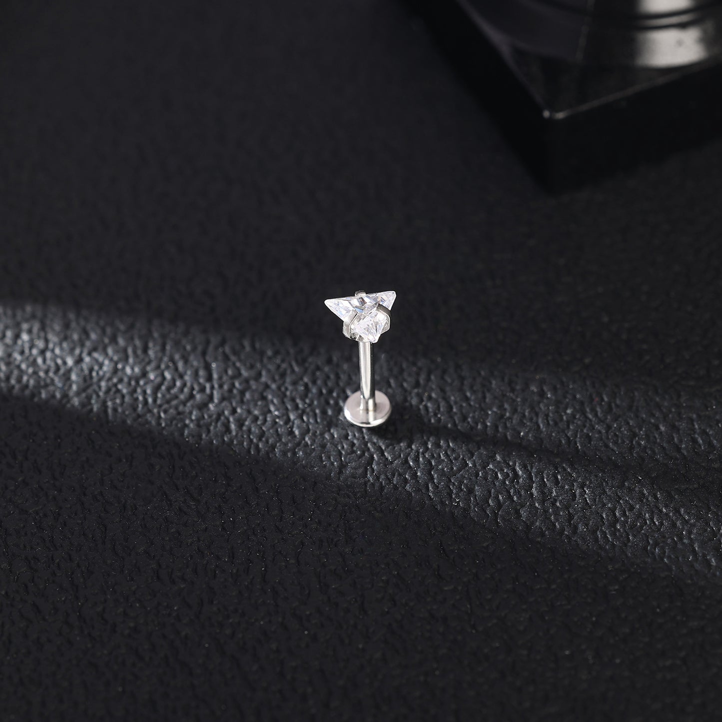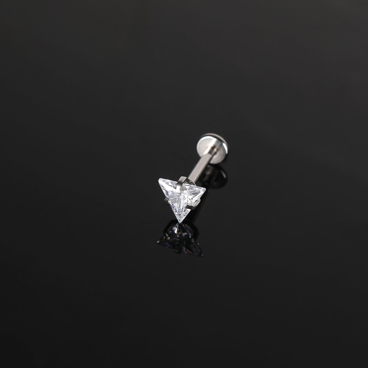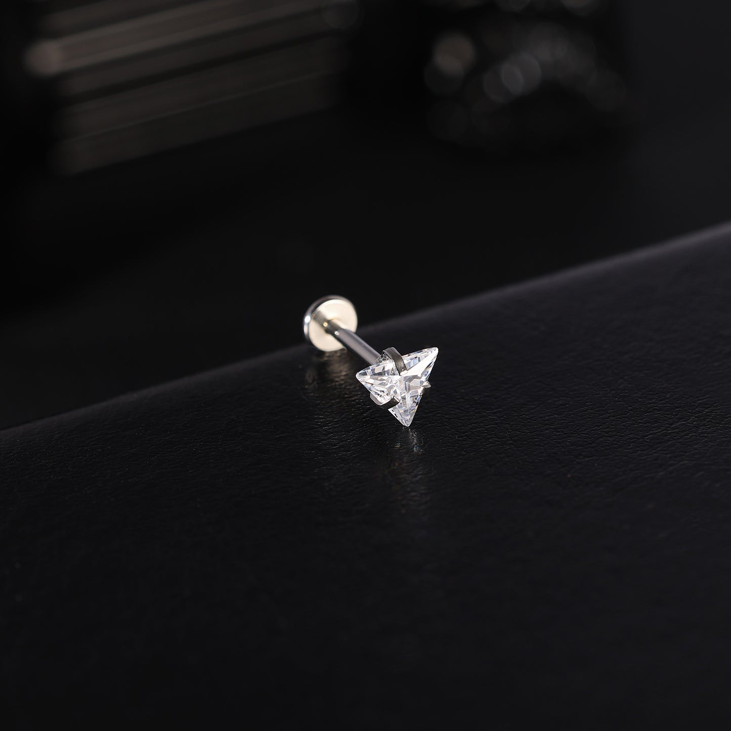 16g Triangle Labret Ring Flat Back Stud Earring CZ Conch Helix Lip Piercing