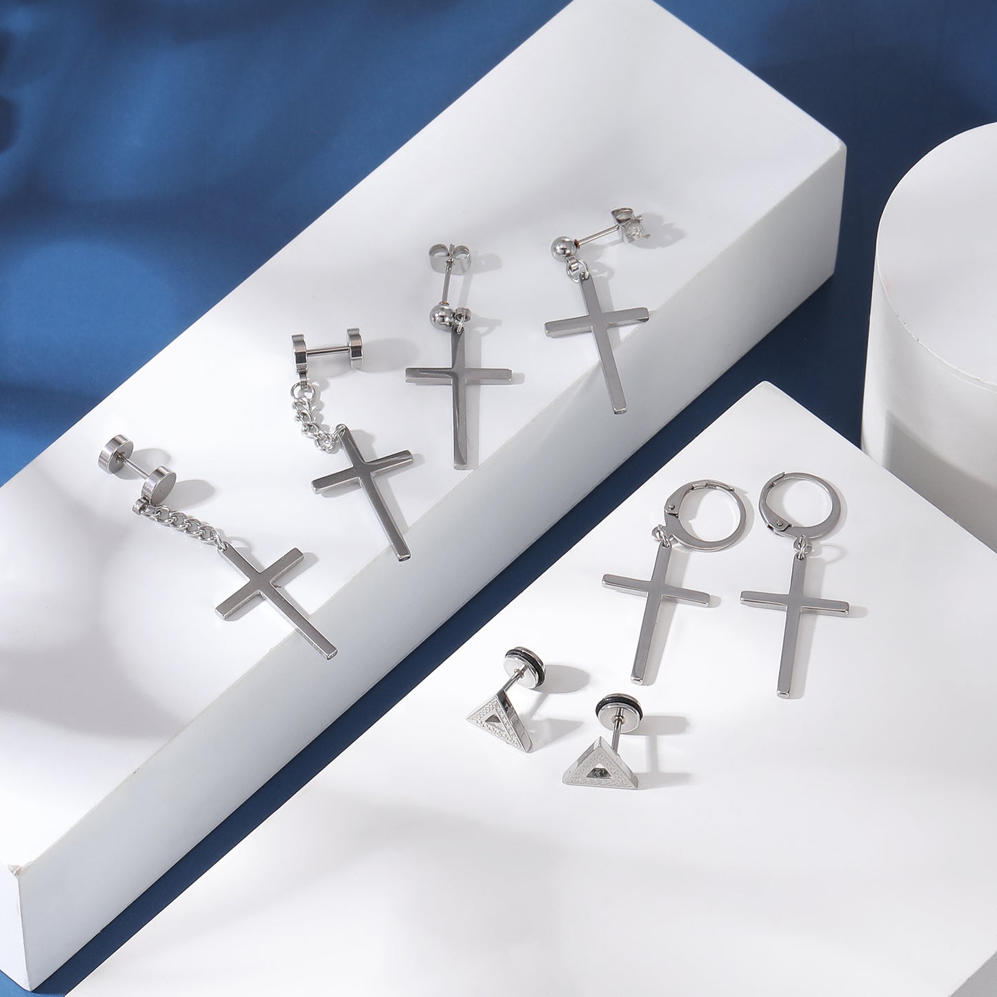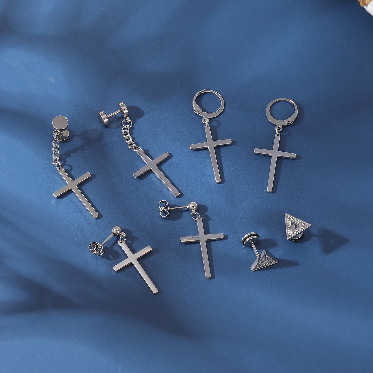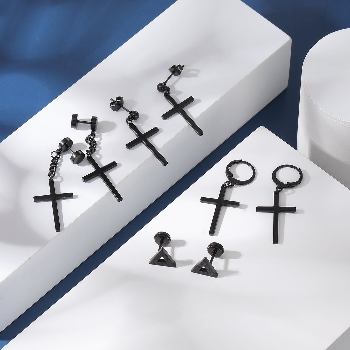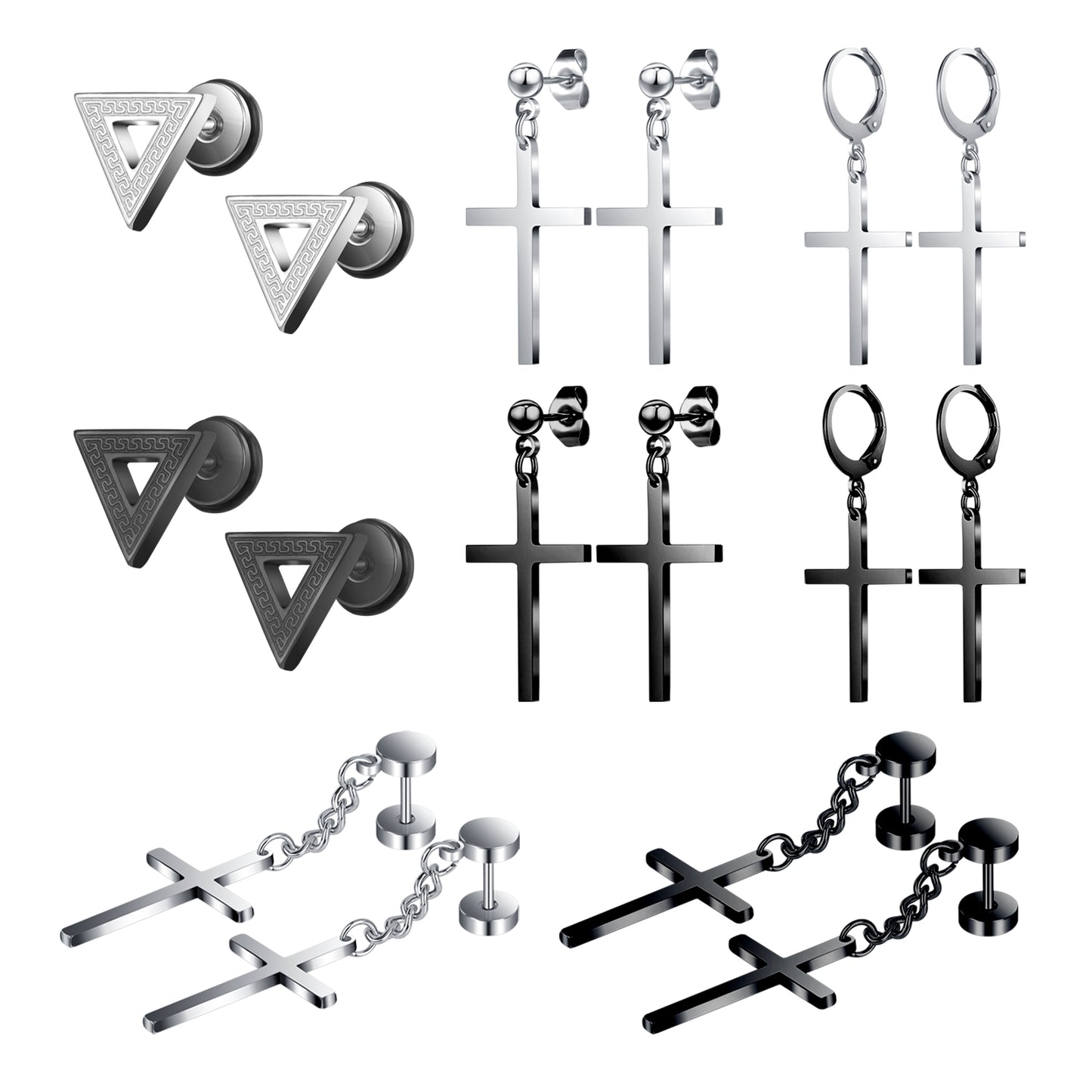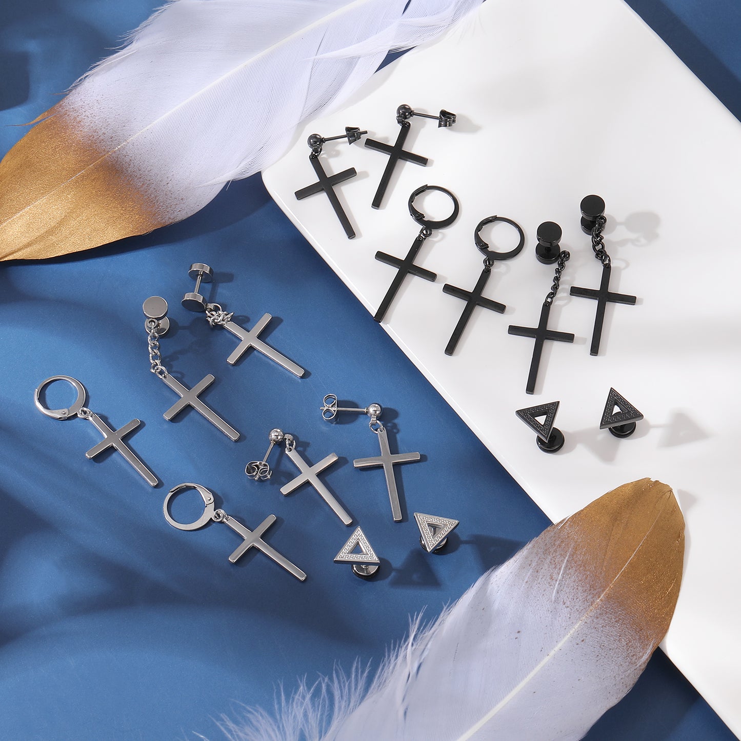 16Pcs/Set Cross Triangle Stud Earring Silver Black Ear Stud-Economic Set