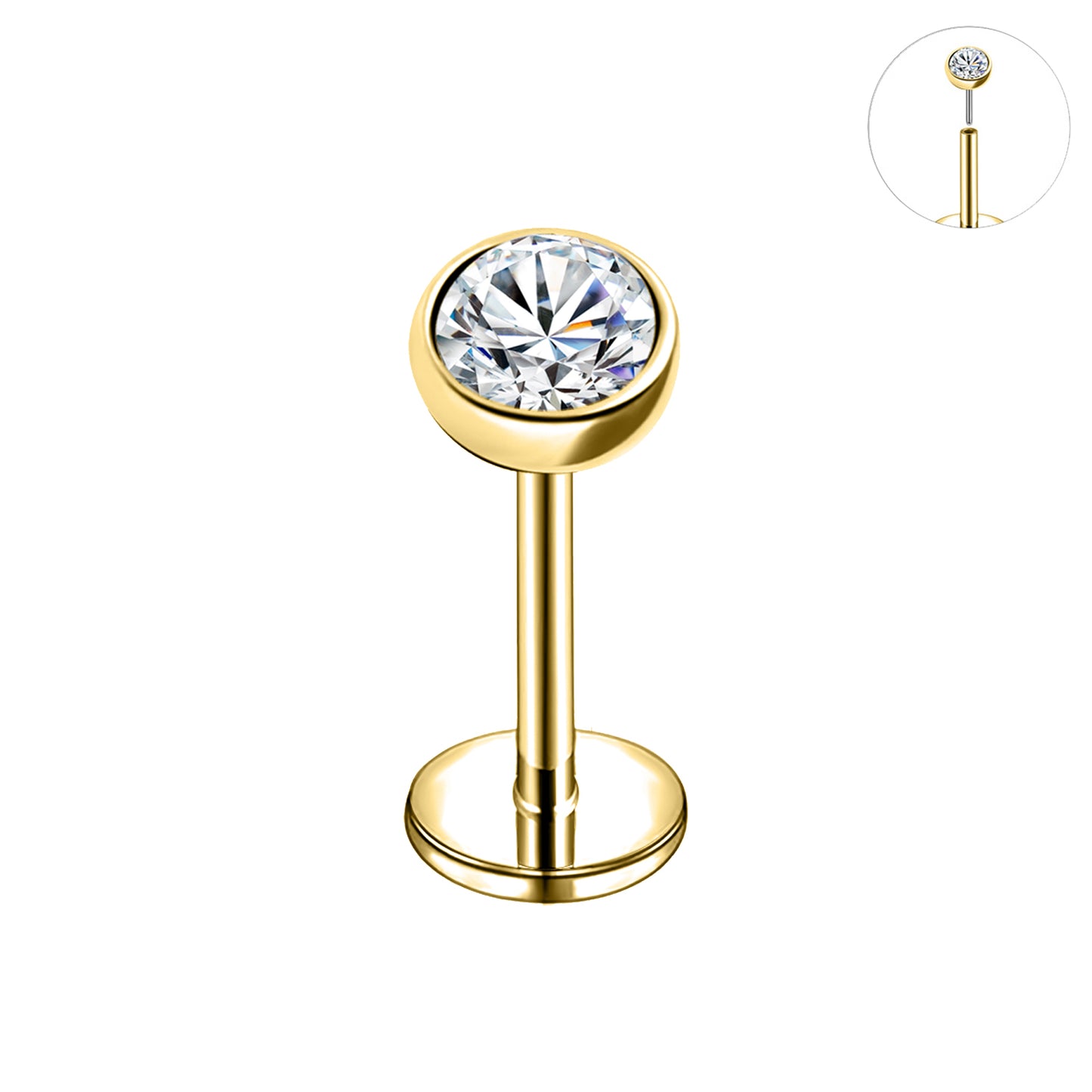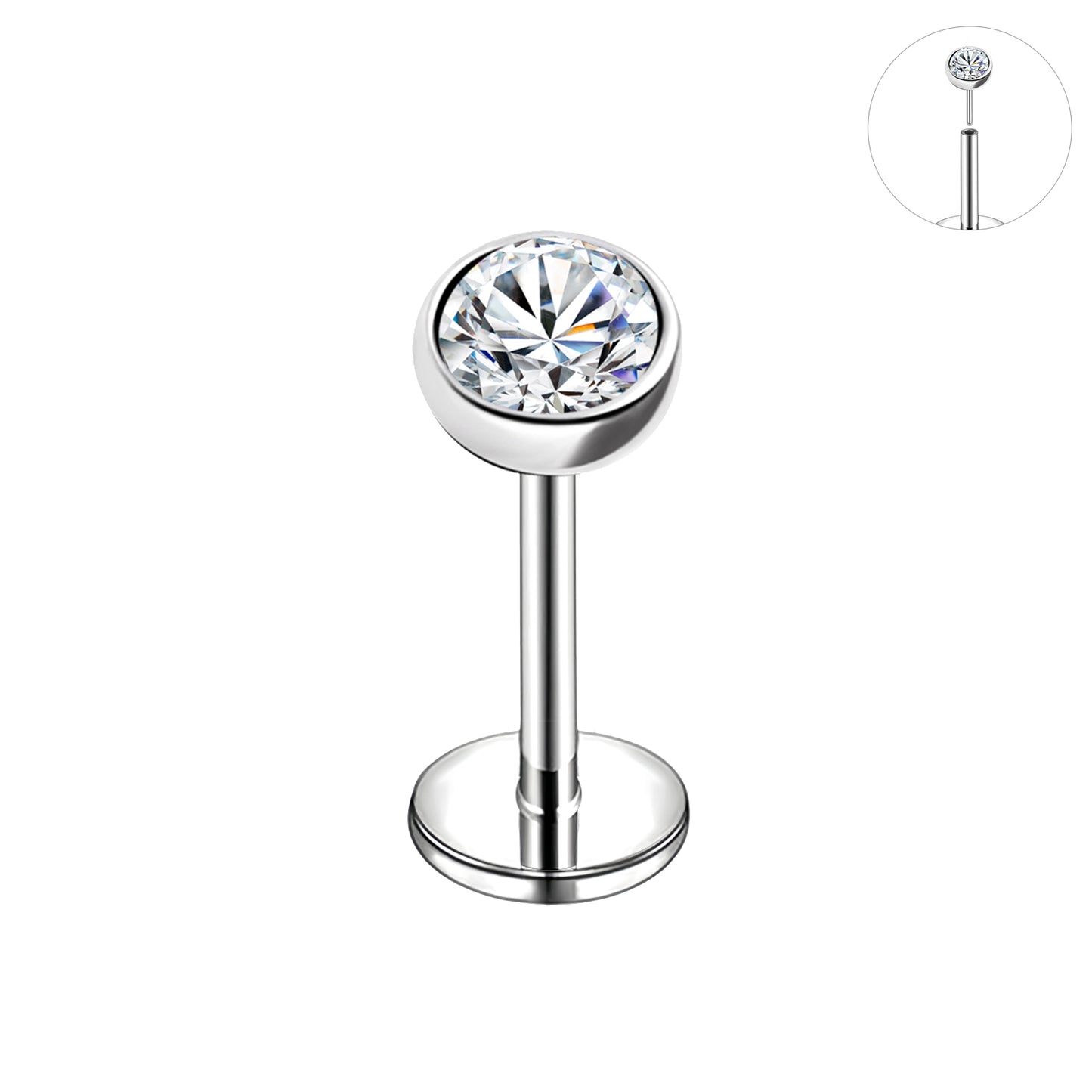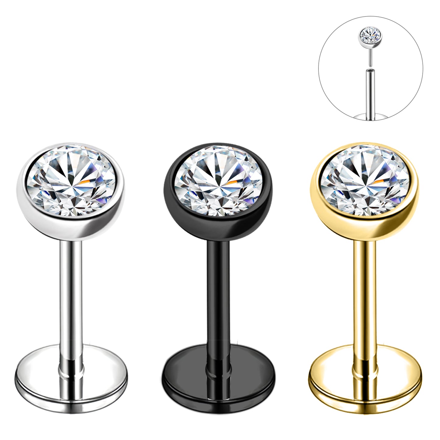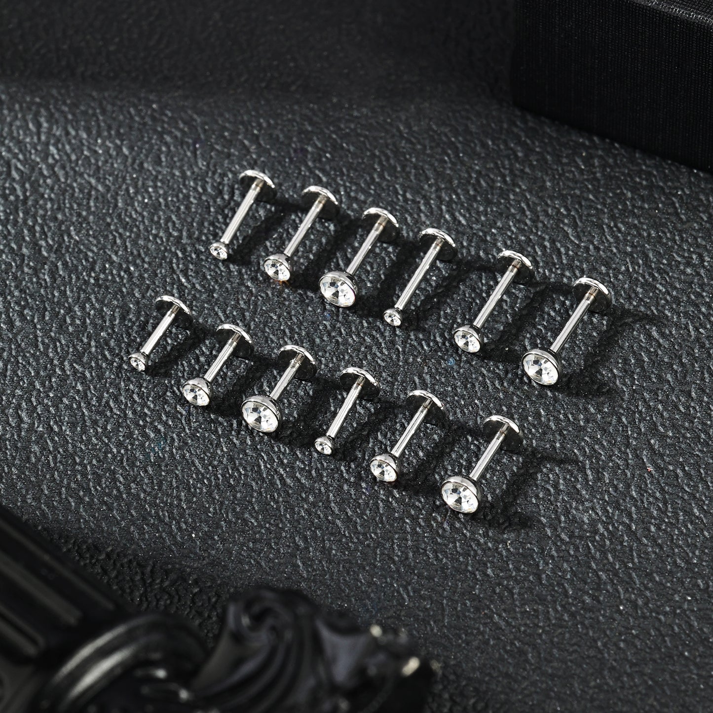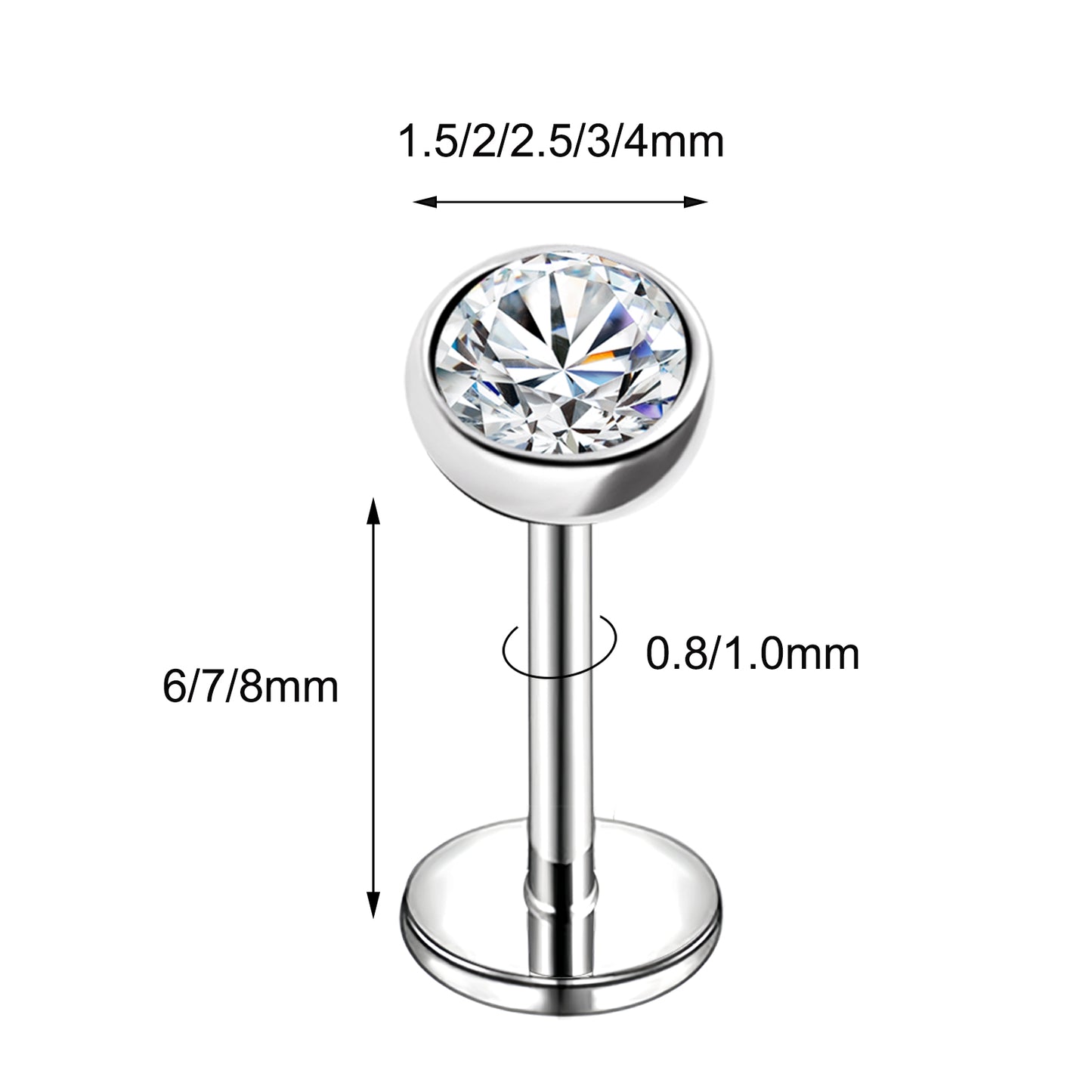 18g/20g Shiny Zircon Nose Stud Flat Back Nose Ring Internal Thread Nostril Piercing