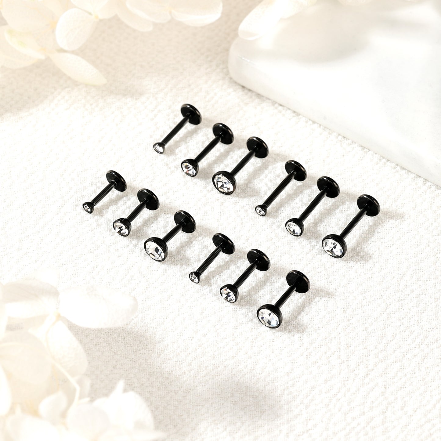 16G Mickey Diamond Crystal Labret Rings Tragus Helix Conch Lip Piercing