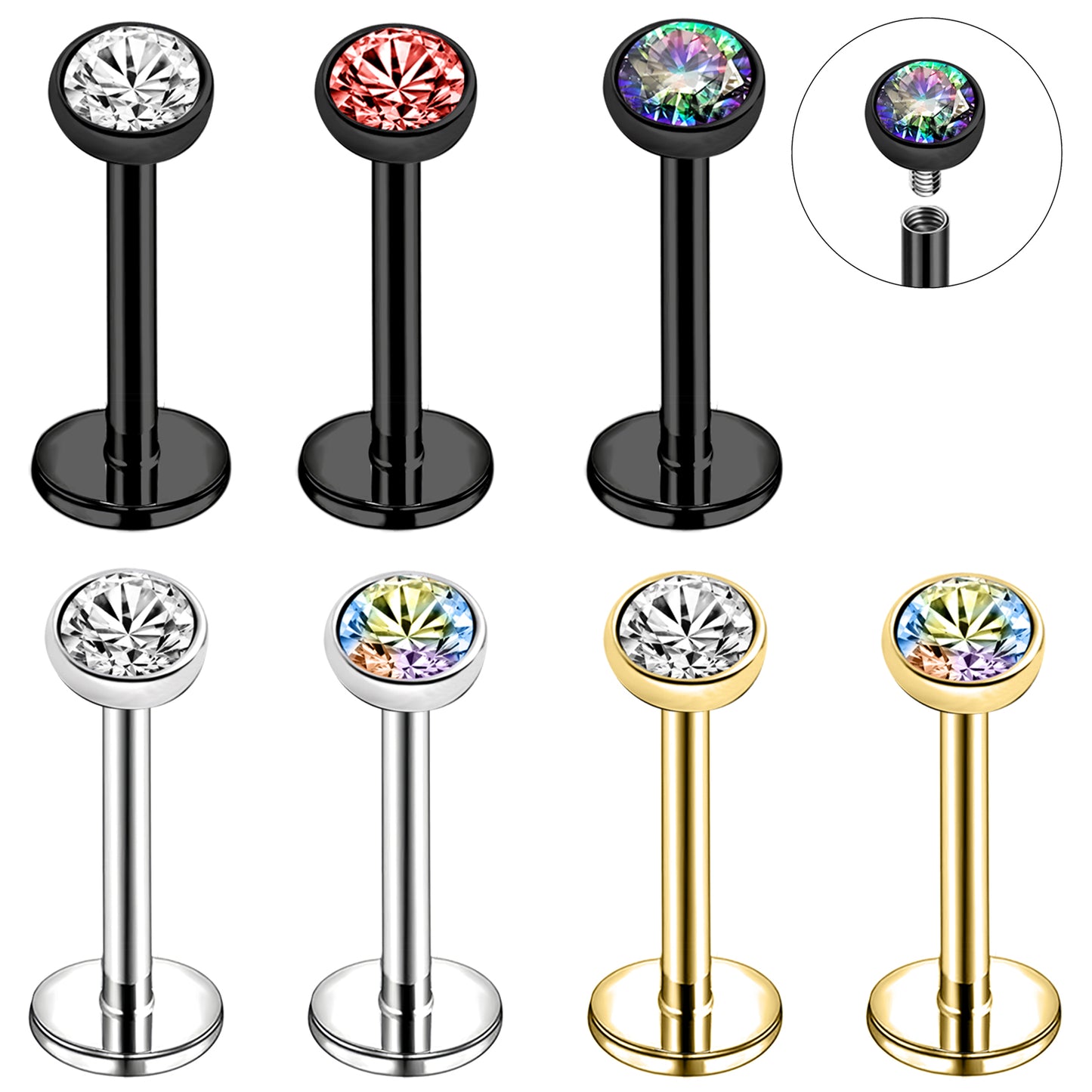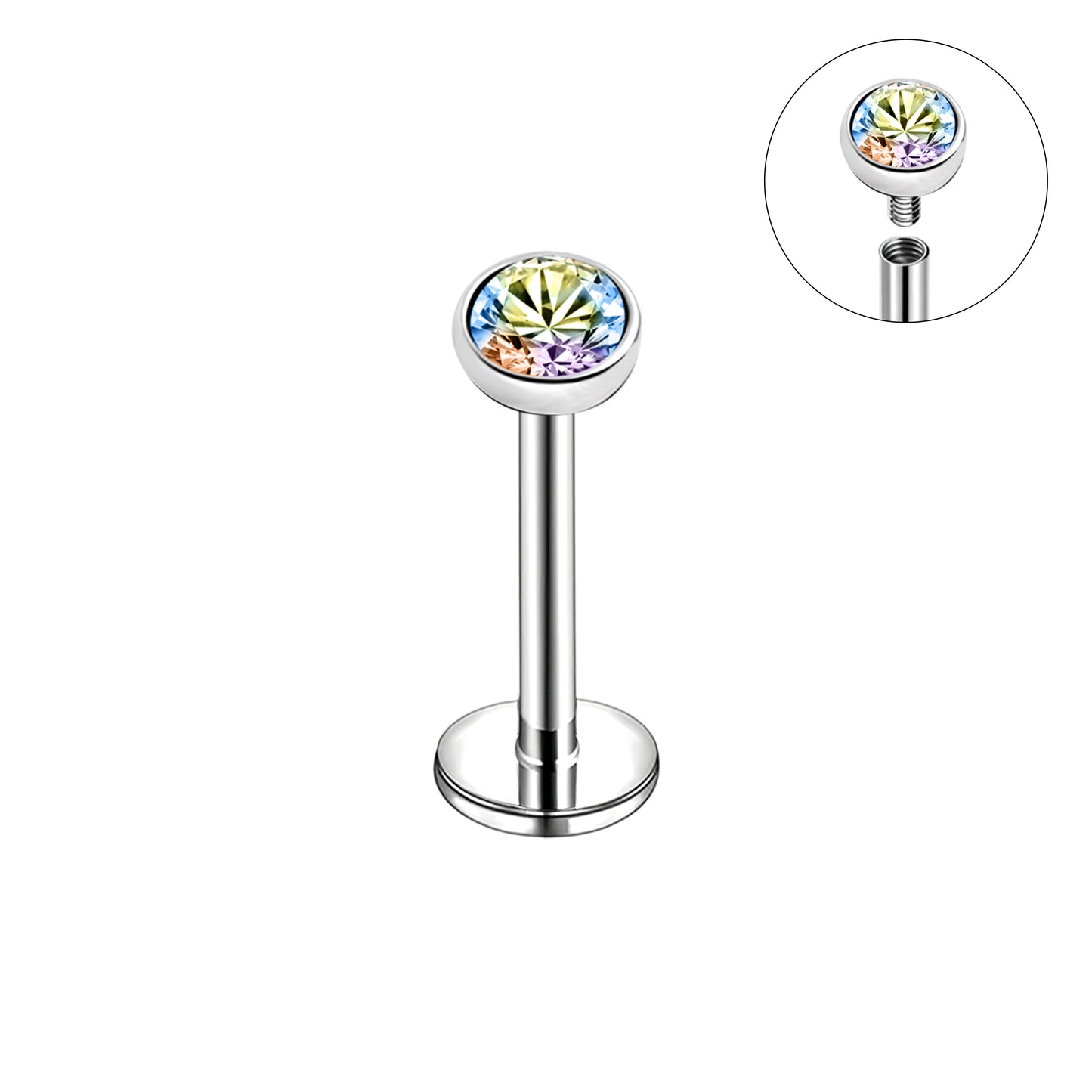 18g Shiny Crystal Nose Stud Flat Back Nose Ring Internal Thread Nostril Piercing