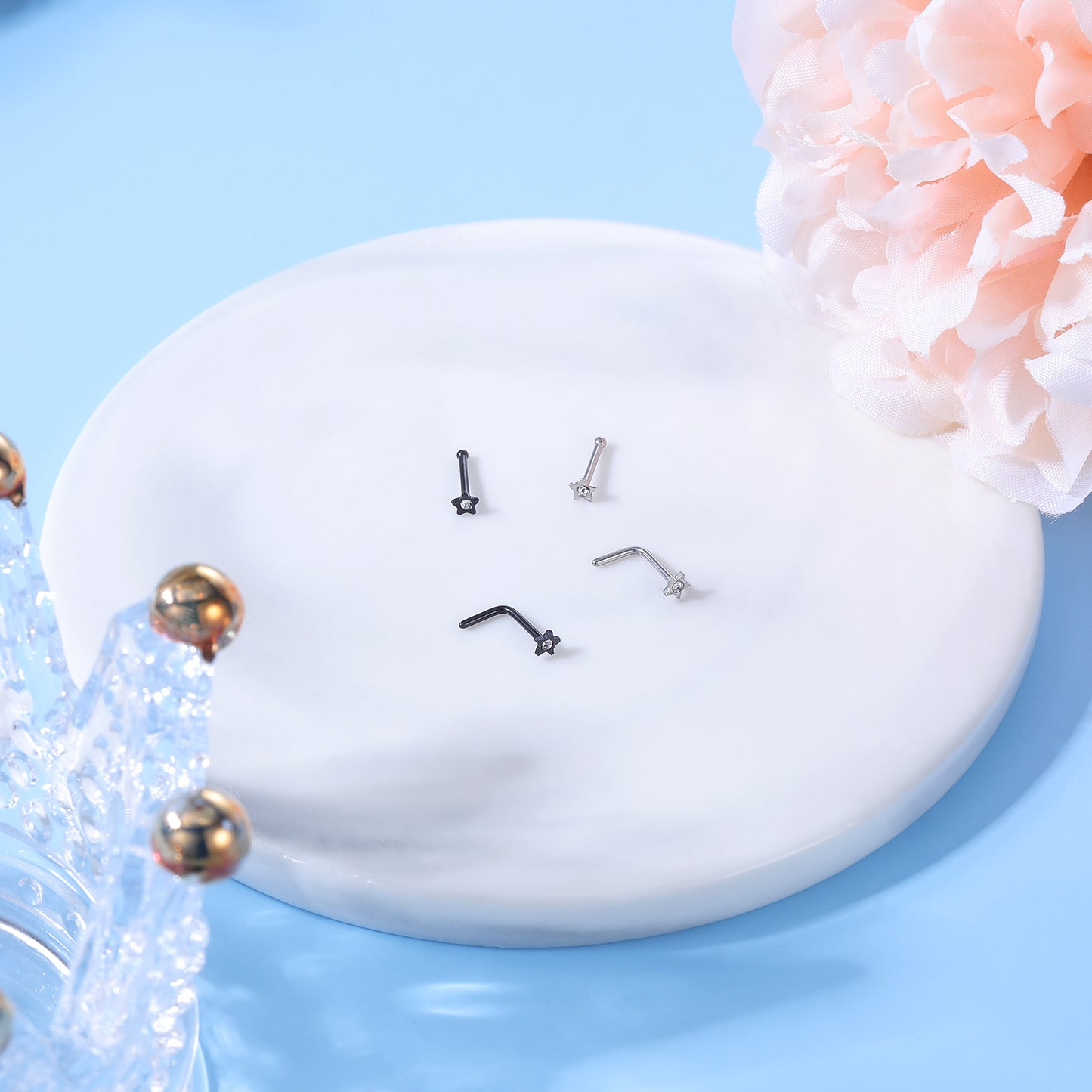 1Pc 20g Star Nose Stud Piercing Crystal Nose Bone L Shape Nostril Piercing