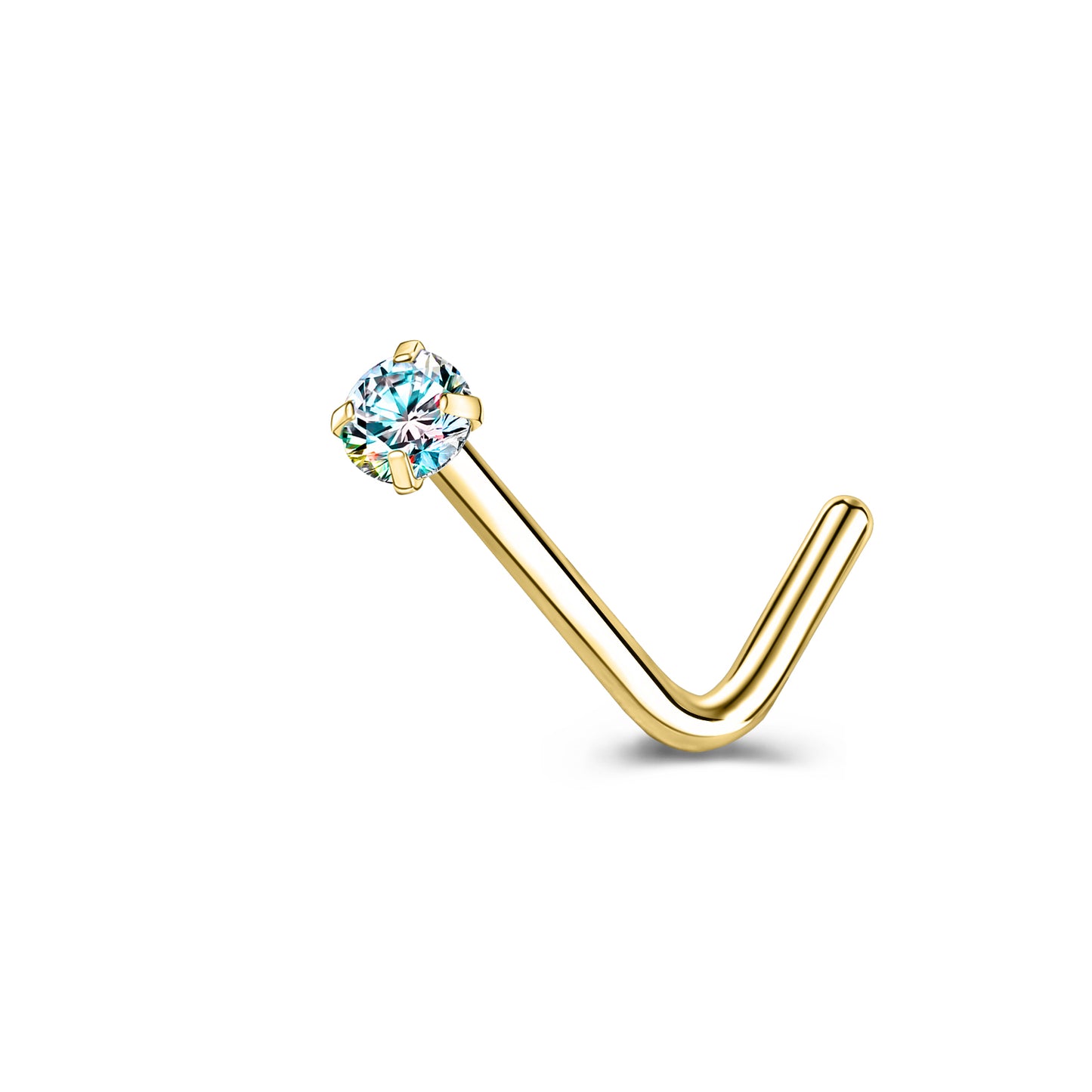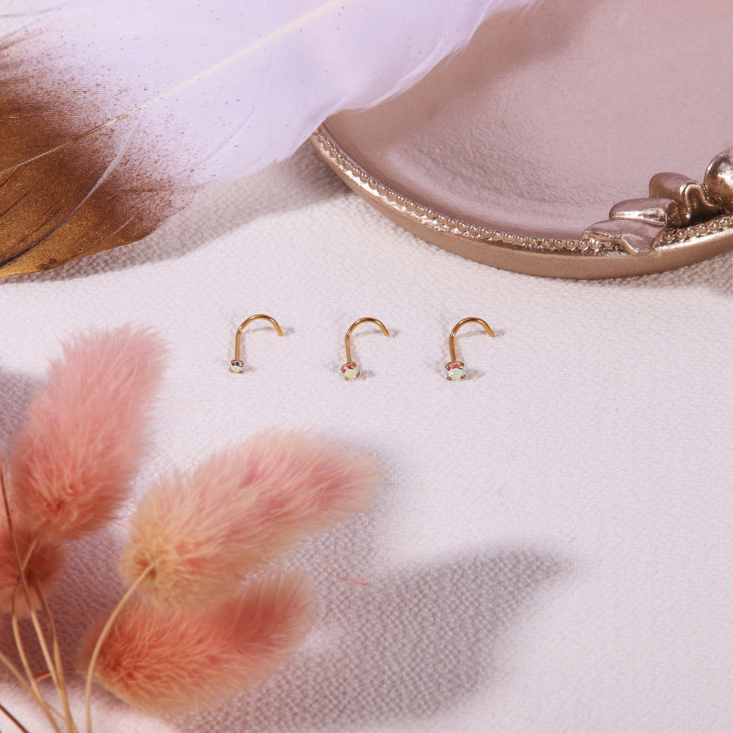 20g AB Crystal Nose Studs Piercing Gold Plated L Shape Corkscrew Nose Ring