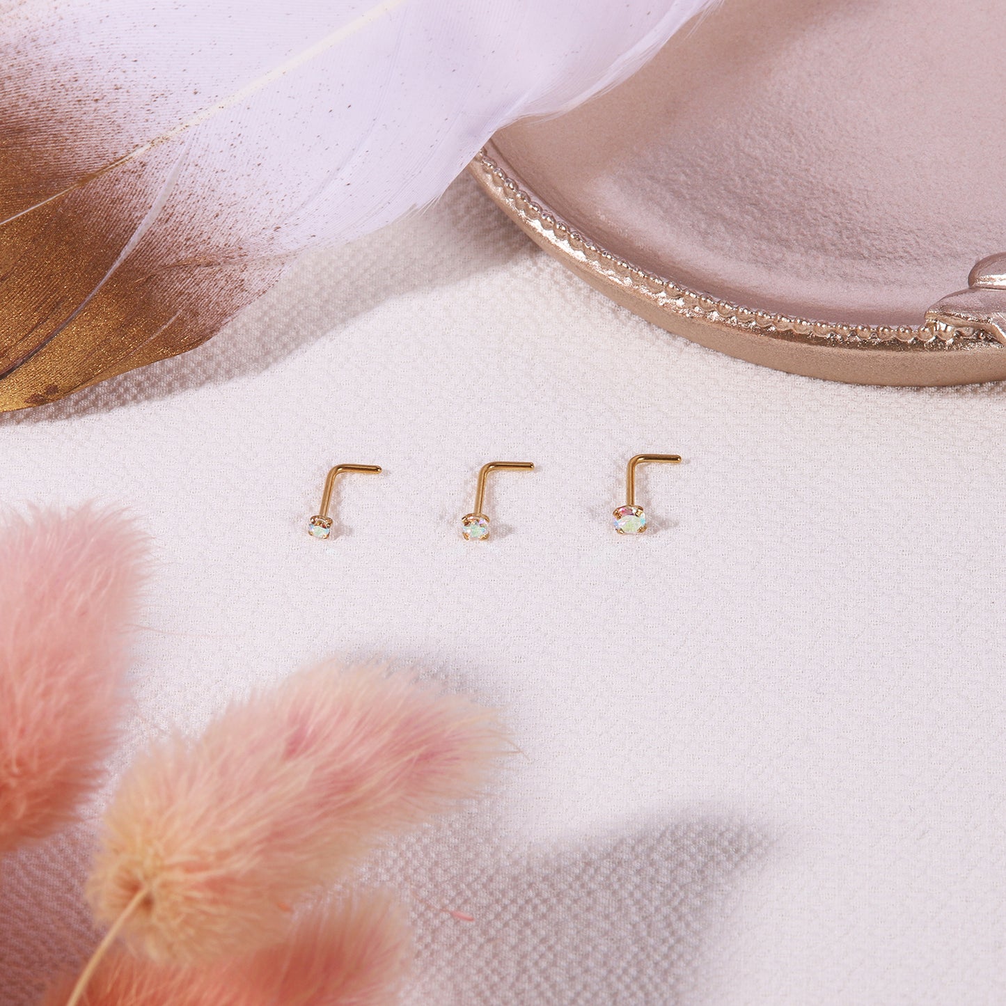 18G/20G Stainlesss Steel Nose Studs L Shape Nose Piercing White Zirconia Nostril Piercing