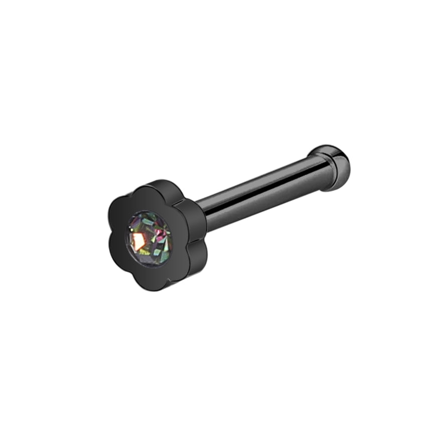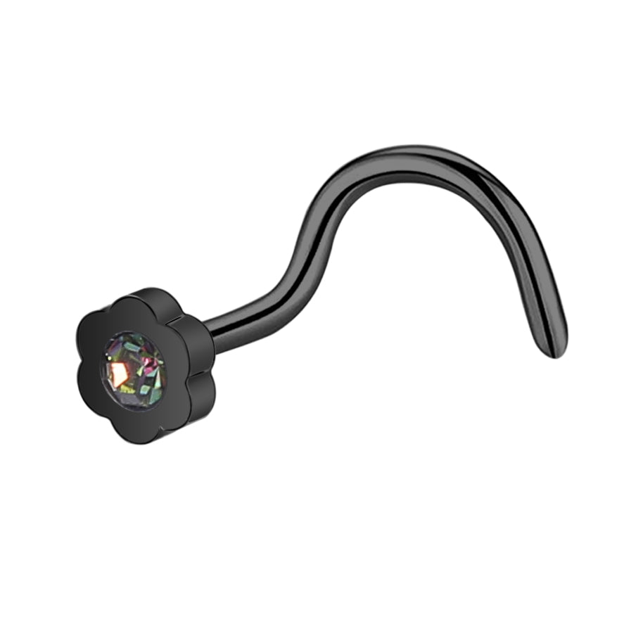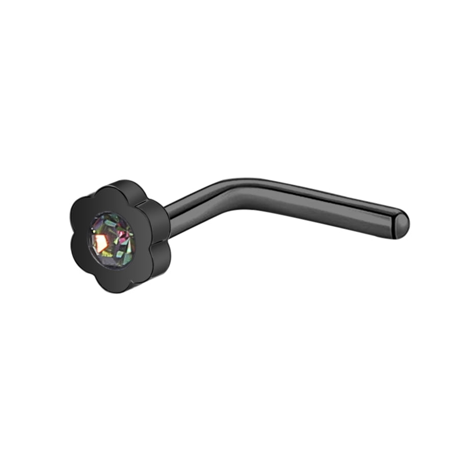 20G Black Flower Crystal Nose Studs Piercing Nose Bone Shape L Shape Crokscrew Nose Rings Stainless Steel Nostril Piercing