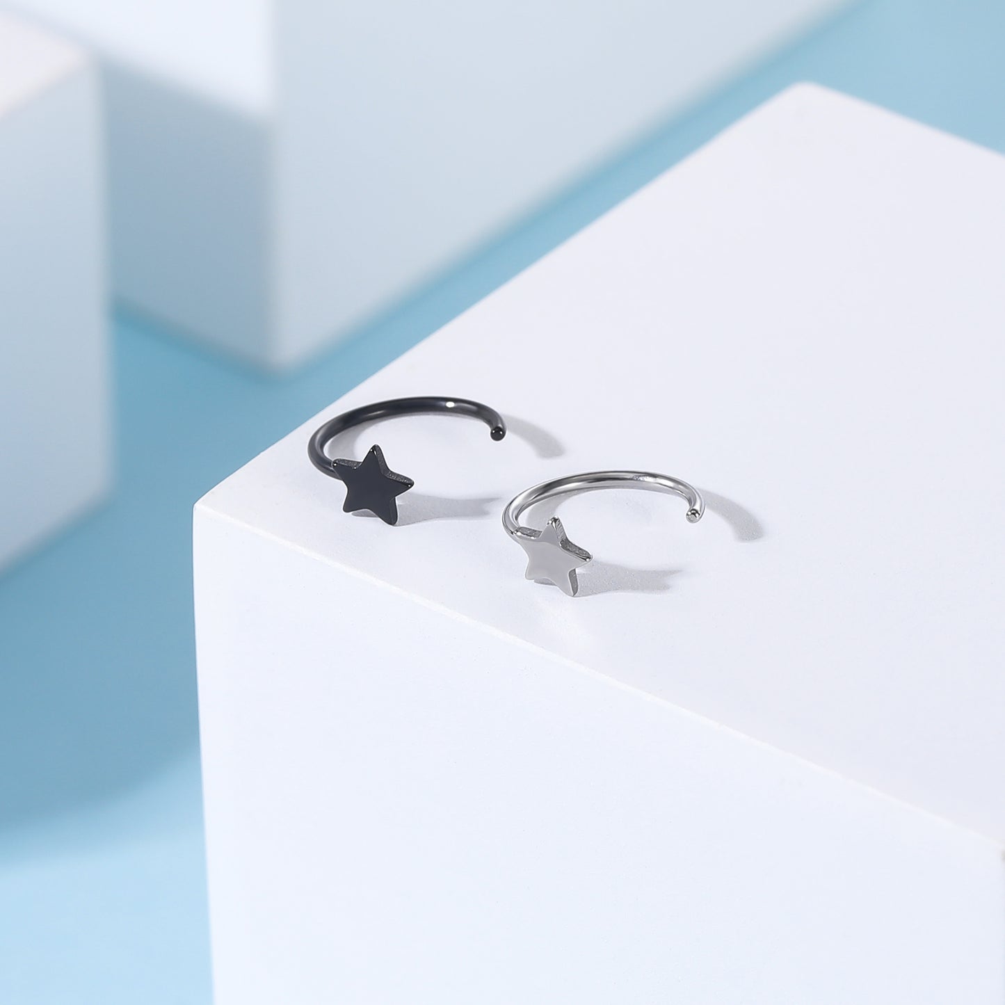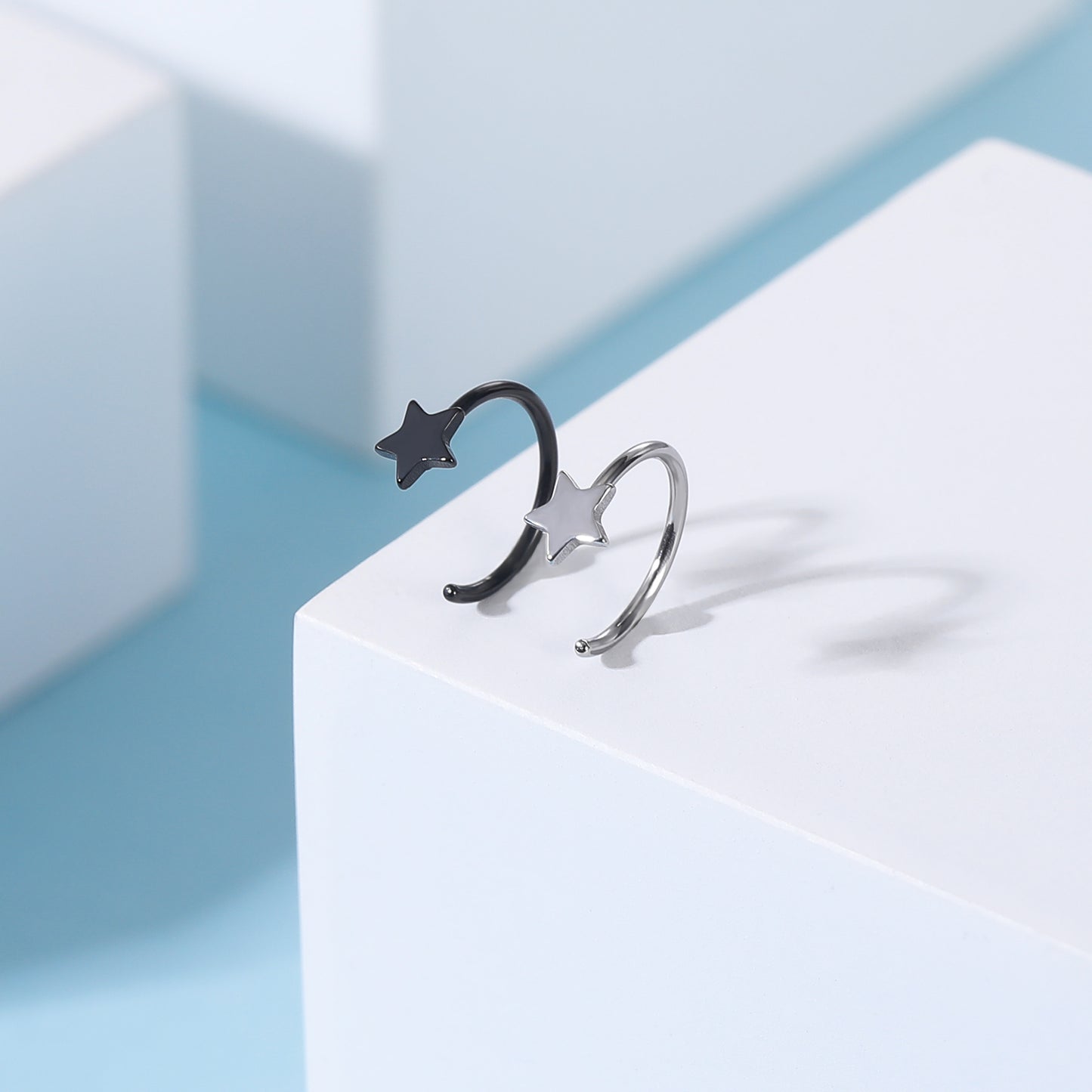 20G Black Silver Star Nose Ring C Shaped Nose Stud Stainless Steel Nose Rings Piercing
