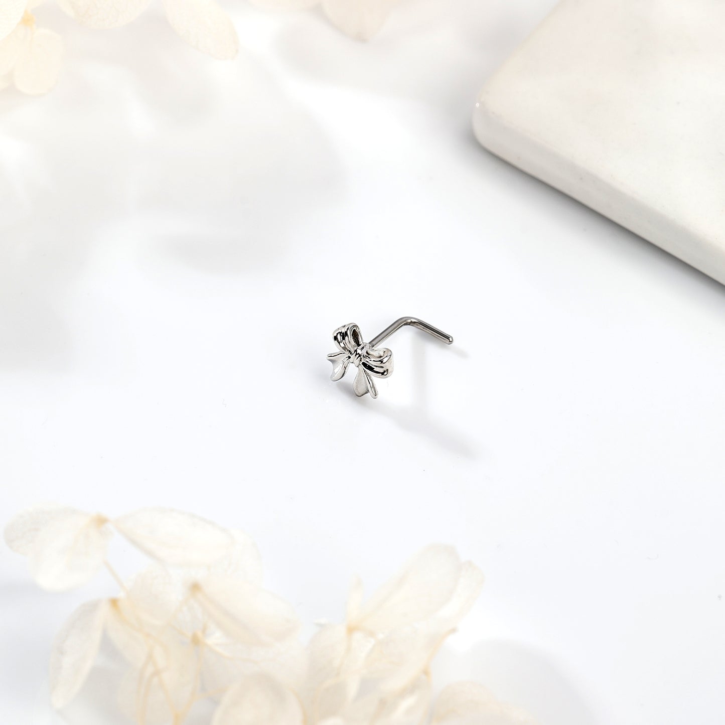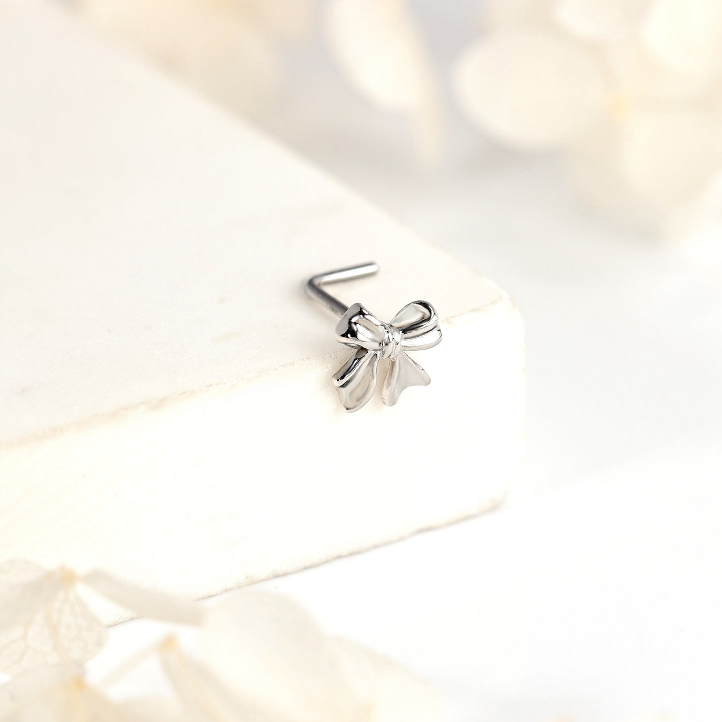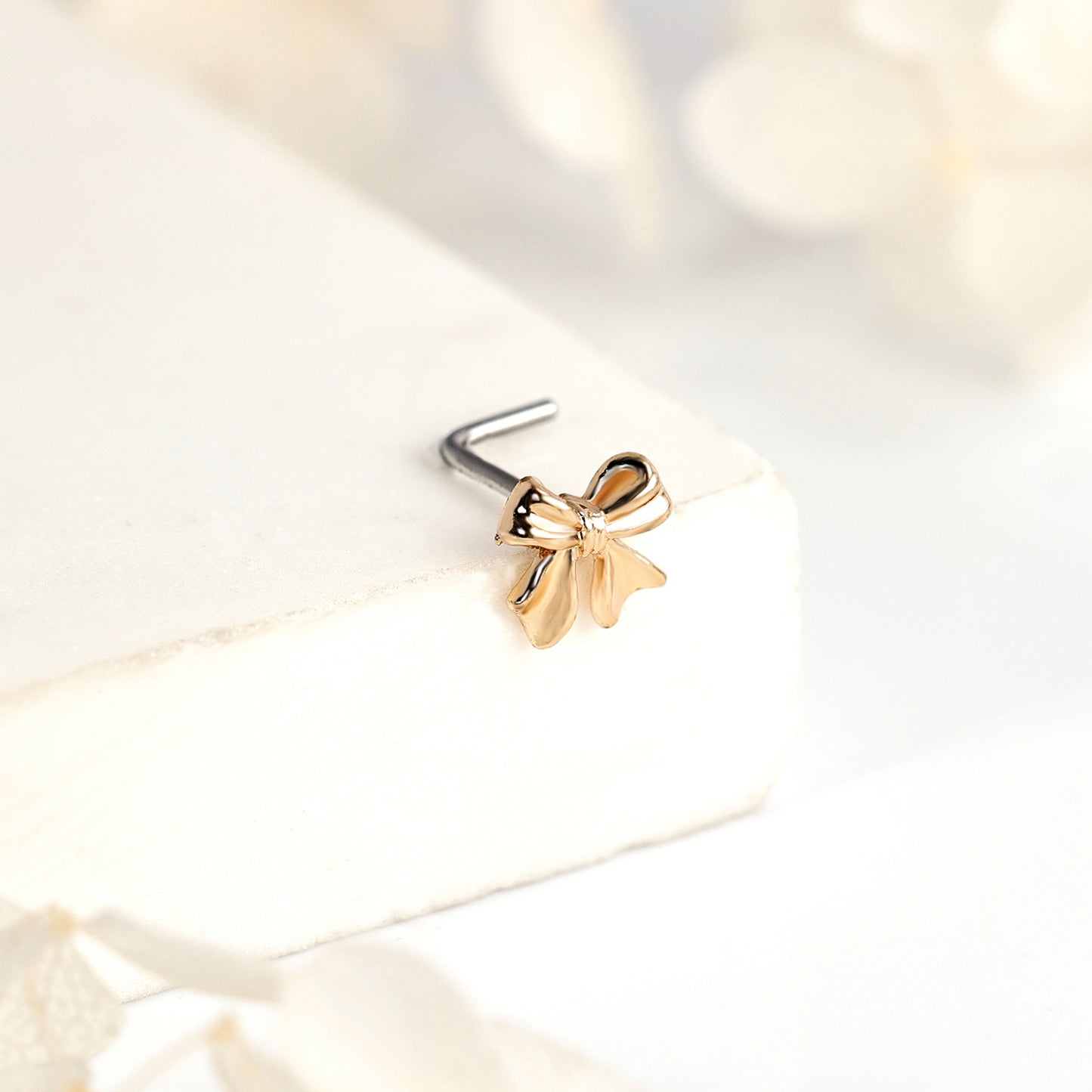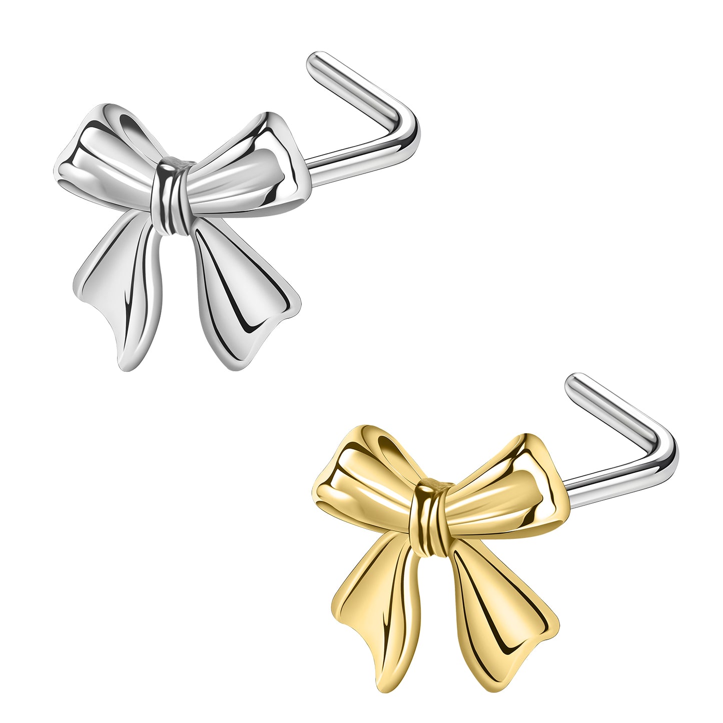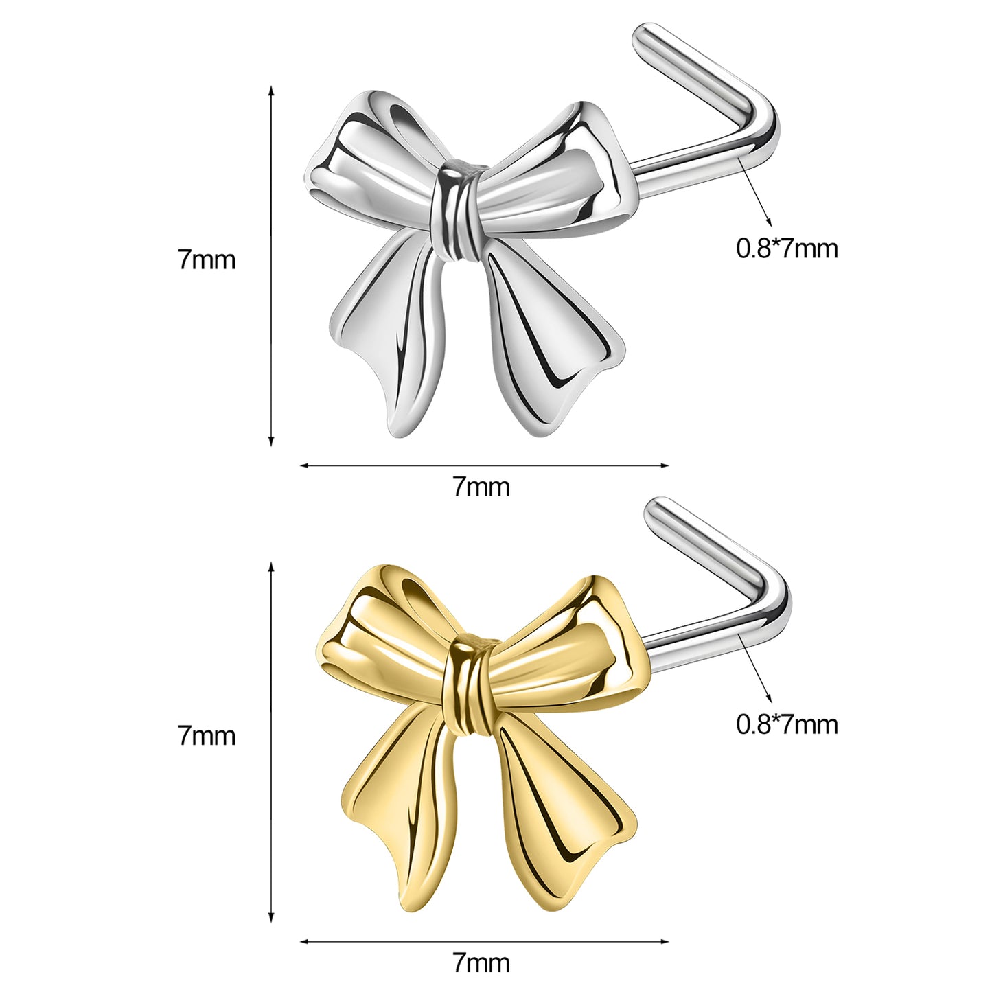 20G Bow Knot Nose Studs Piercing L Shape Nose Rings Cubic Zirocn Nostril Piercing