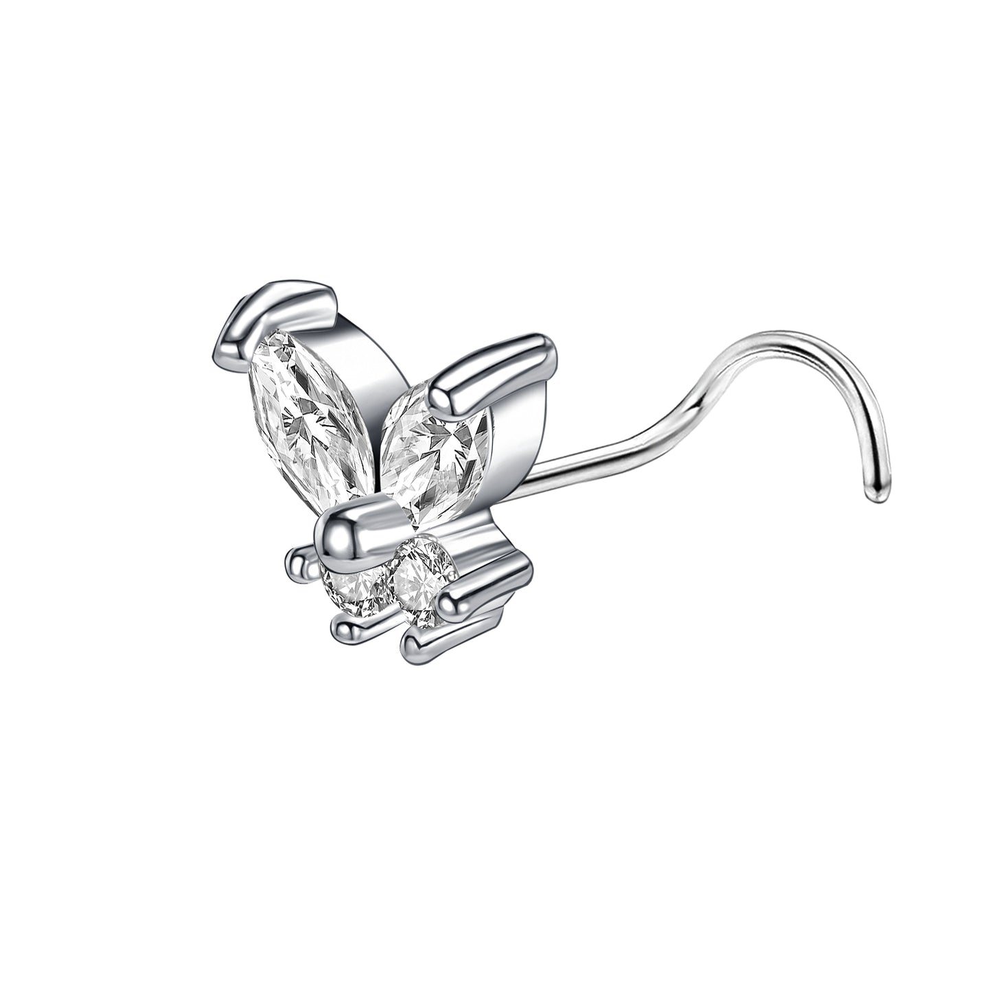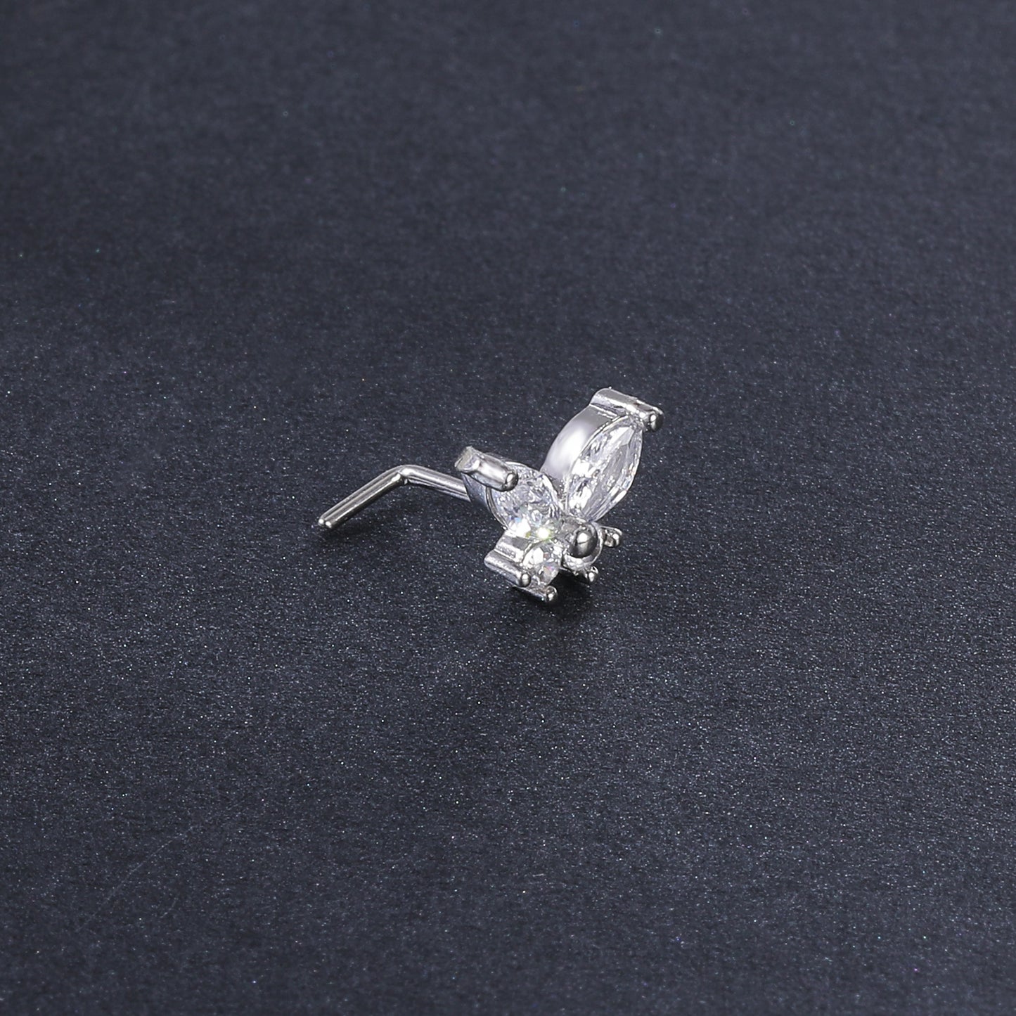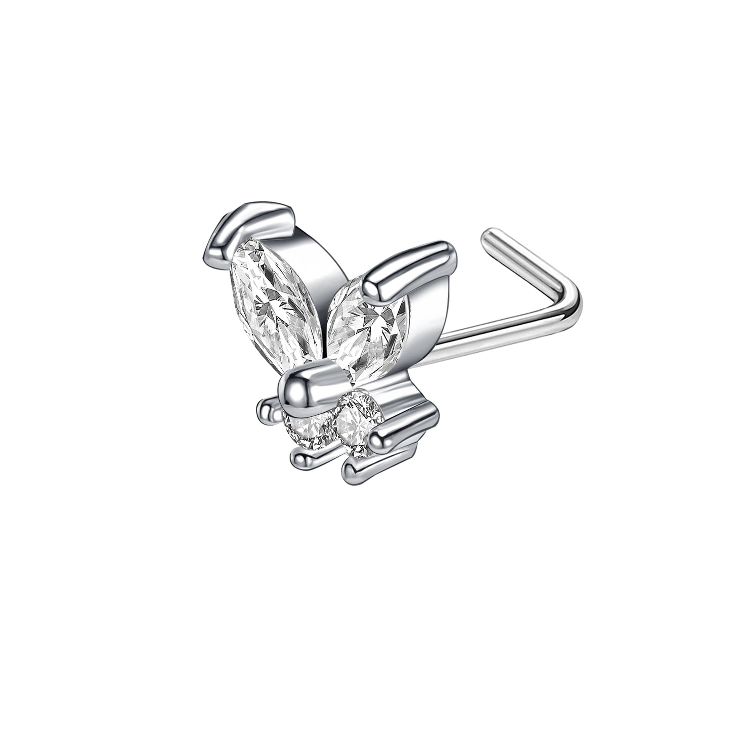 20g Butterfly Crystal Nose Rings Piercing Nose Bone L Shape Corkscrew Nose Studs