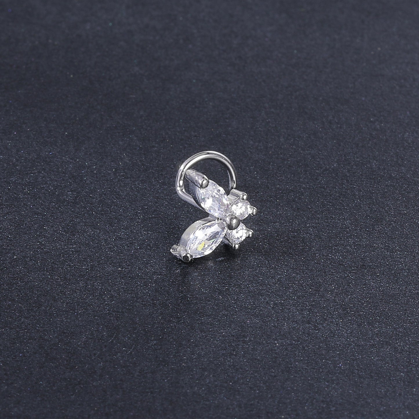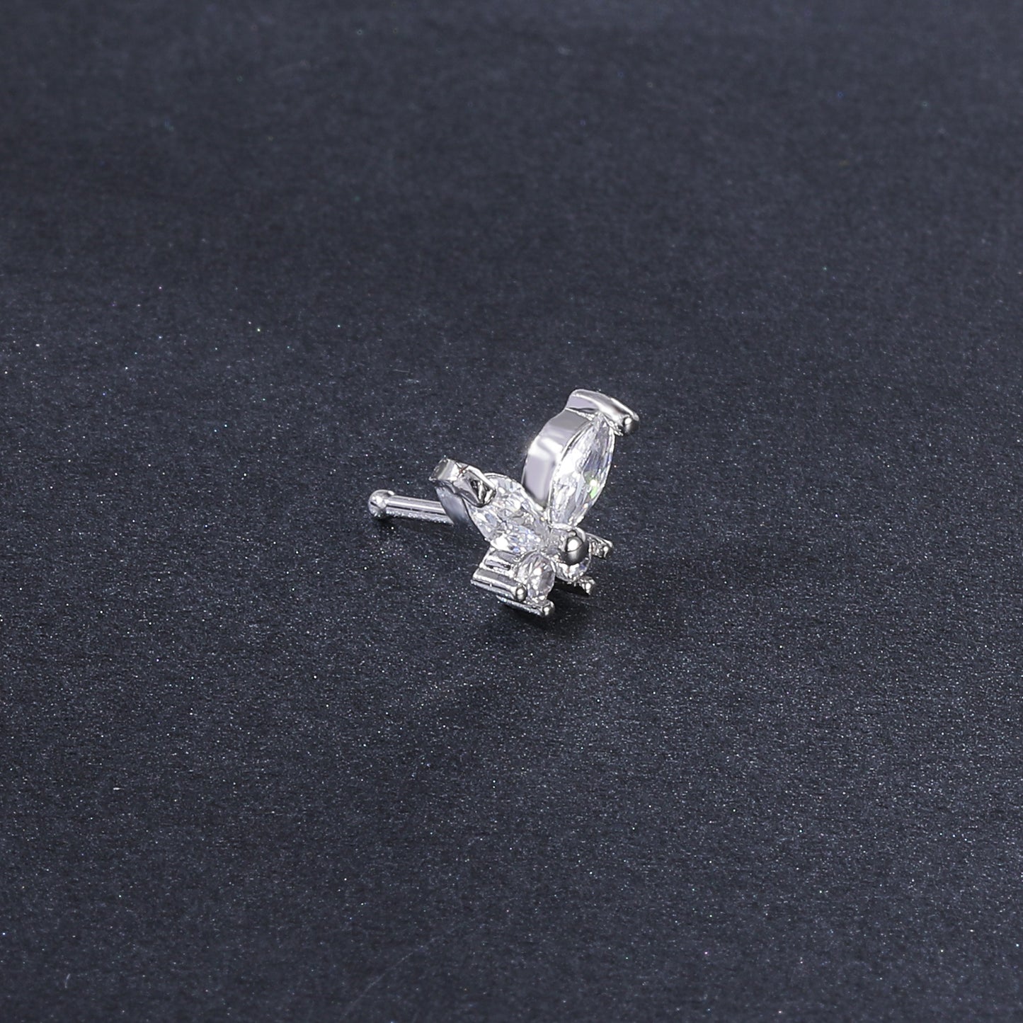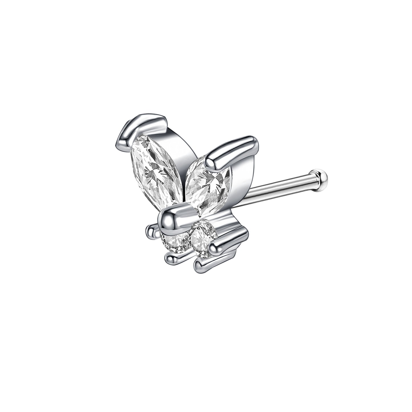 20g Butterfly Crystal Nose Rings Piercing Nose Bone L Shape Corkscrew Nose Studs