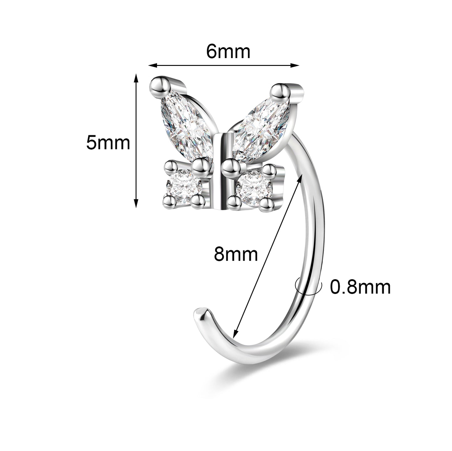 - Gauge: 20g (0.8mm) Bar Thickness, Inner Diameter: 8mm. Color: Silver. Top Design Size: 5mm*6mm.