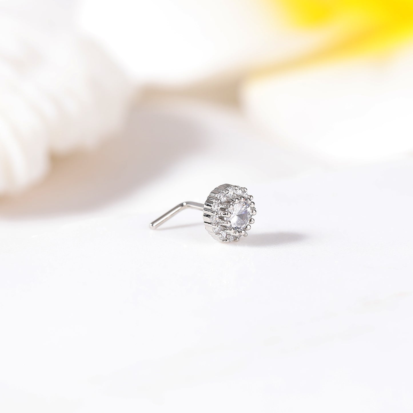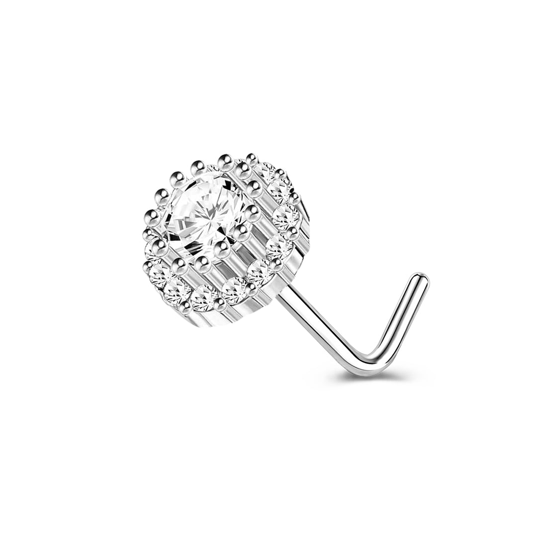 18G/20G Stainlesss Steel Nose Studs L Shape Nose Piercing White Zirconia Nostril Piercing