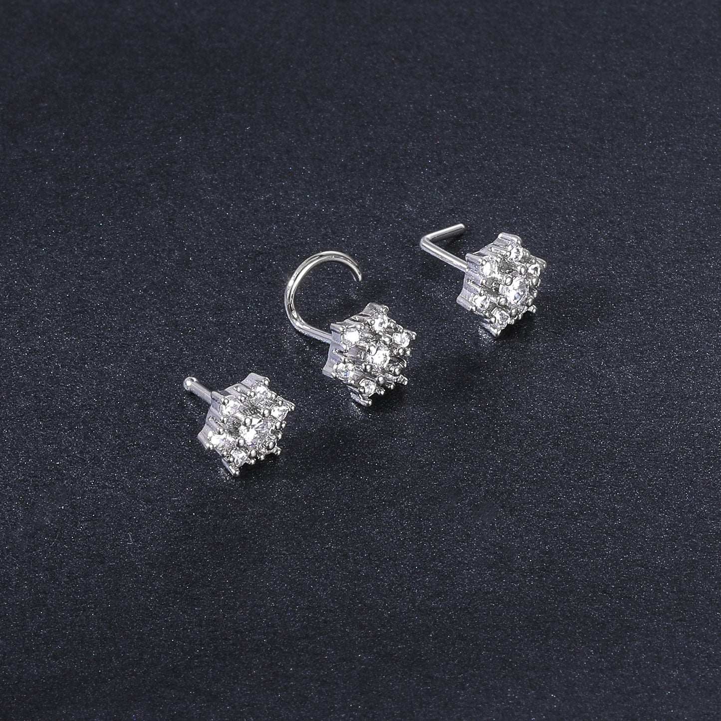 20g Crystal Flower Nose Rings Piercing Nose Bone L Shape Corkscrew Nose Studs