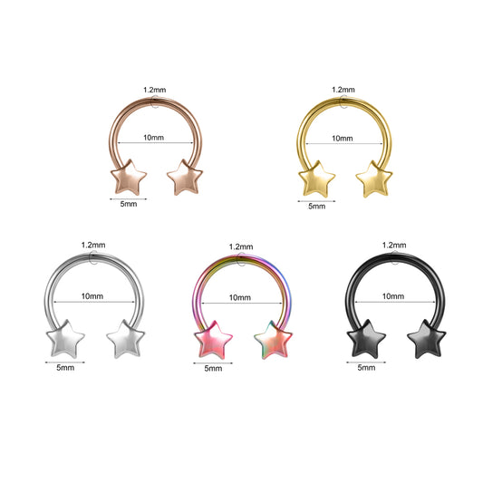 16G Horseshoe BCR Nose Rings Star Nose Septum Rings Stainless Steel Septum Piercing