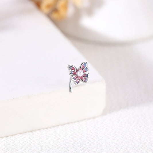 20G Butterfly Nose Studs Piercing L Shape Nose Rings Pearl Nostril Piercing