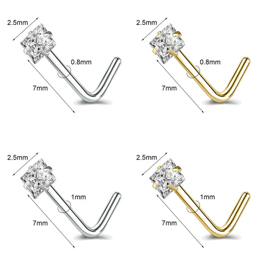 18G/20G Stainlesss Steel Nose Studs L Shape Nose Piercing White Zirconia Nostril Piercing