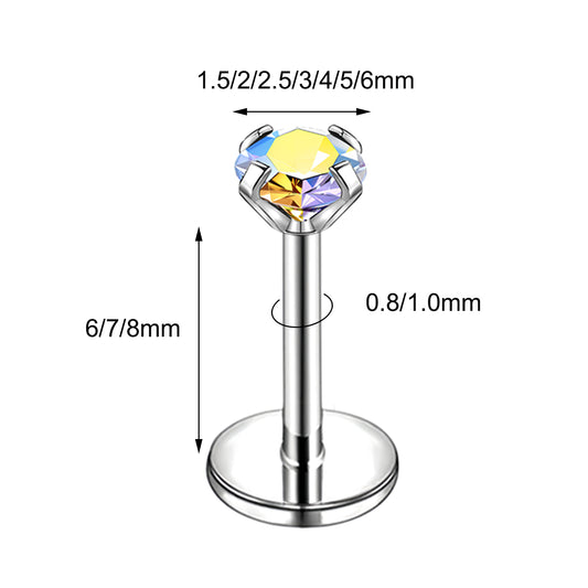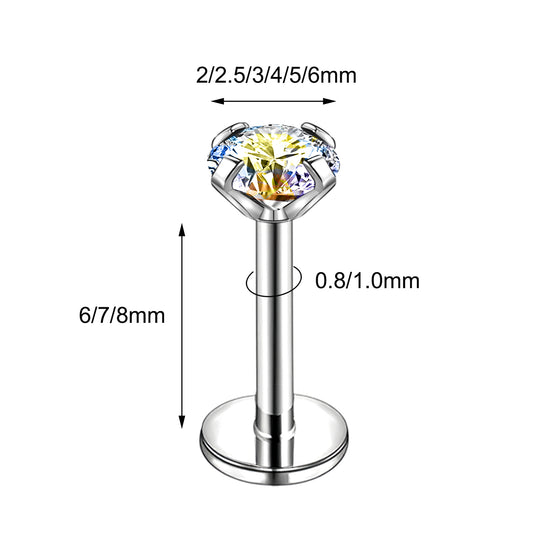 18g/20g Shiny Zircon Nose Stud Flat Back Nose Ring Internal Thread Nostril Piercing