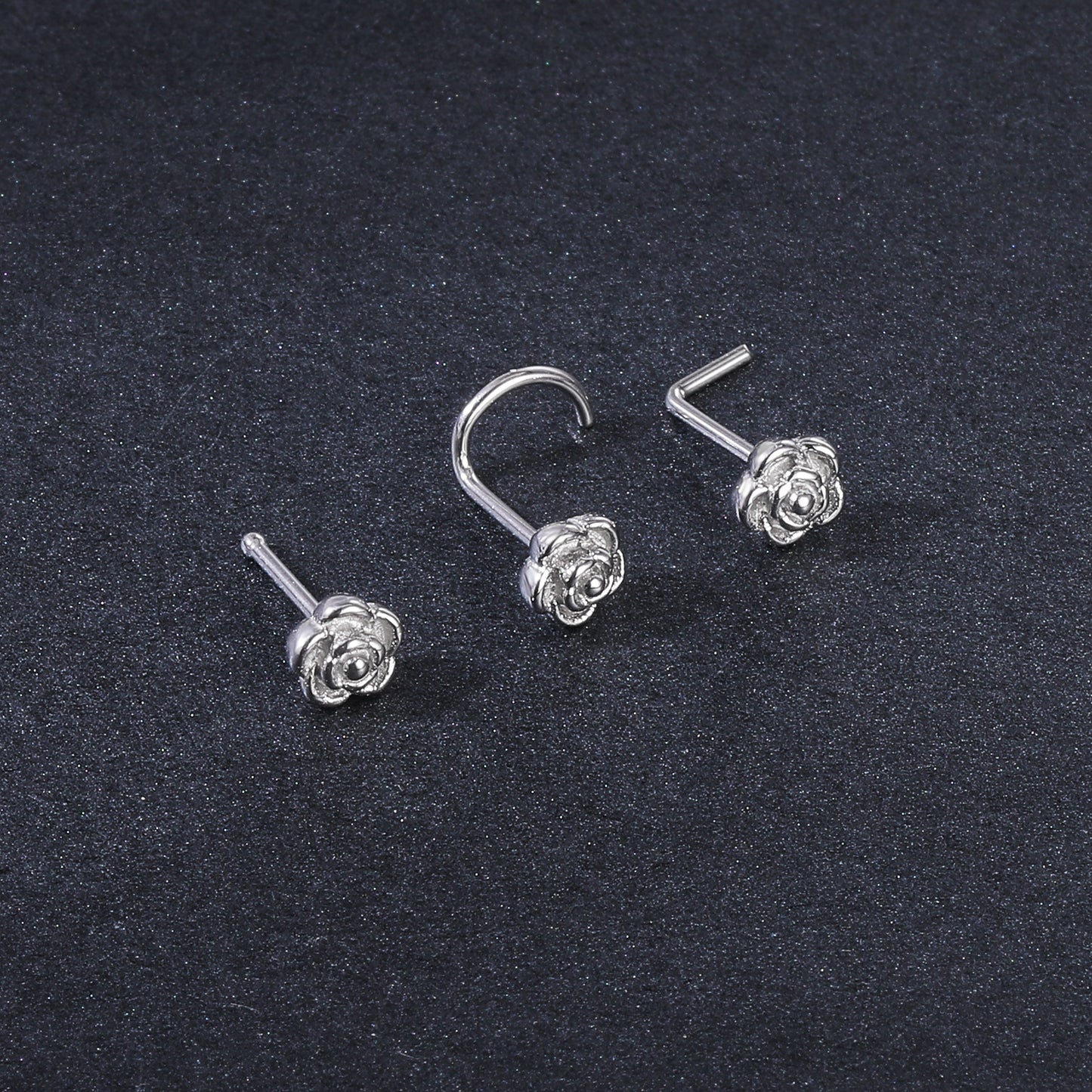 20g Flower Nose Rings Piercing Nose Bone L Shape Corkscrew Nose Studs