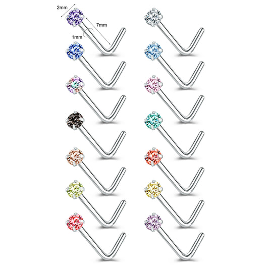 14Pcs/Set Cubic Zirconia Nose Stud Piercing L Shaped-Economic Set