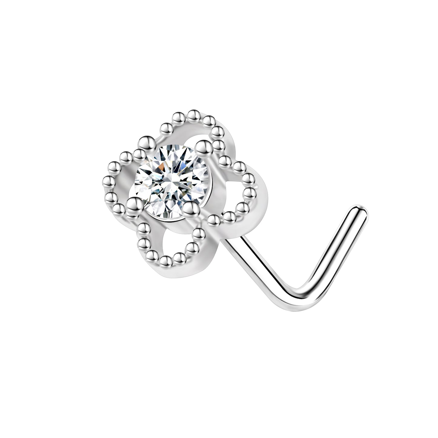 18G/20G Stainlesss Steel Nose Studs L Shape Nose Piercing White Zirconia Nostril Piercing