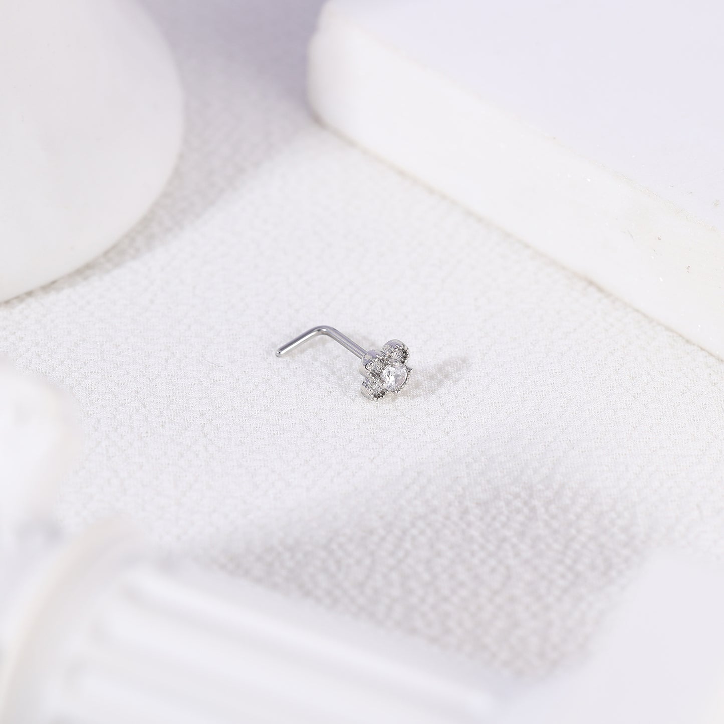 20G Flower Nose Studs Piercing L Shape Nose Rings Bling Zirconia Nostril Piercing