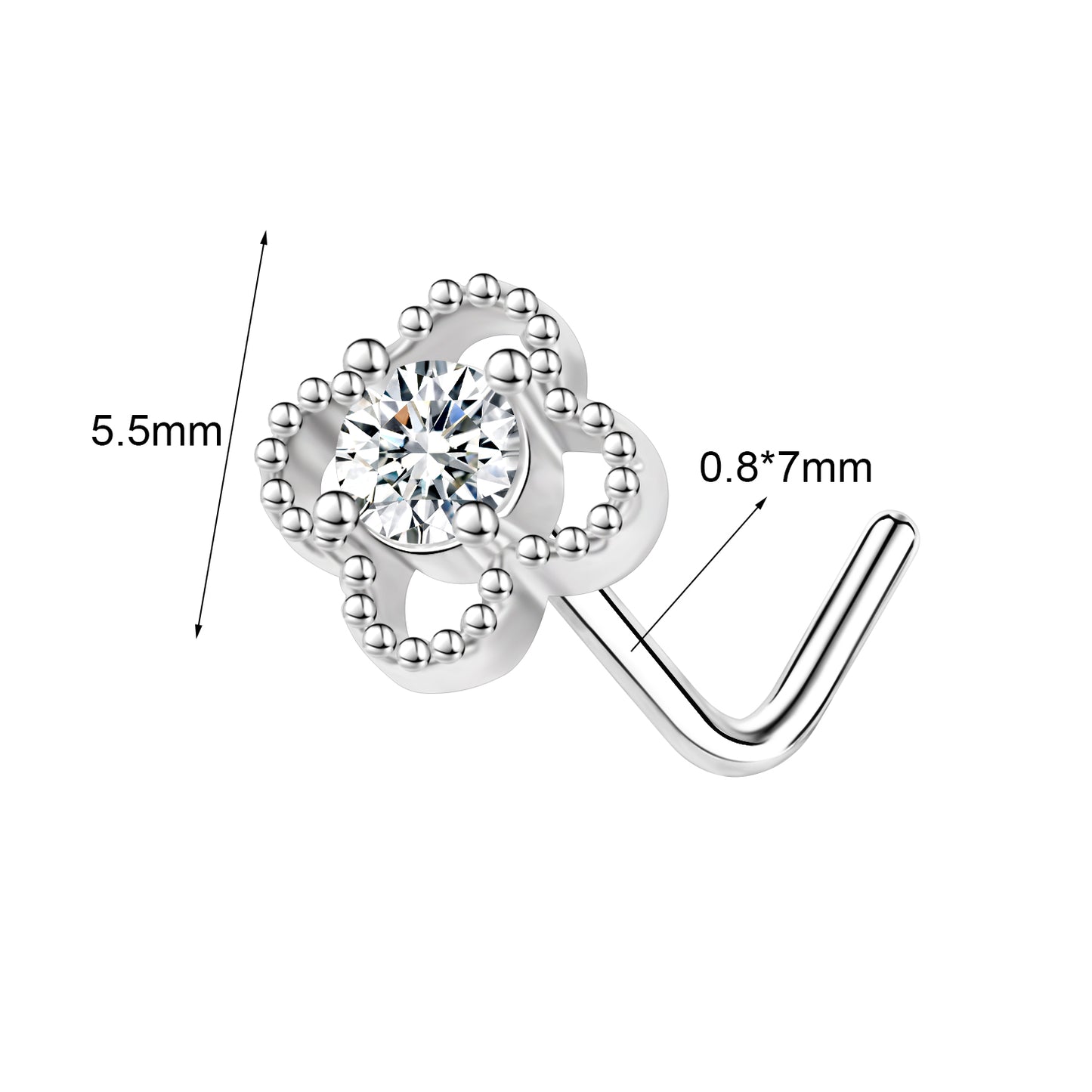 - Nose Stud Piercing Size: Gauge (Thickness): 20G (0.8mm), Pin Length: 7mm.