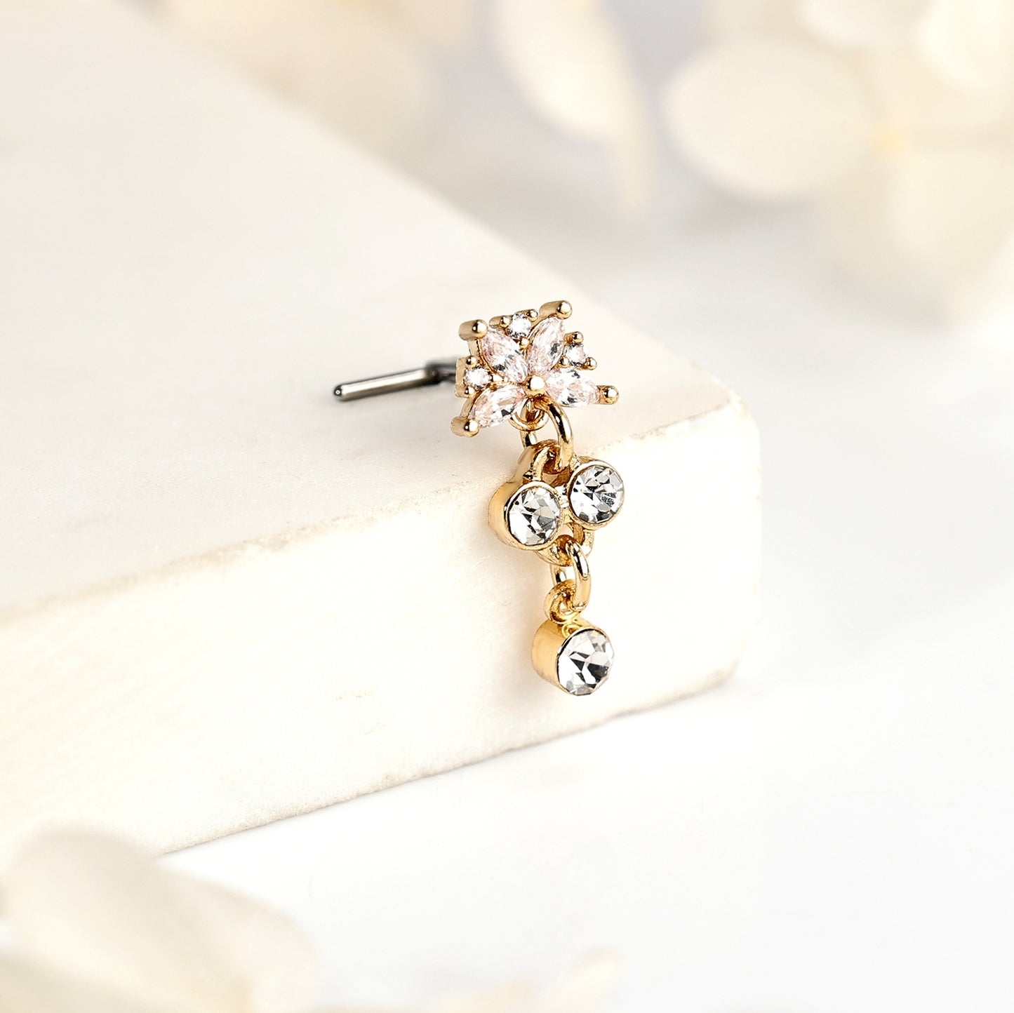 18g/20g Shiny Zircon Nose Stud Flat Back Nose Ring Internal Thread Nostril Piercing