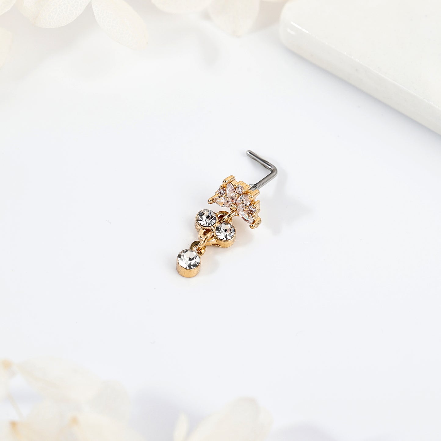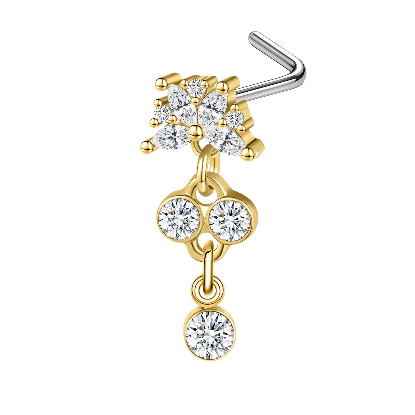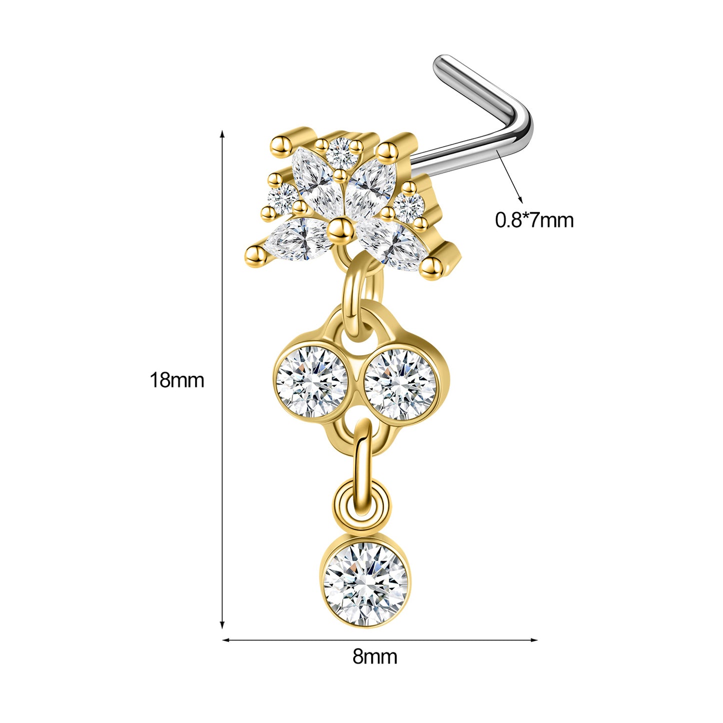 20G Gold Nose Studs Piercing L Shape Nose Rings Cubic Zirocn Nostril Piercing