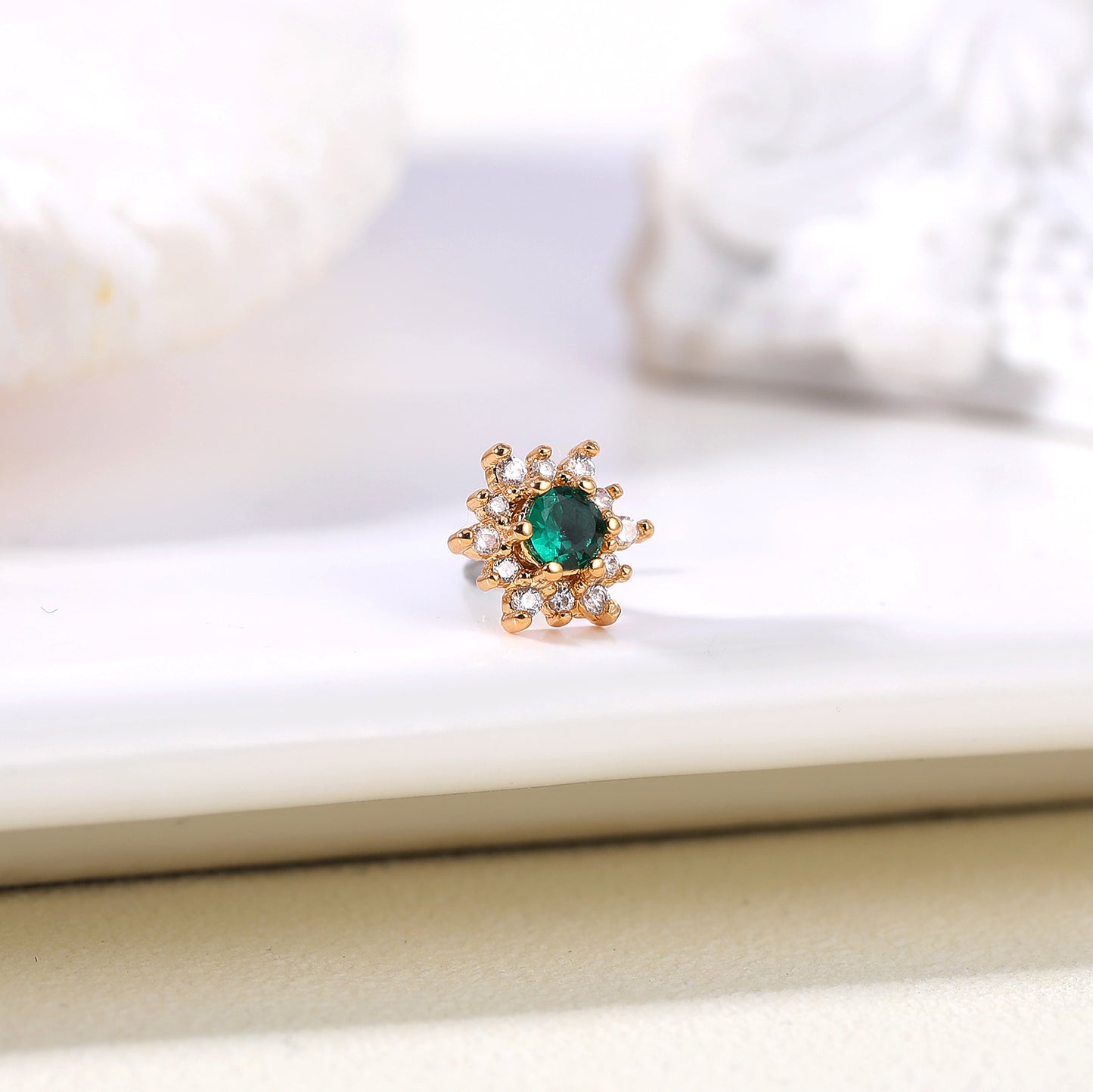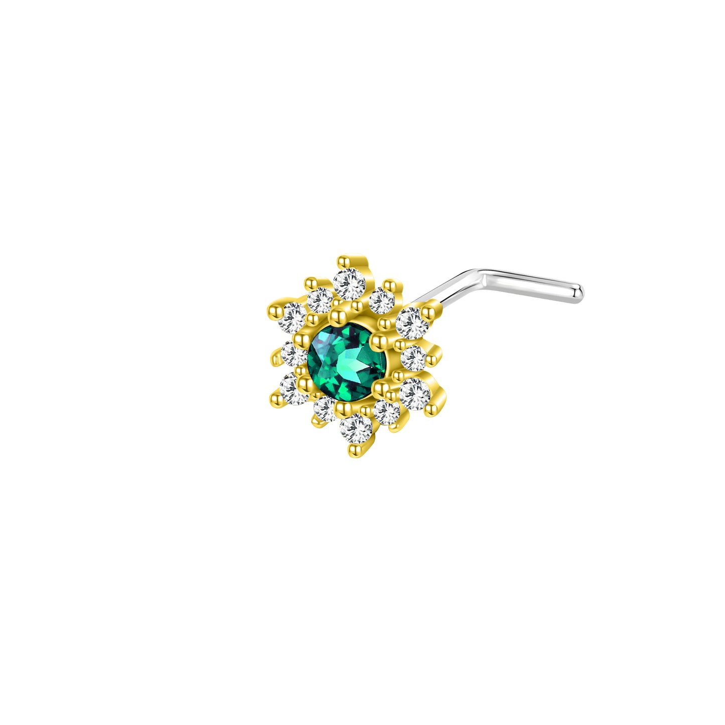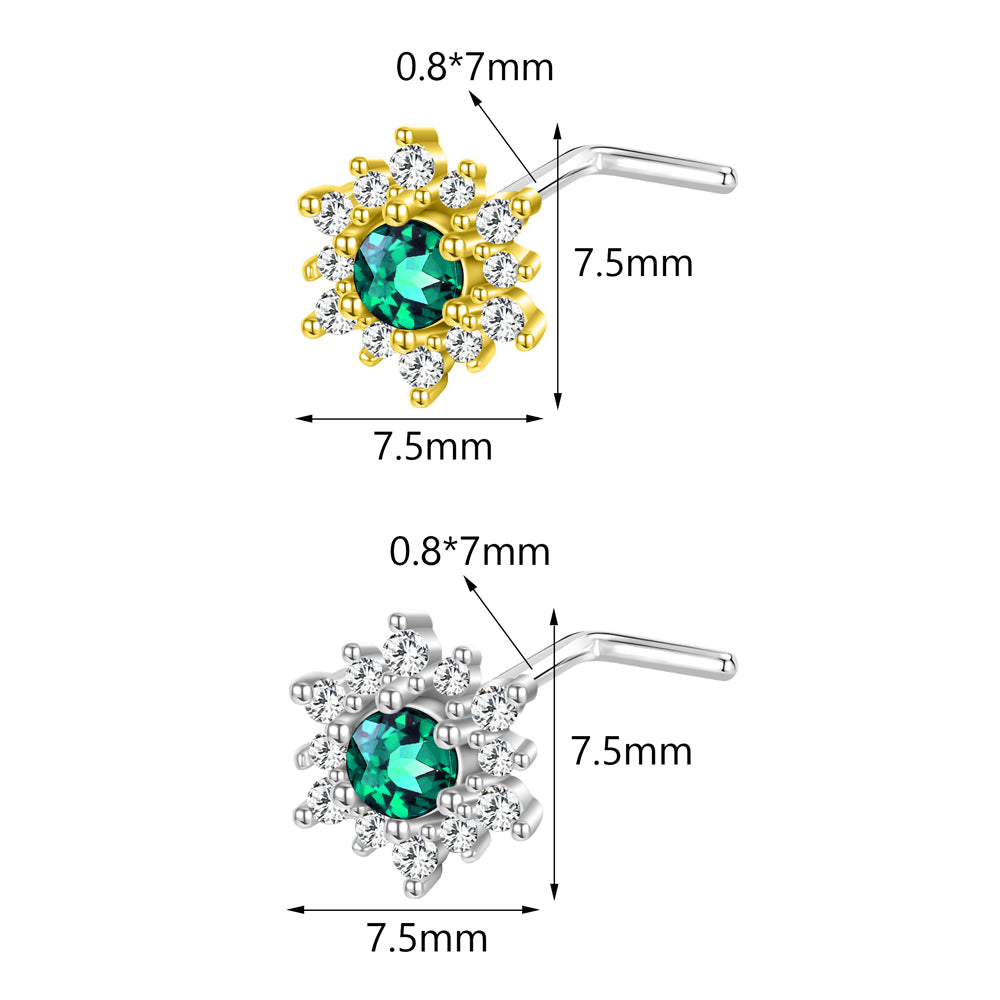 20G Green Zircon Nose Studs Piercing L Shape Nose Rings Gold Silver Plated Nostril Piercing