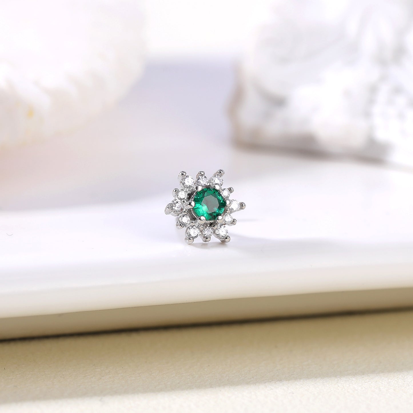 18g/20g Shiny Zircon Nose Stud Flat Back Nose Ring Internal Thread Nostril Piercing