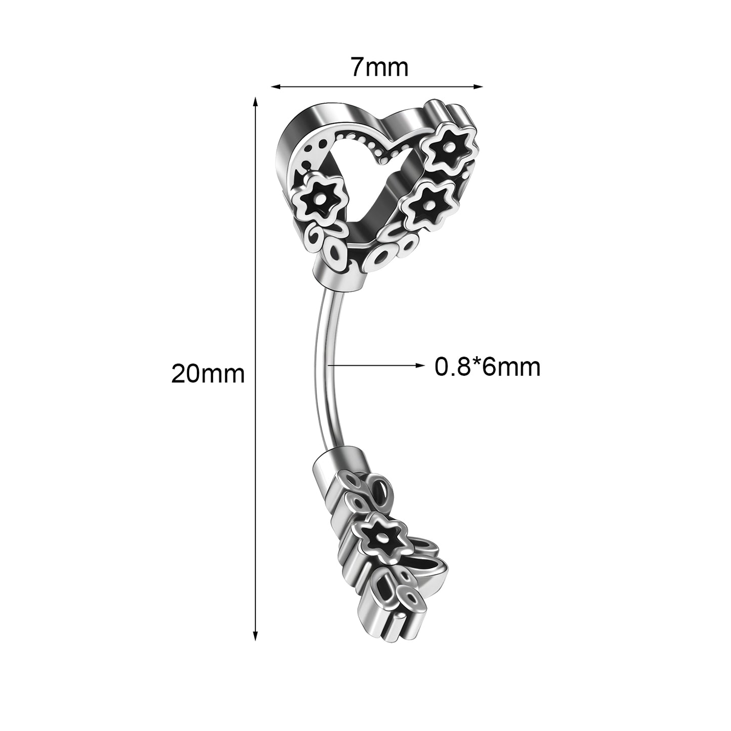- Eyebrow Piercing Bar thickness: 20G (0.8mm), Bar length: 6mm.