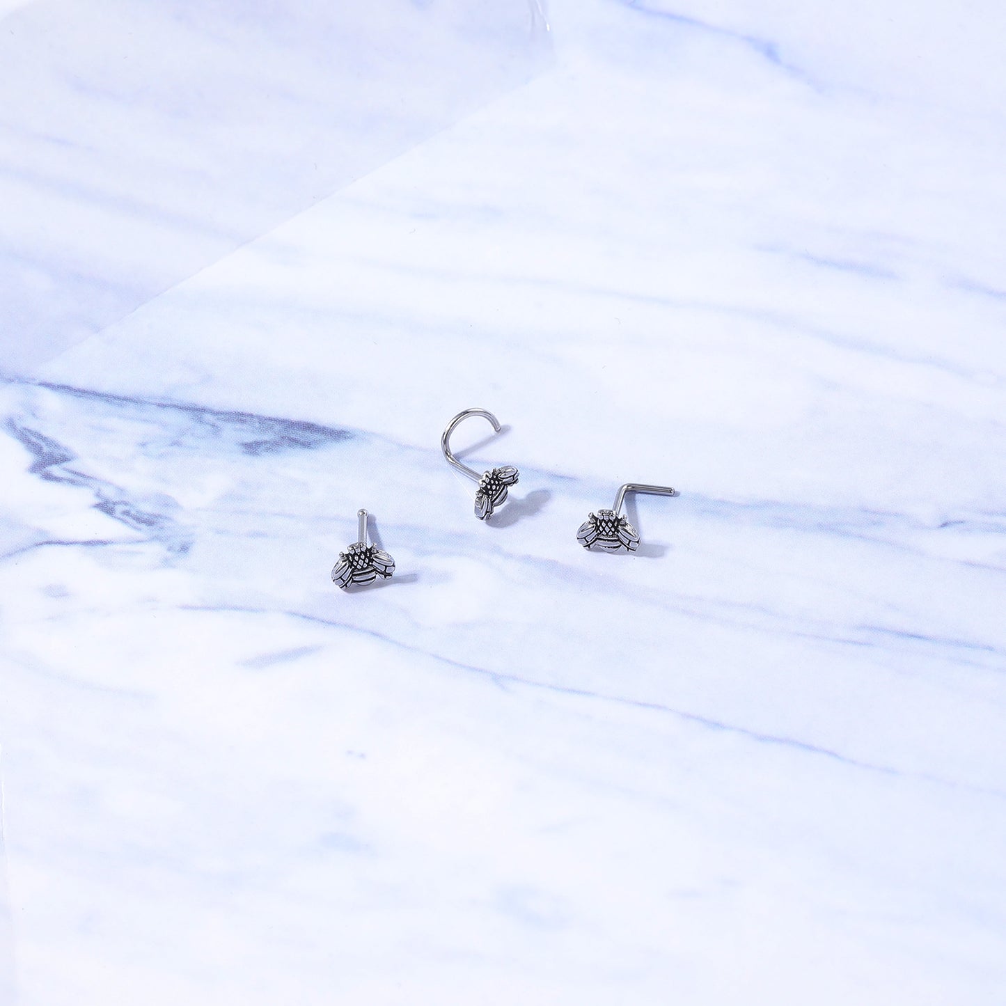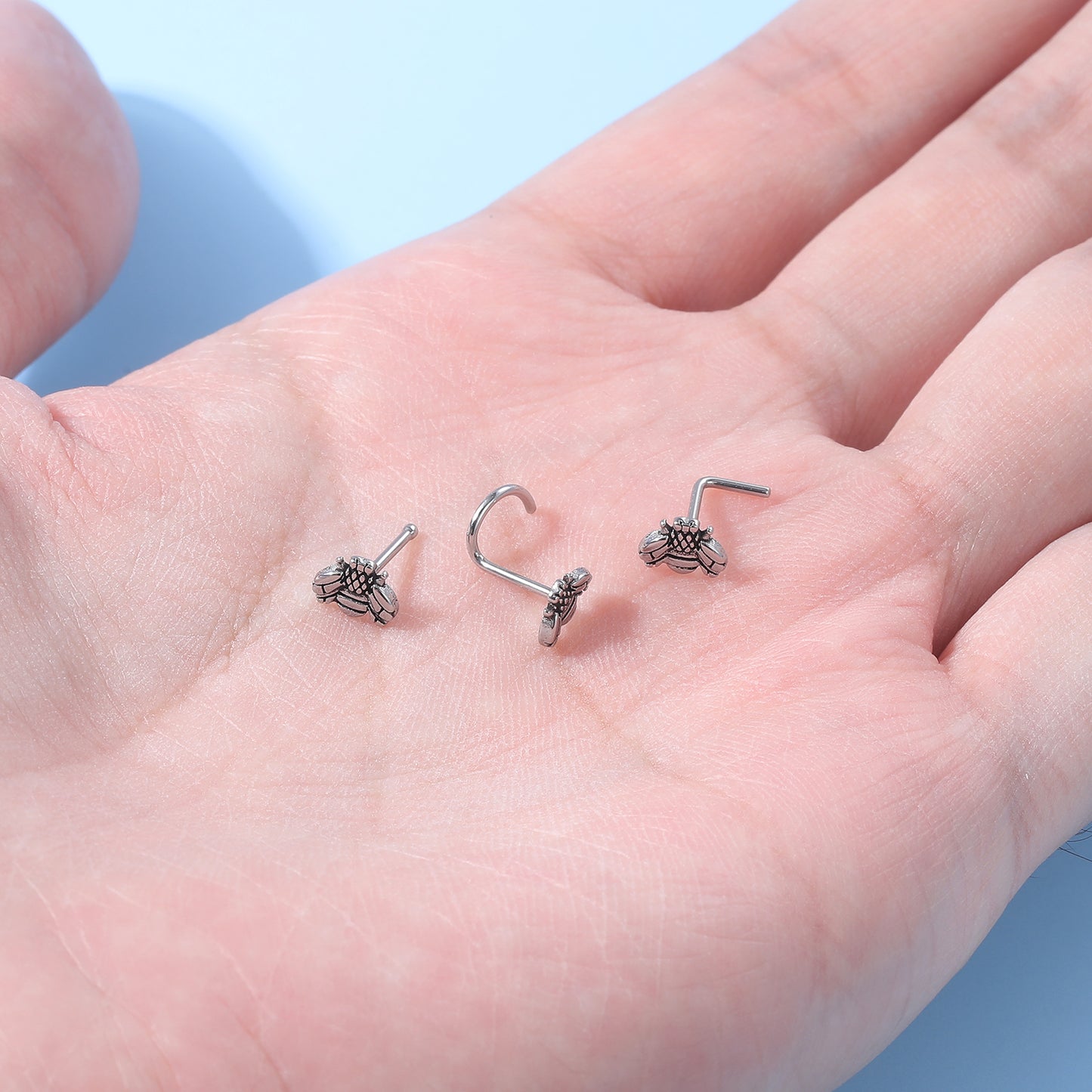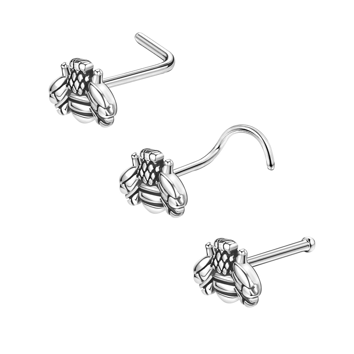 20G Little Bee Nose Studs Piercing Nose Bone Shape L Shape Crokscrew Nose Rings Stainless Steel Nostril Piercing