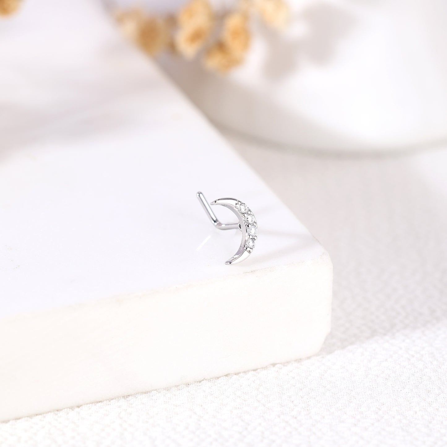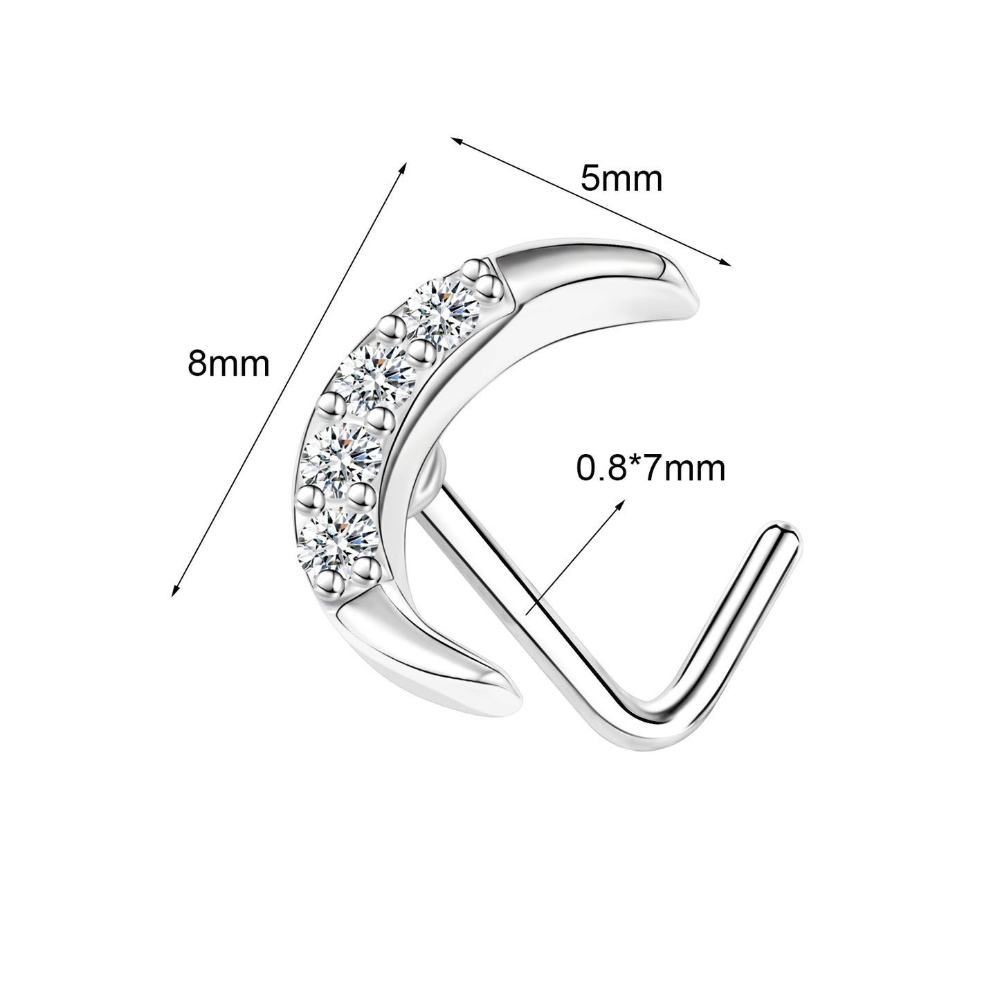 20G Moon Nose Studs Piercing L Shape Nose Rings Bling Zirconia Nostril Piercing