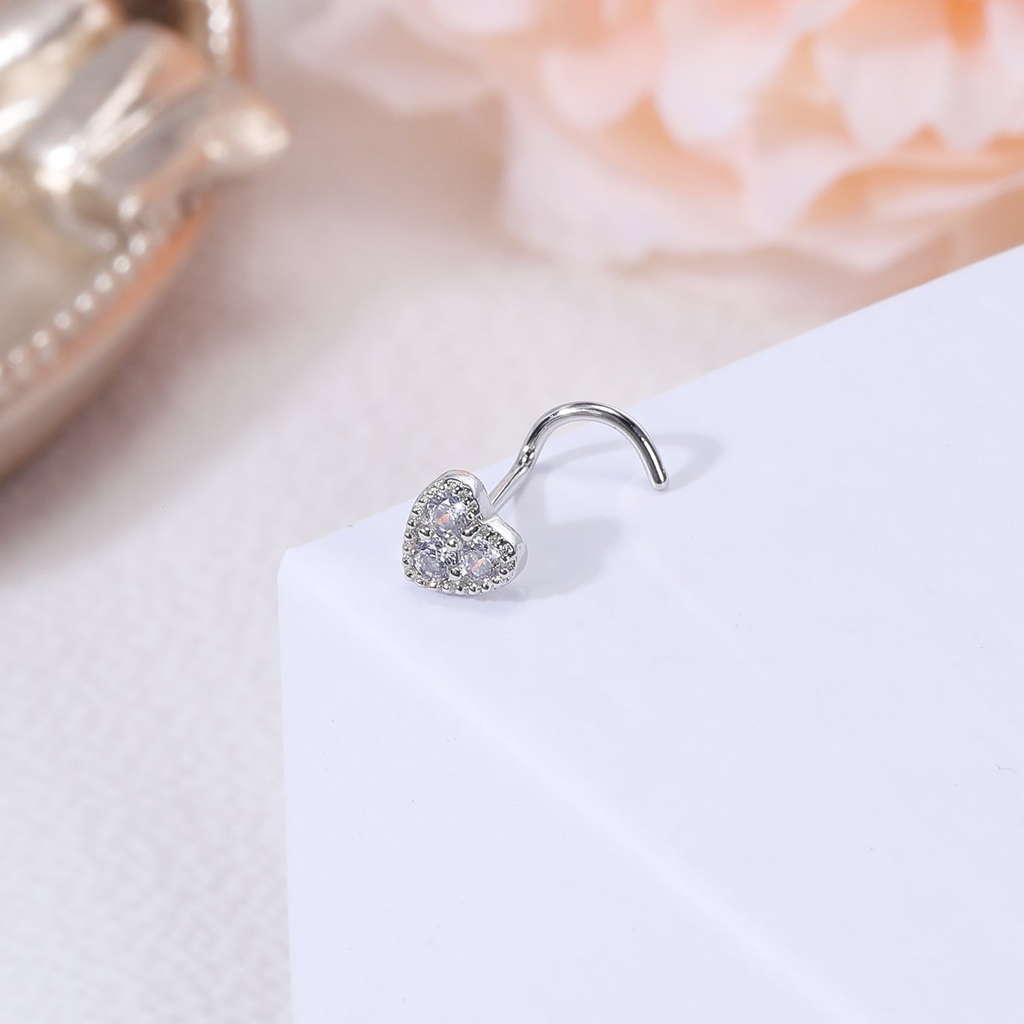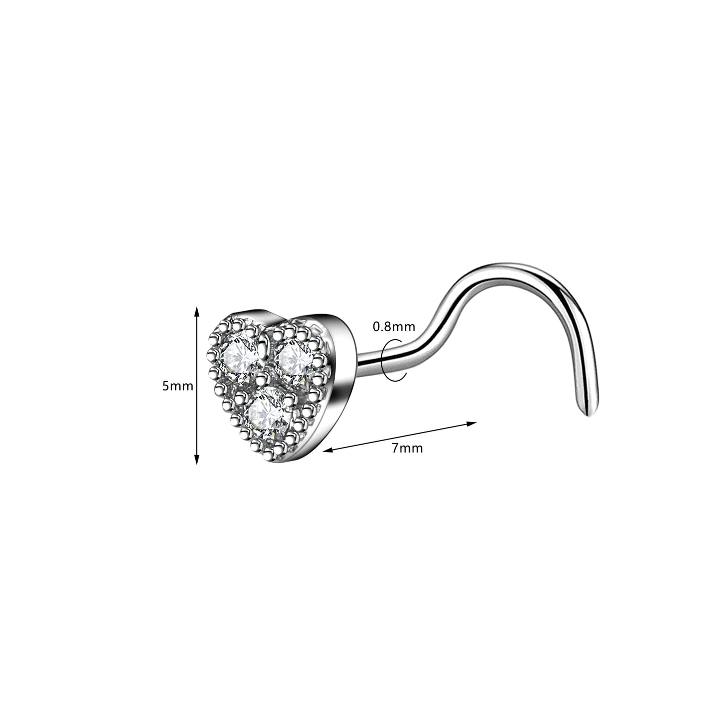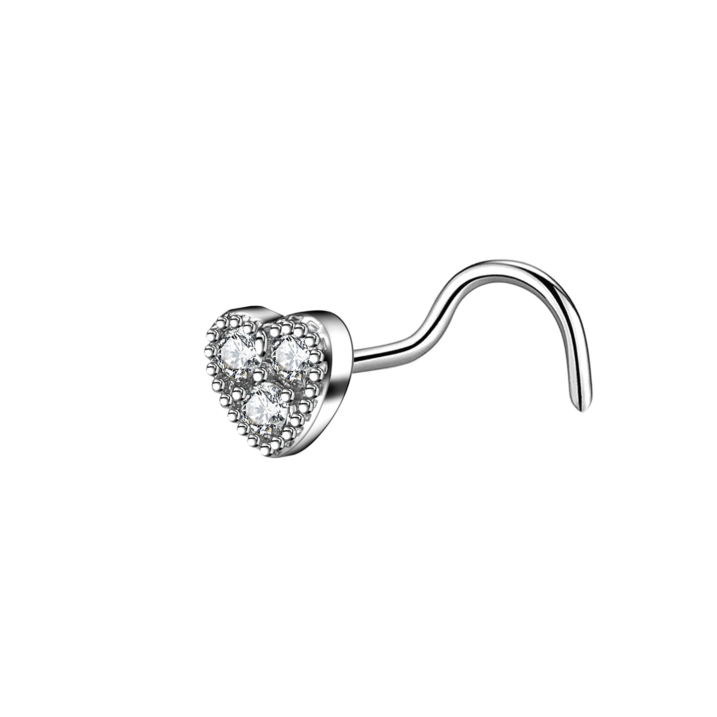 20G Heart White Crystal Nose Studs Piercing Crokscrew Nose Rings Stainless Steel Nostril Piercing