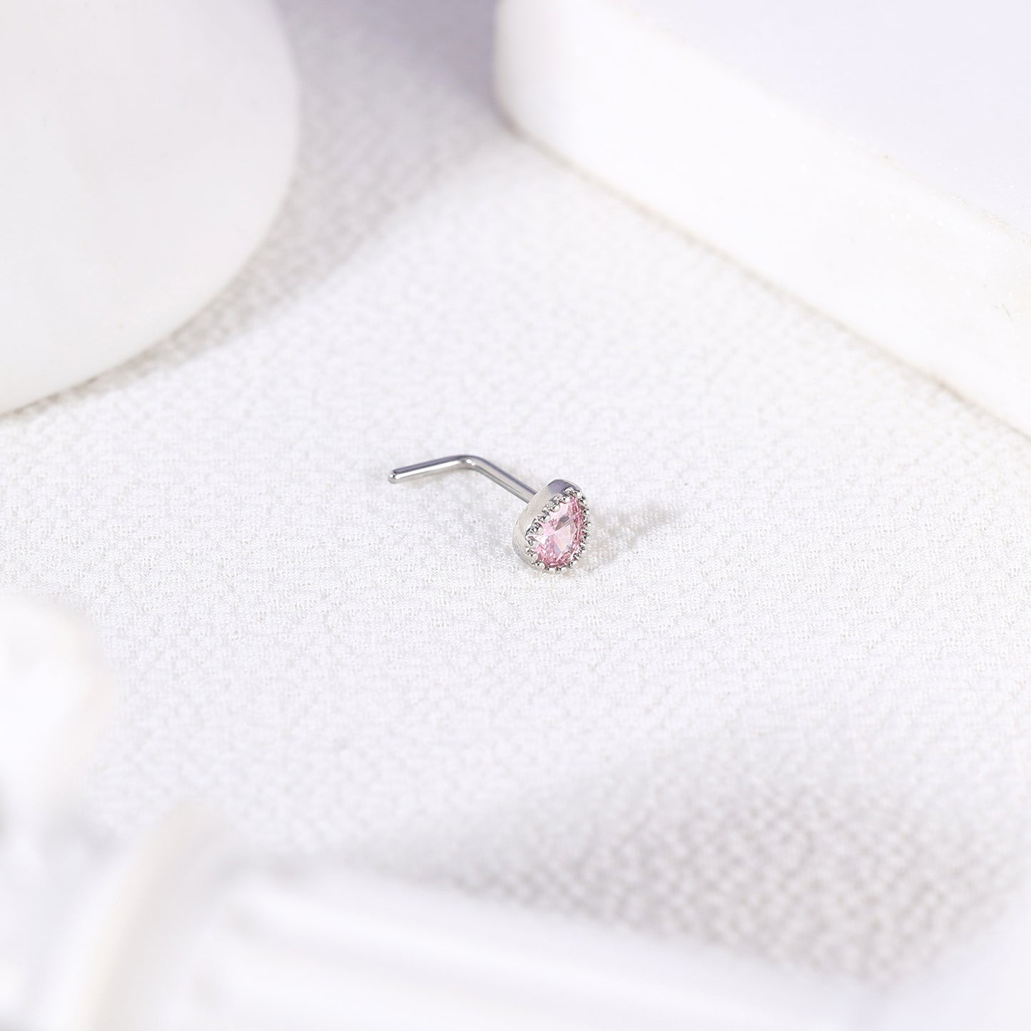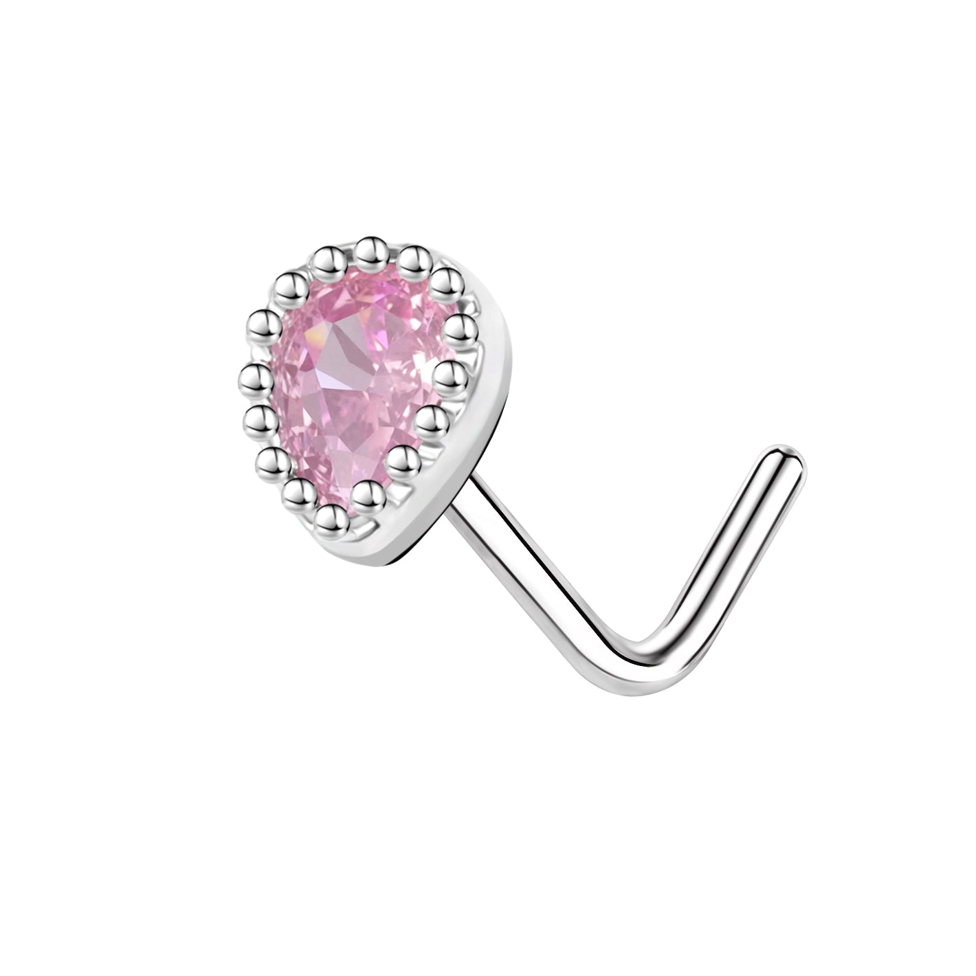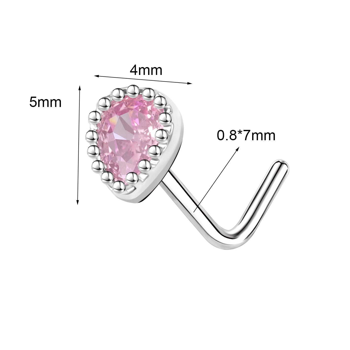20G Nose Studs Piercing L Shape Nose Rings Pink Zirconia Nostril Piercing