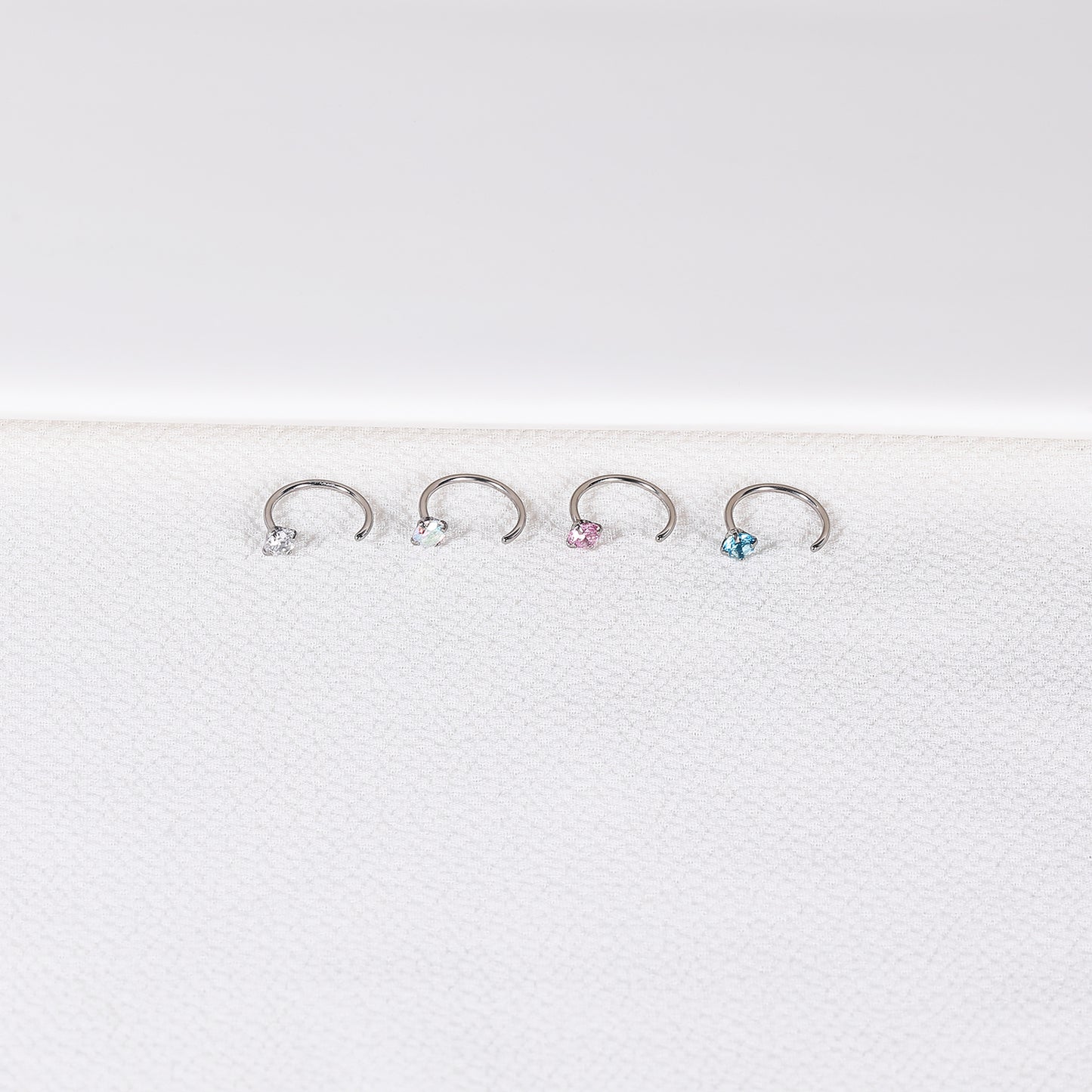 18g/20g Bling Zircon Nose Stud Push-in Nose Ring Threadless Nostril Piercing