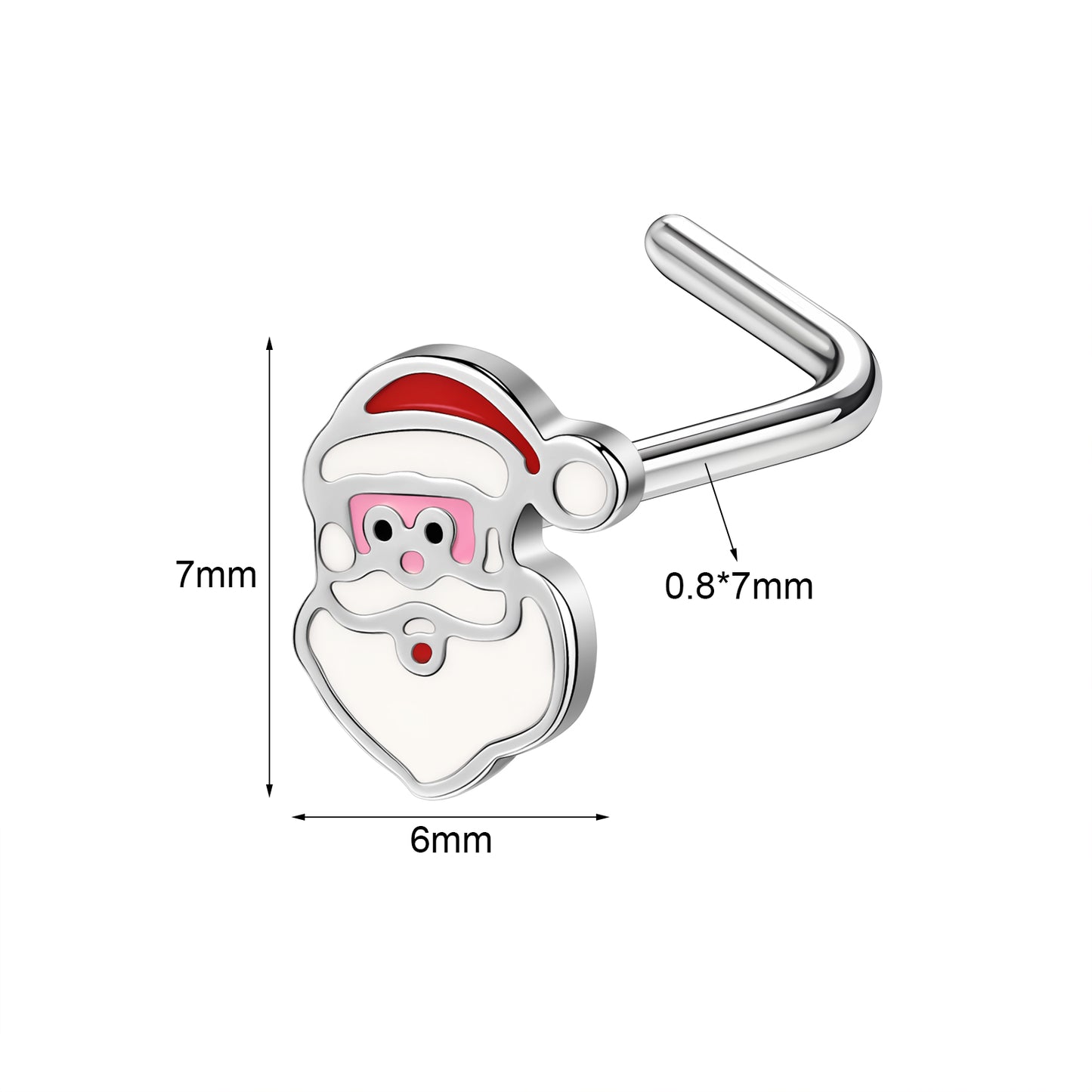 20g Santa Claus Nose Rings Studs L-shaped Christmas Stainless Steel Nose Stud Piercing