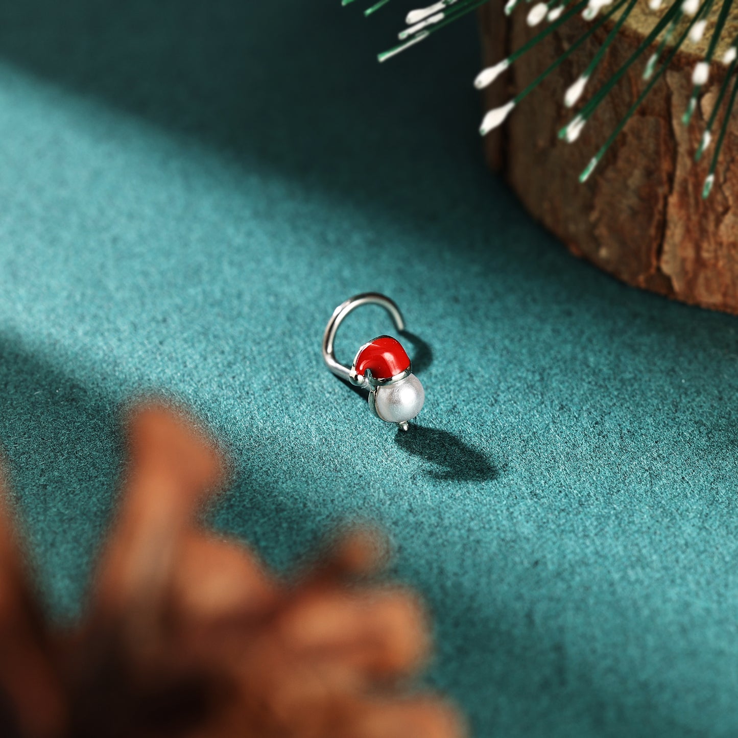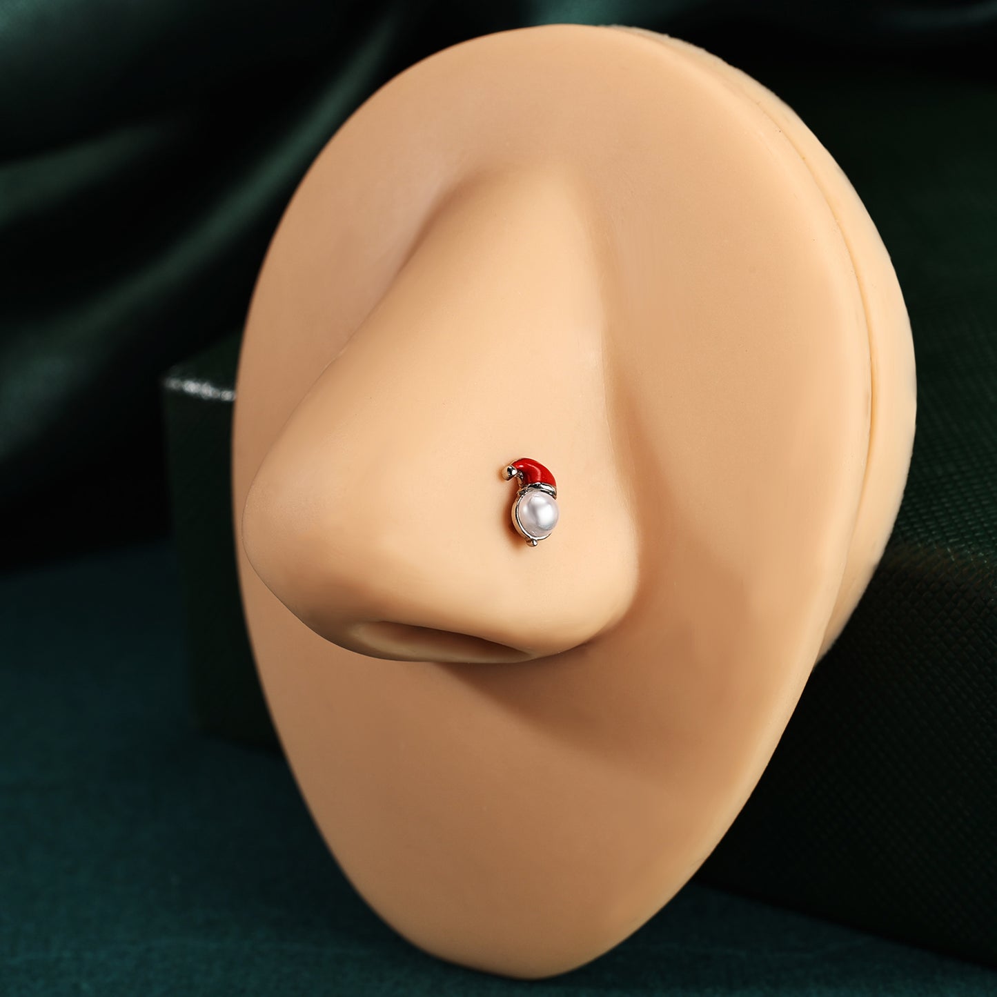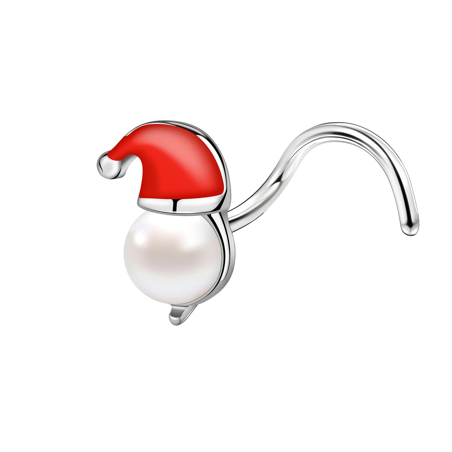 20g Santa Hat Corkscrew Nose Rings Studs Christmas Stainless Steel Nose Stud Piercing