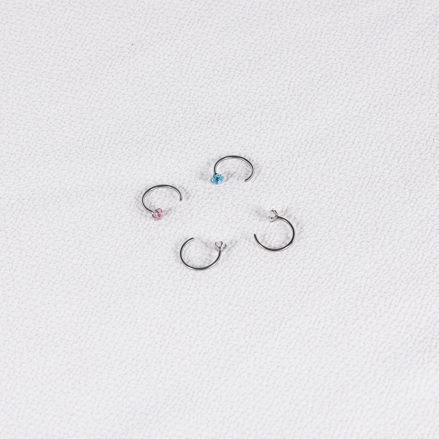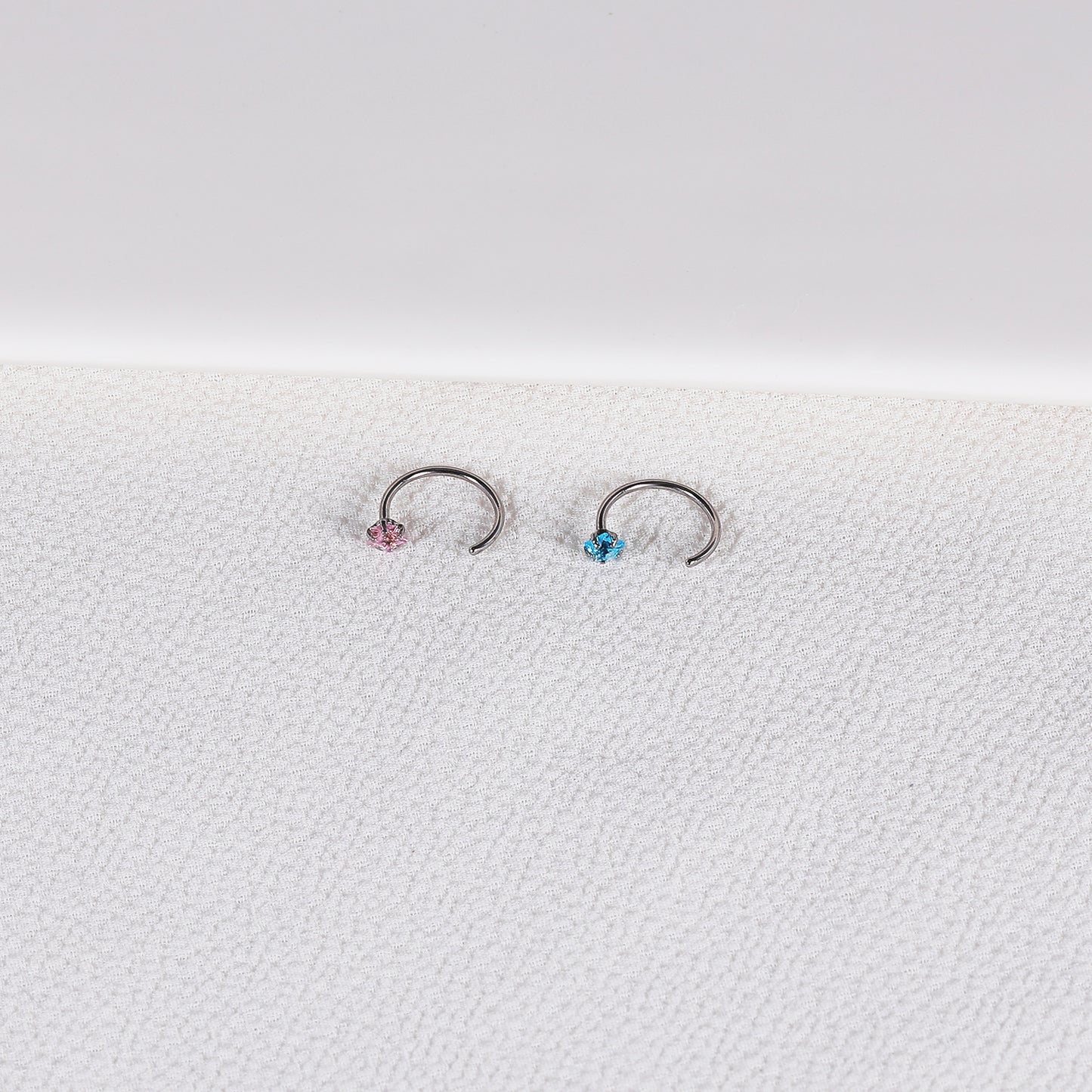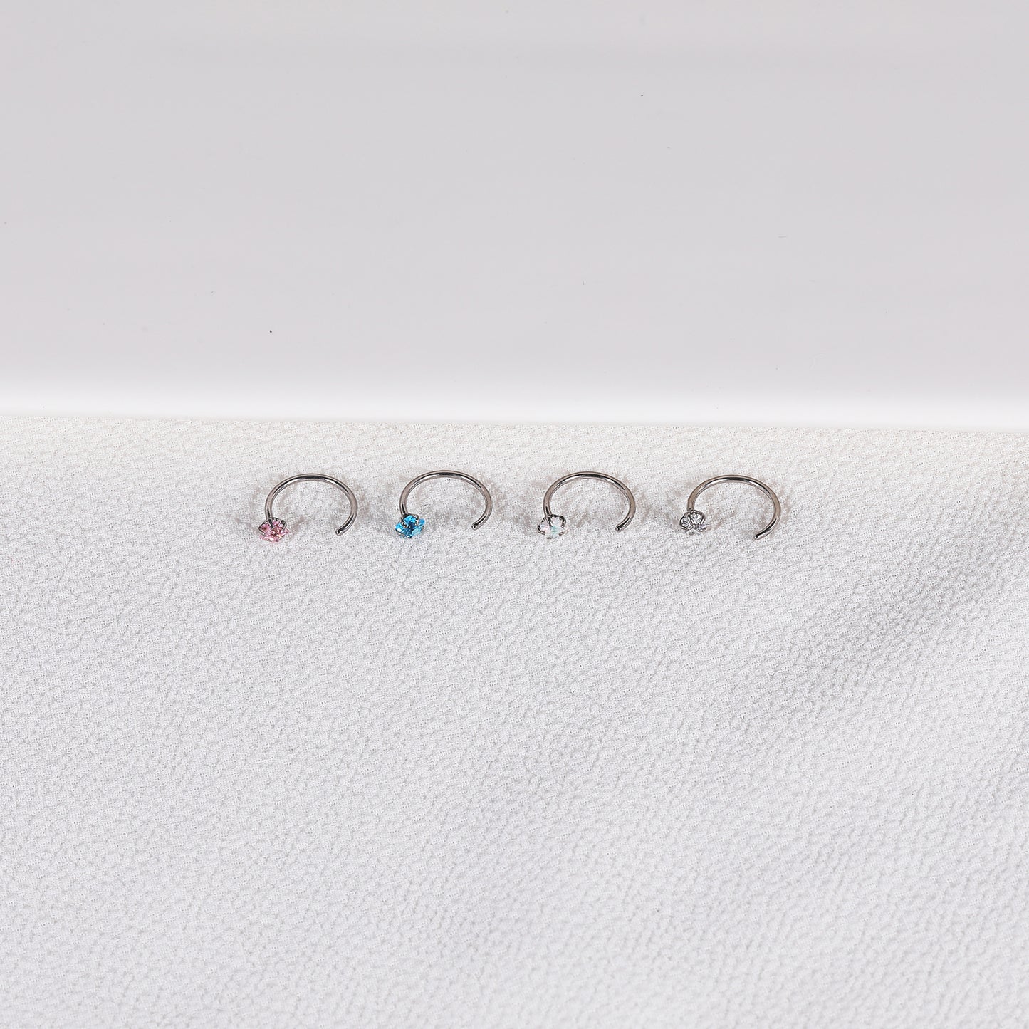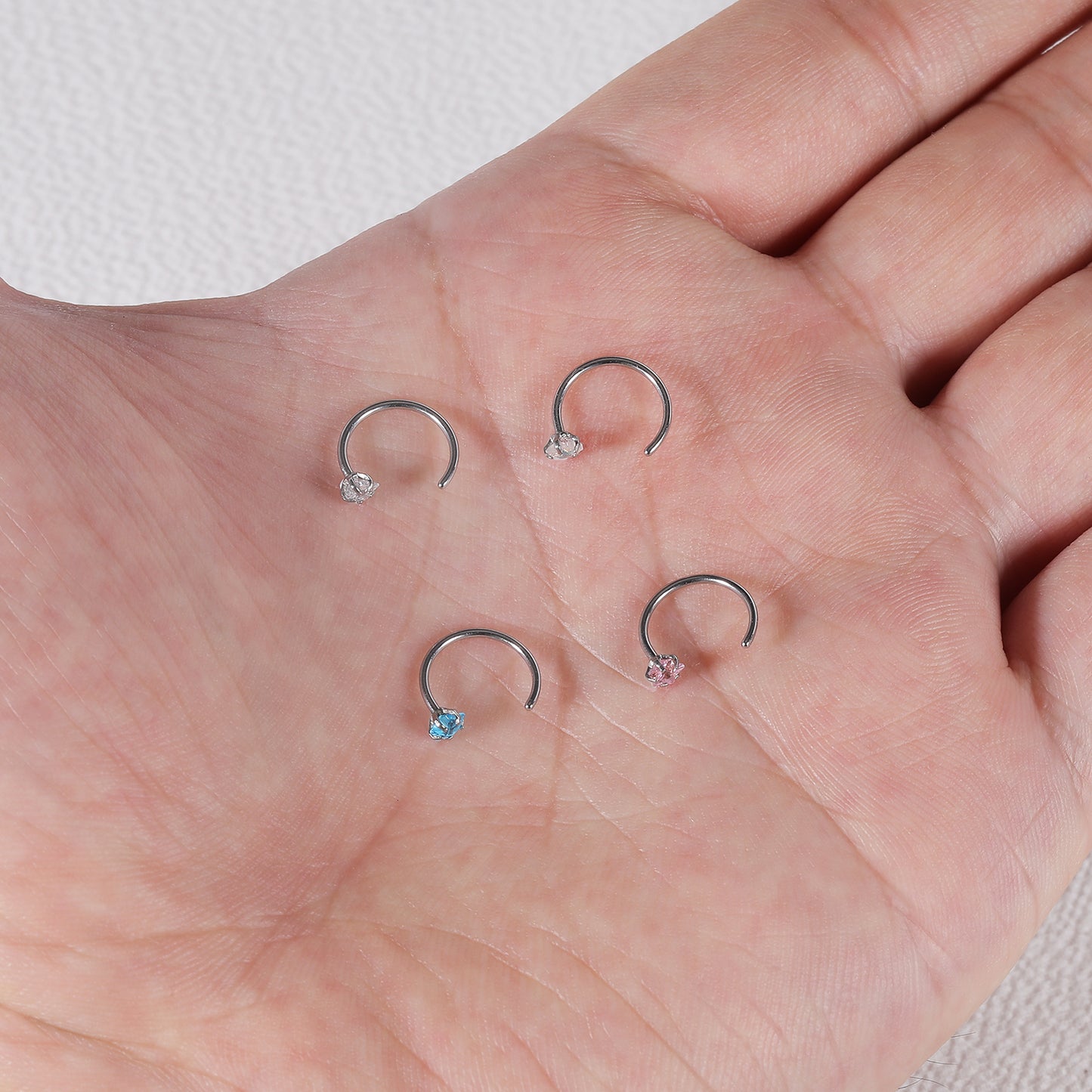 18g/20g Shiny Zircon Nose Stud Flat Back Nose Ring Internal Thread Nostril Piercing